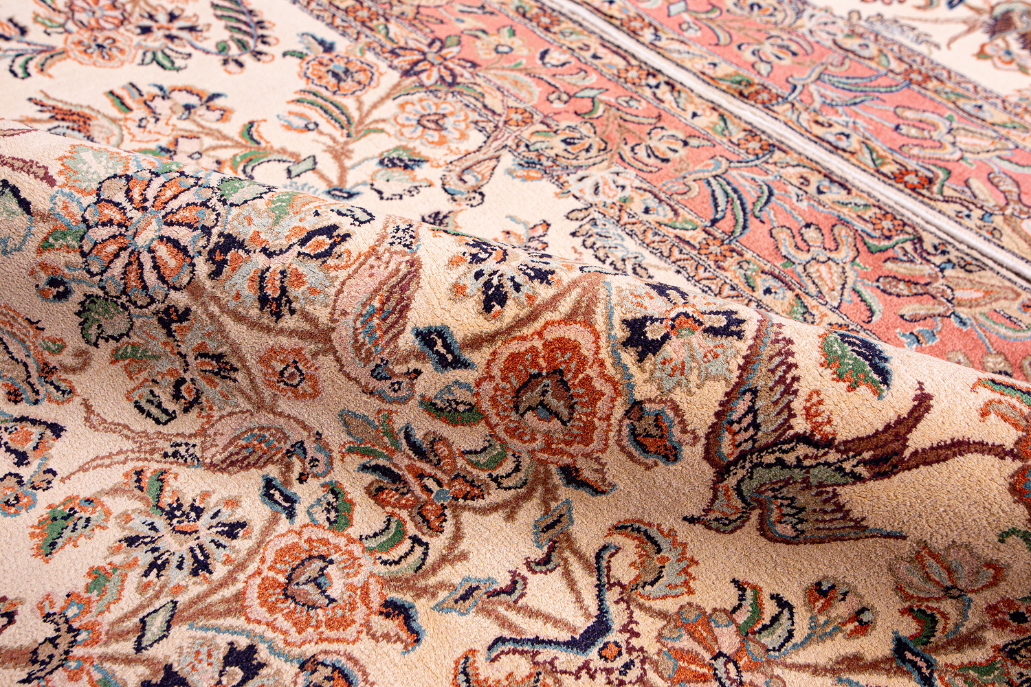Ковры из коллекции Кашмир ткутся по традиционной технологии из нежнейшего кашмирского шелка. Лучшие произведения индийских мастеров отличает высокая узелковая плотность, прочность и яркость цветов.
