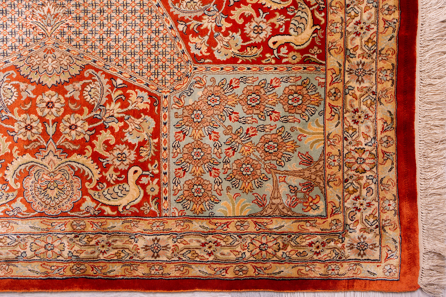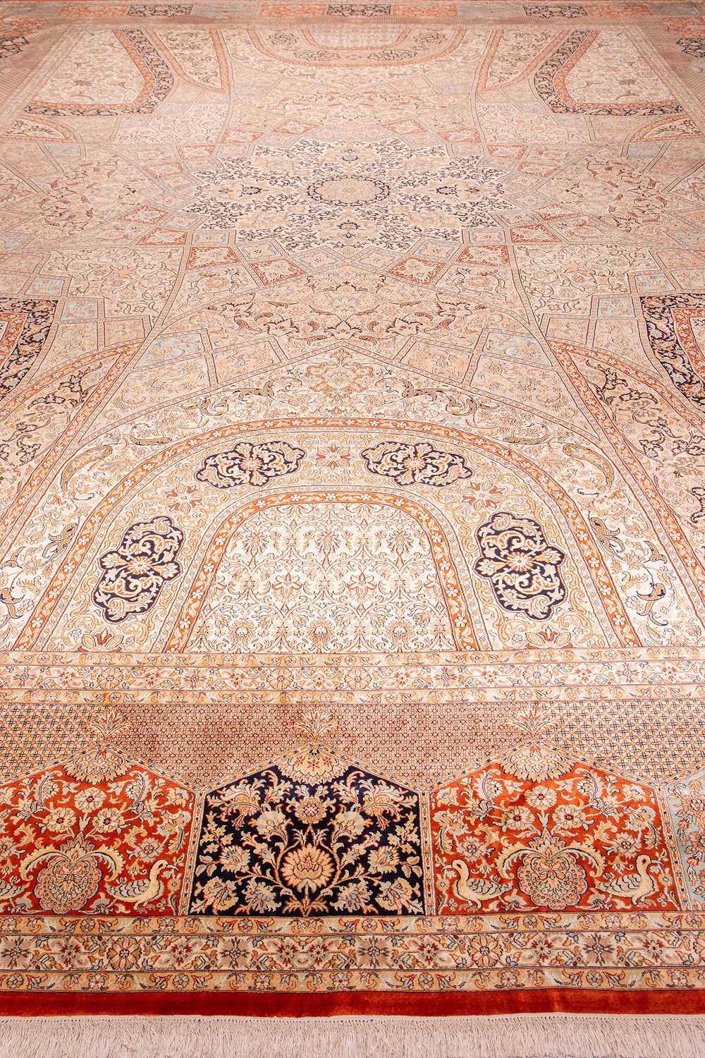 Ковры из коллекции Кашмир ткутся по традиционной технологии из нежнейшего кашмирского шелка. Лучшие произведения индийских мастеров отличает высокая узелковая плотность, прочность и яркость цветов.