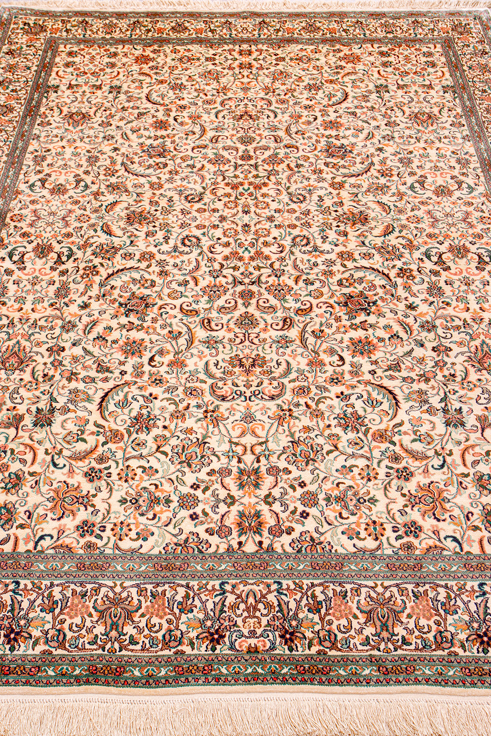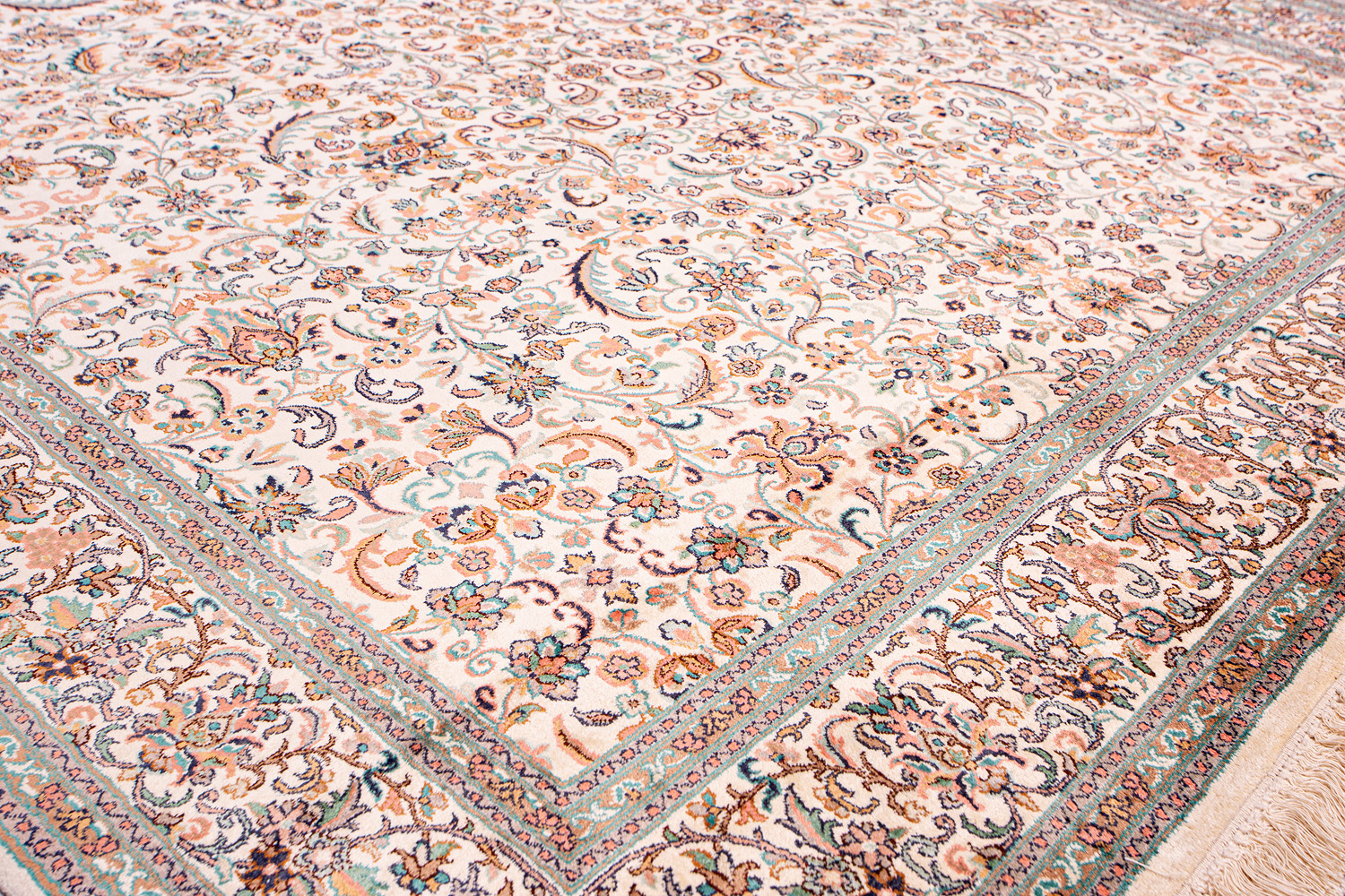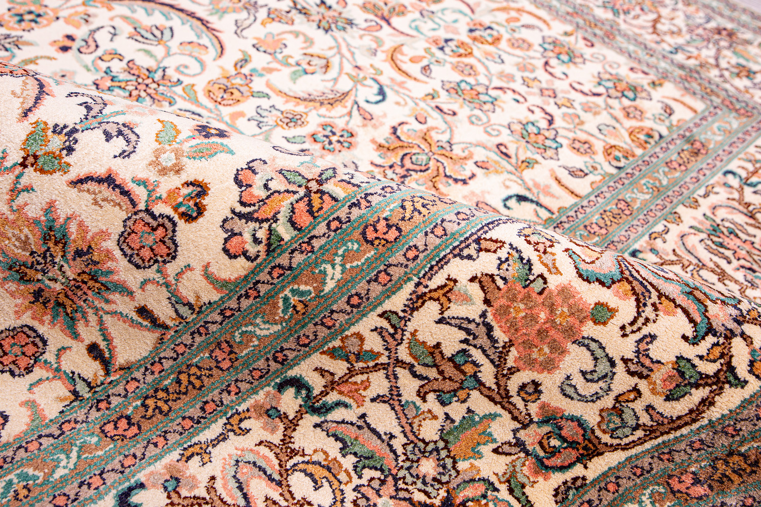 Ковры из коллекции Кашмир ткутся по традиционной технологии из нежнейшего кашмирского шелка. Лучшие произведения индийских мастеров отличает высокая узелковая плотность, прочность и яркость цветов.