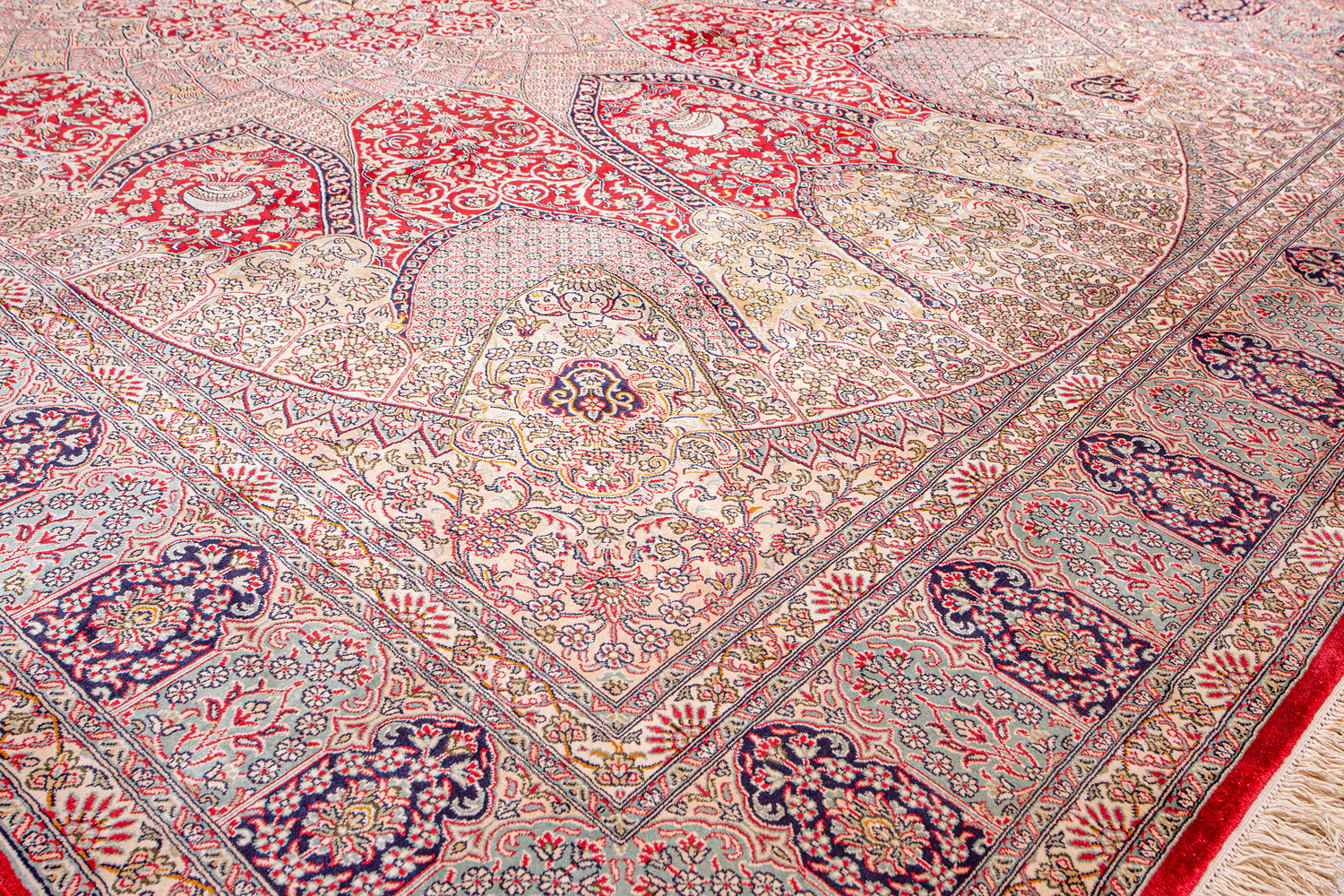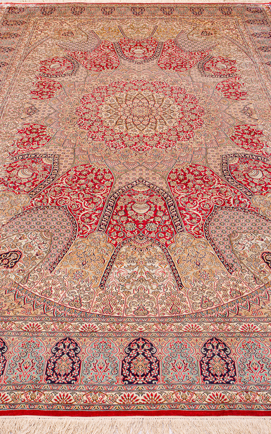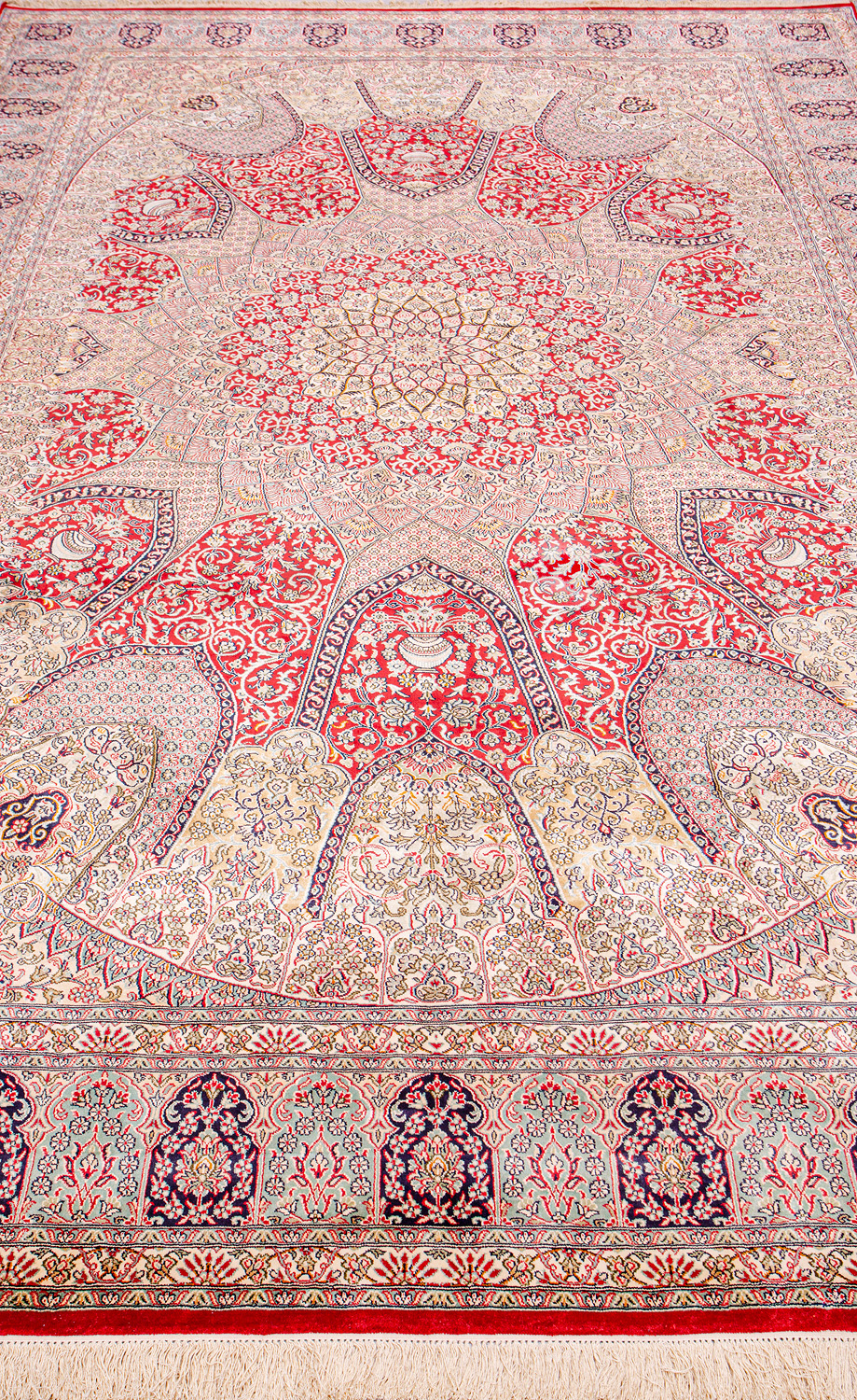 Ковры из коллекции Кашмир ткутся по традиционной технологии из нежнейшего кашмирского шелка. Лучшие произведения индийских мастеров отличает высокая узелковая плотность, прочность и яркость цветов.