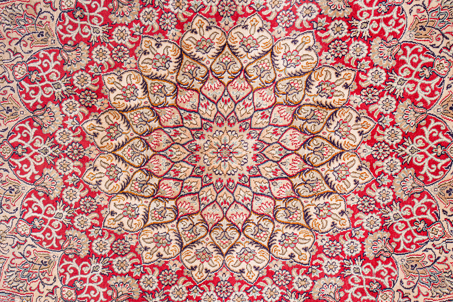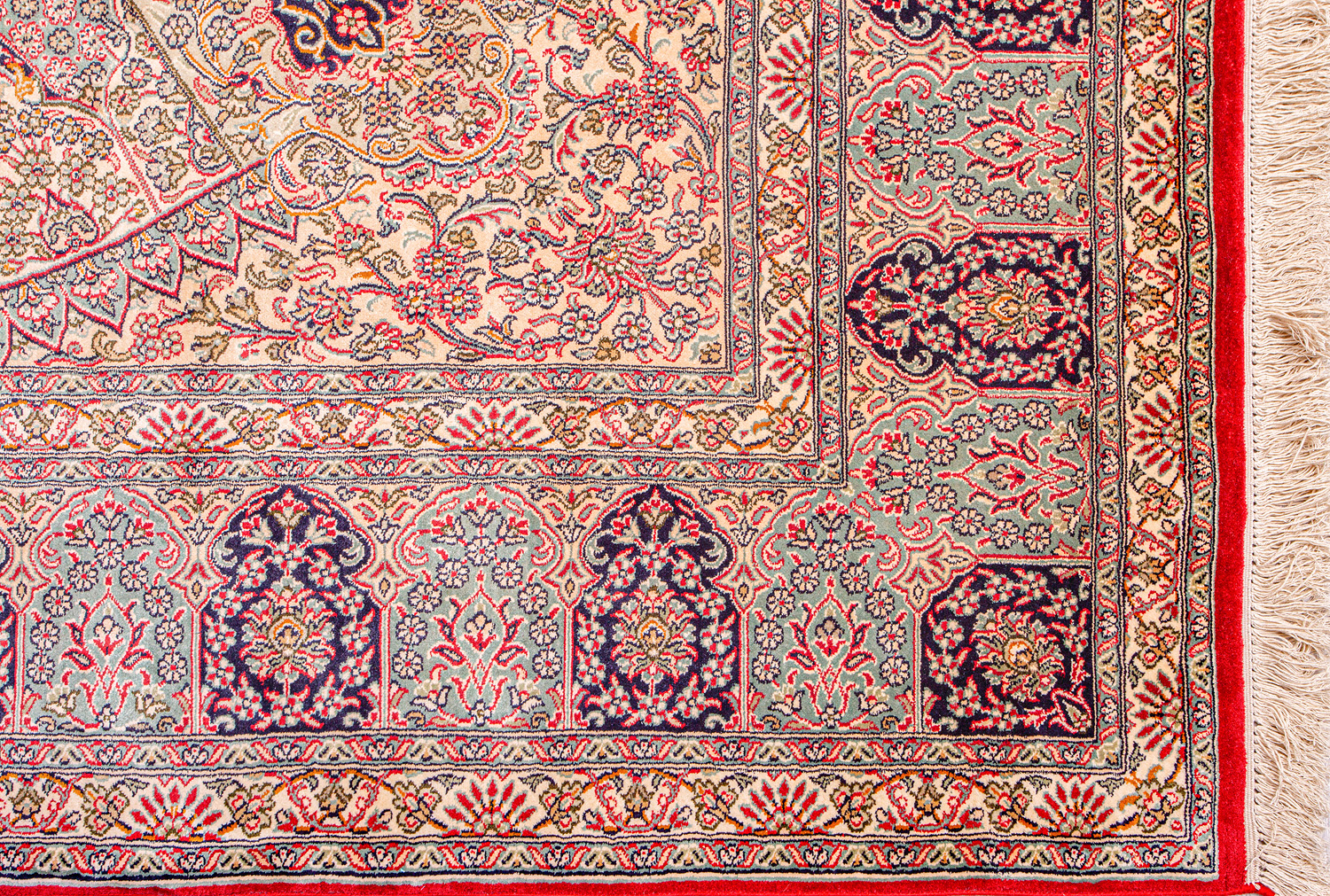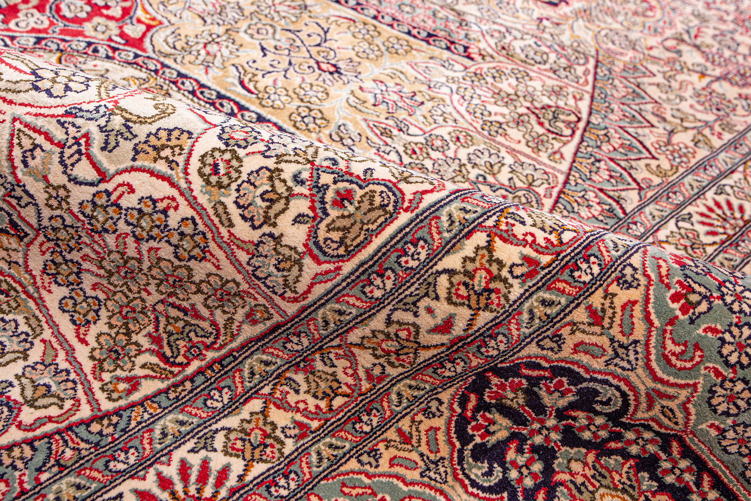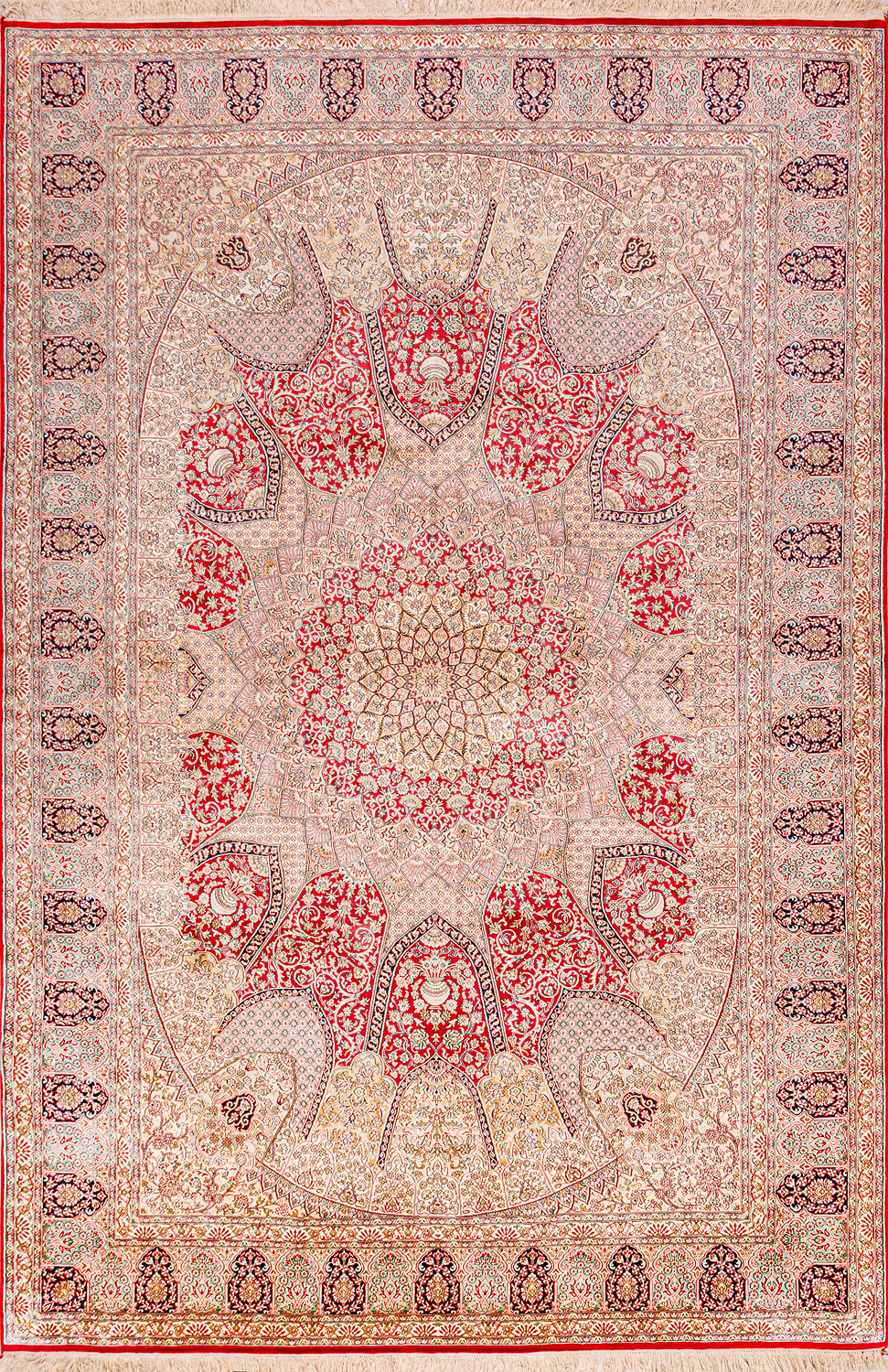 Ковры из коллекции Кашмир ткутся по традиционной технологии из нежнейшего кашмирского шелка. Лучшие произведения индийских мастеров отличает высокая узелковая плотность, прочность и яркость цветов.