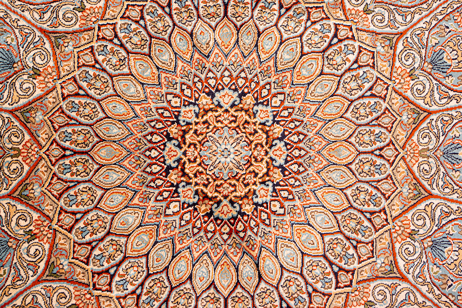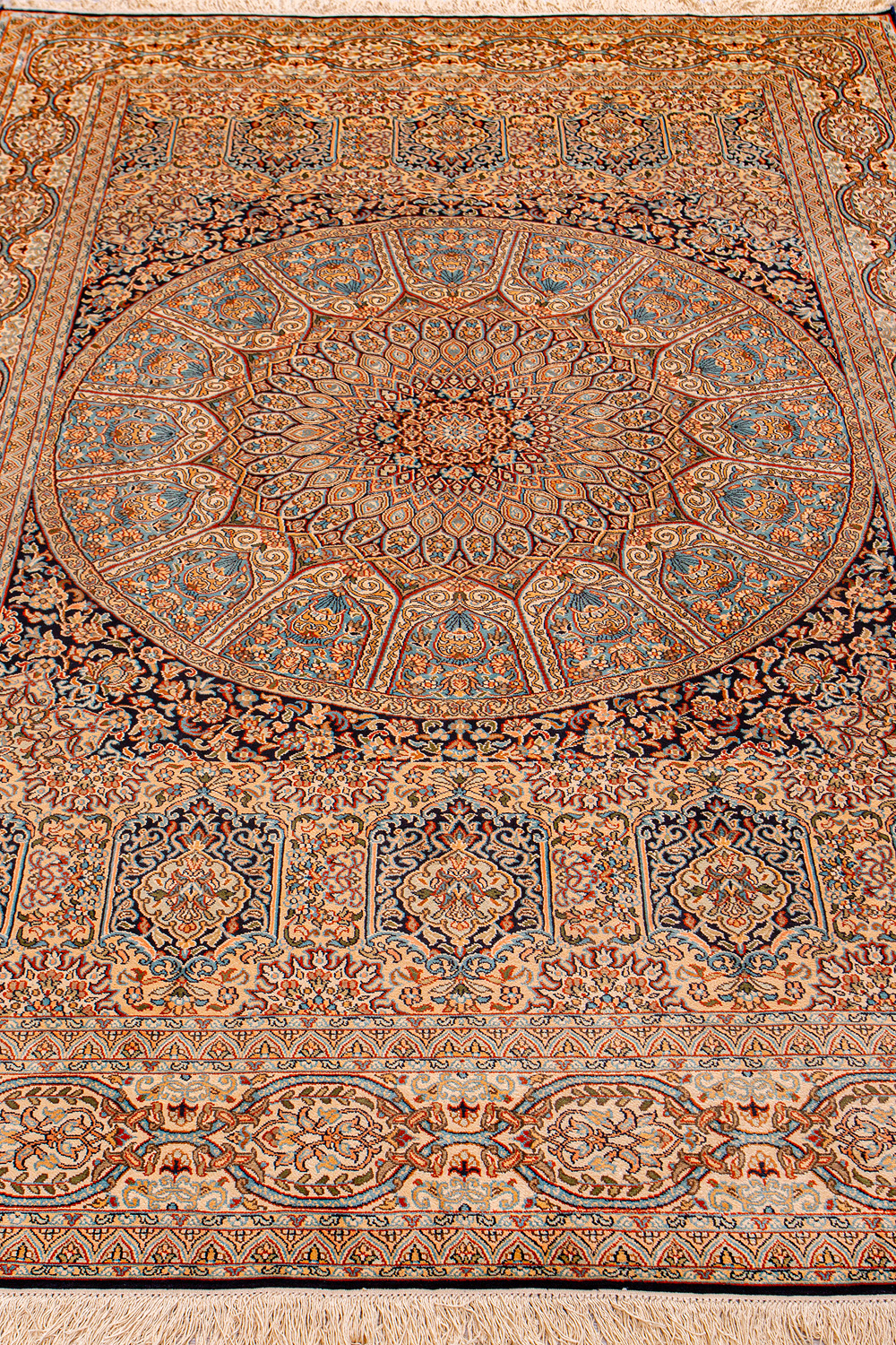 Гармония цвета и изображения придаёт коврам из коллекции Кашмир классическую выразительность, а шёлк в составе — яркие переливы блеска.
