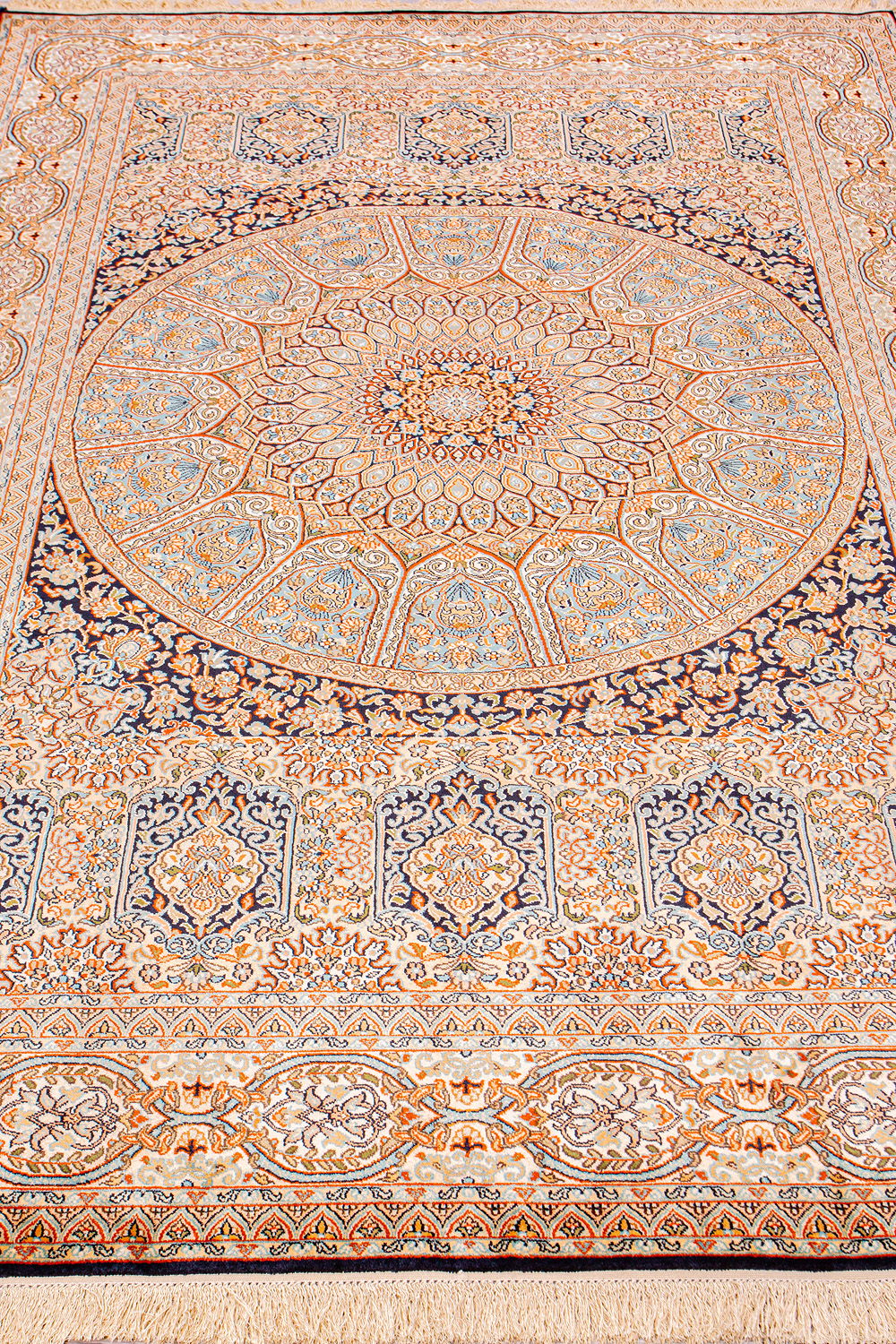 Ковры из коллекции Кашмир ткутся по традиционной технологии из нежнейшего кашмирского шелка. Лучшие произведения индийских мастеров отличает высокая узелковая плотность, прочность и яркость цветов.