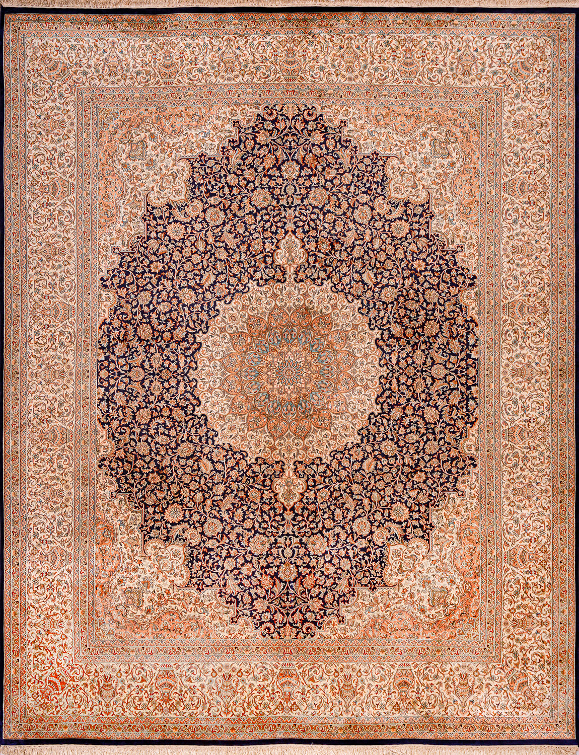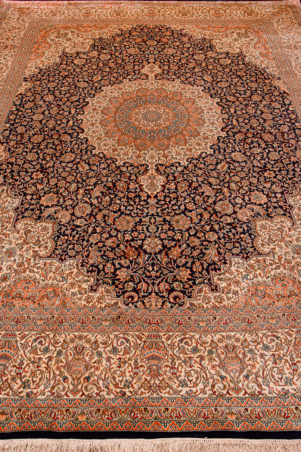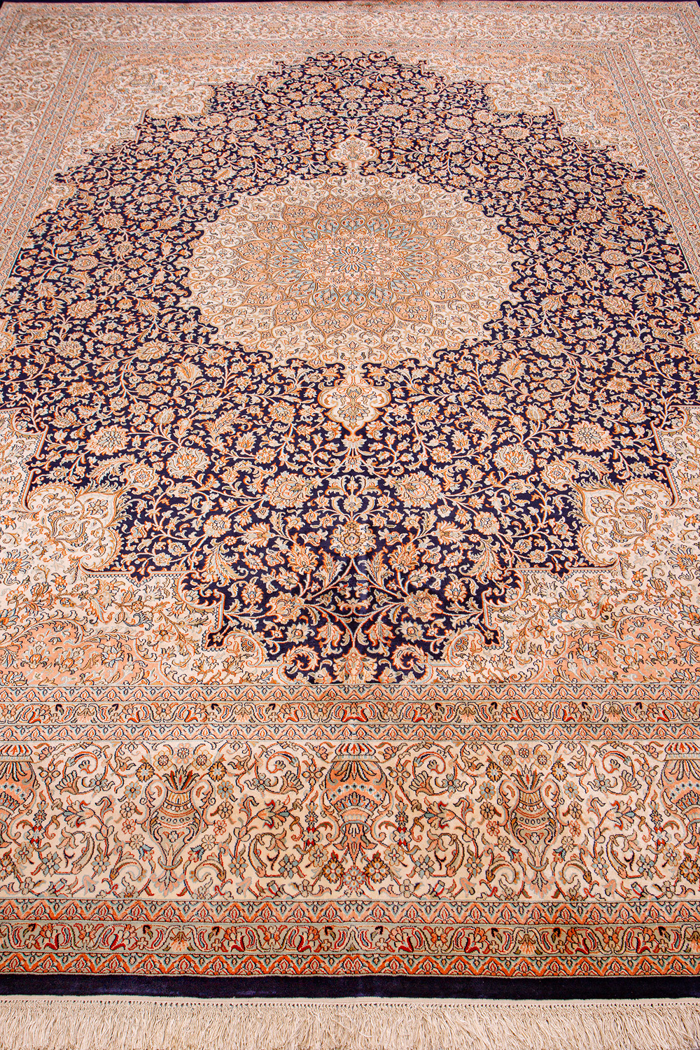 Ковры из коллекции Кашмир ткутся по традиционной технологии из нежнейшего кашмирского шелка. Лучшие произведения индийских мастеров отличает высокая узелковая плотность, прочность и яркость цветов.