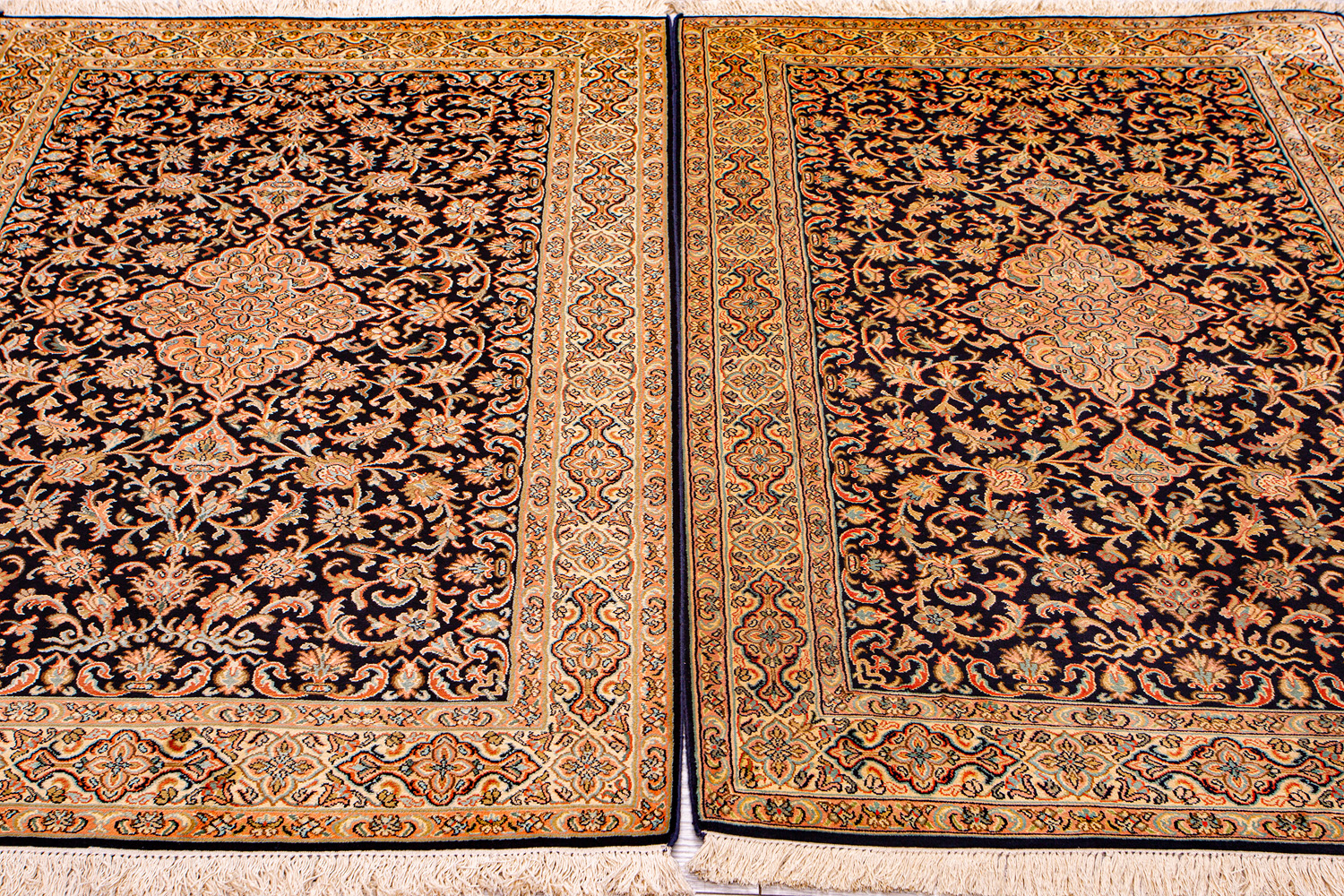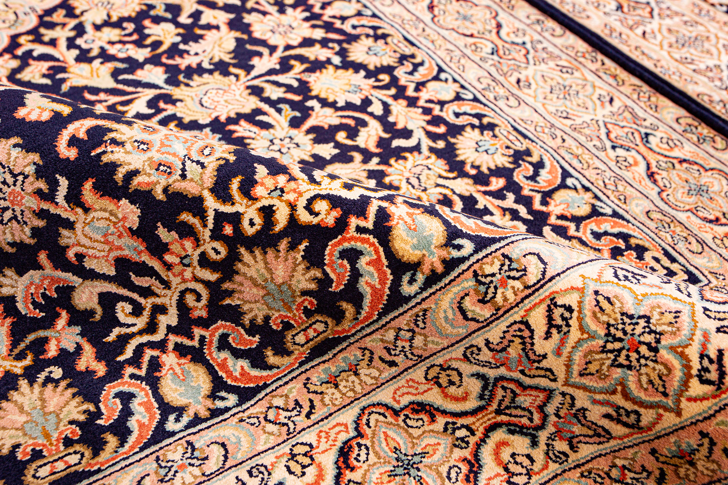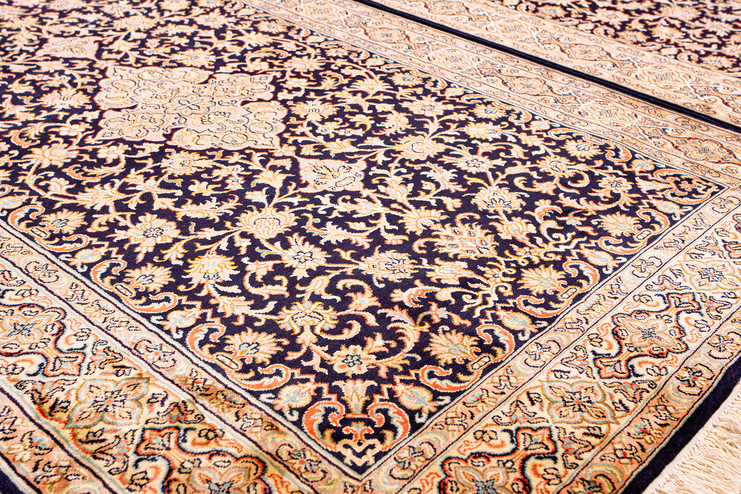 Ковры из коллекции Кашмир ткутся по традиционной технологии из нежнейшего кашмирского шелка. Лучшие произведения индийских мастеров отличает высокая узелковая плотность, прочность и яркость цветов.