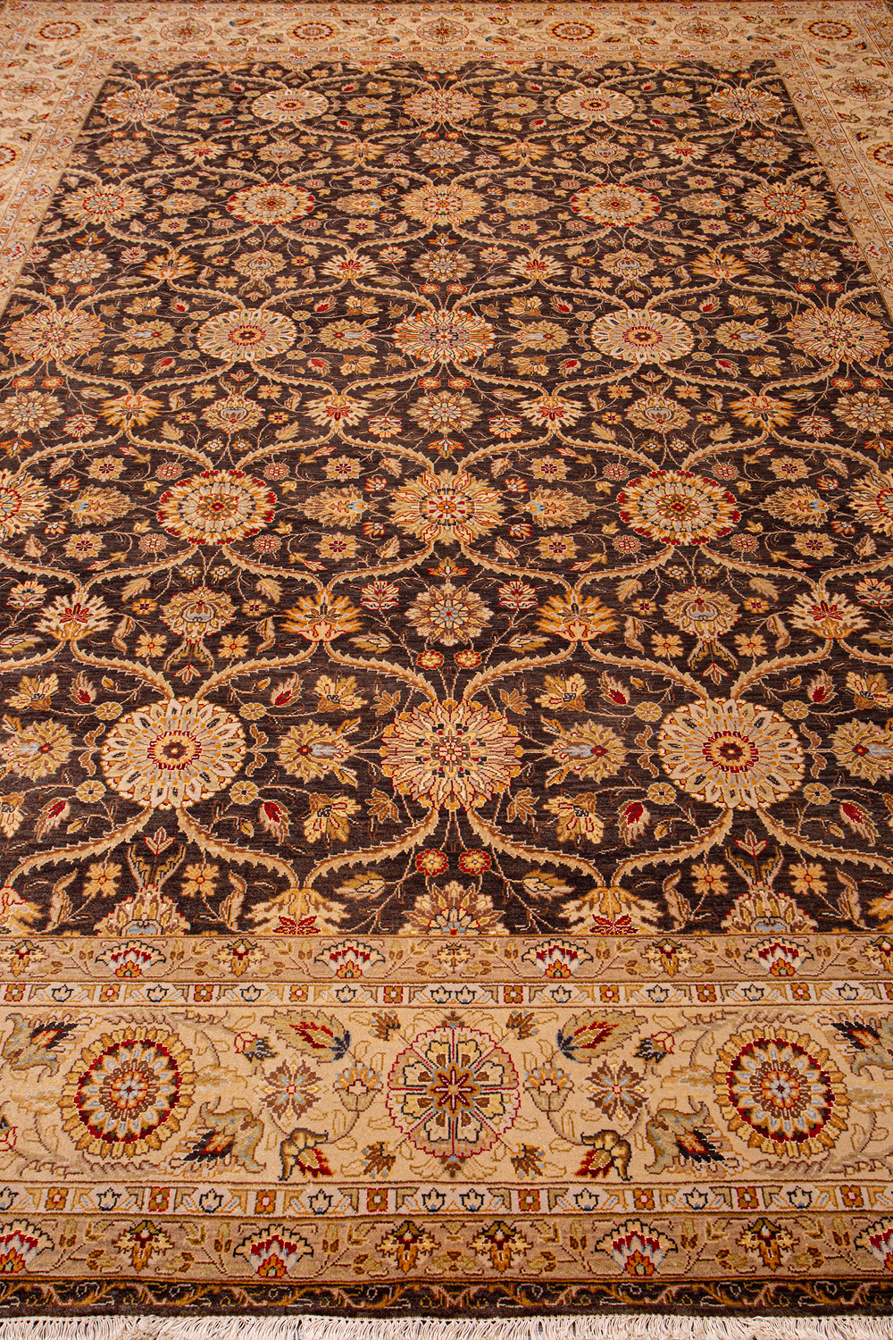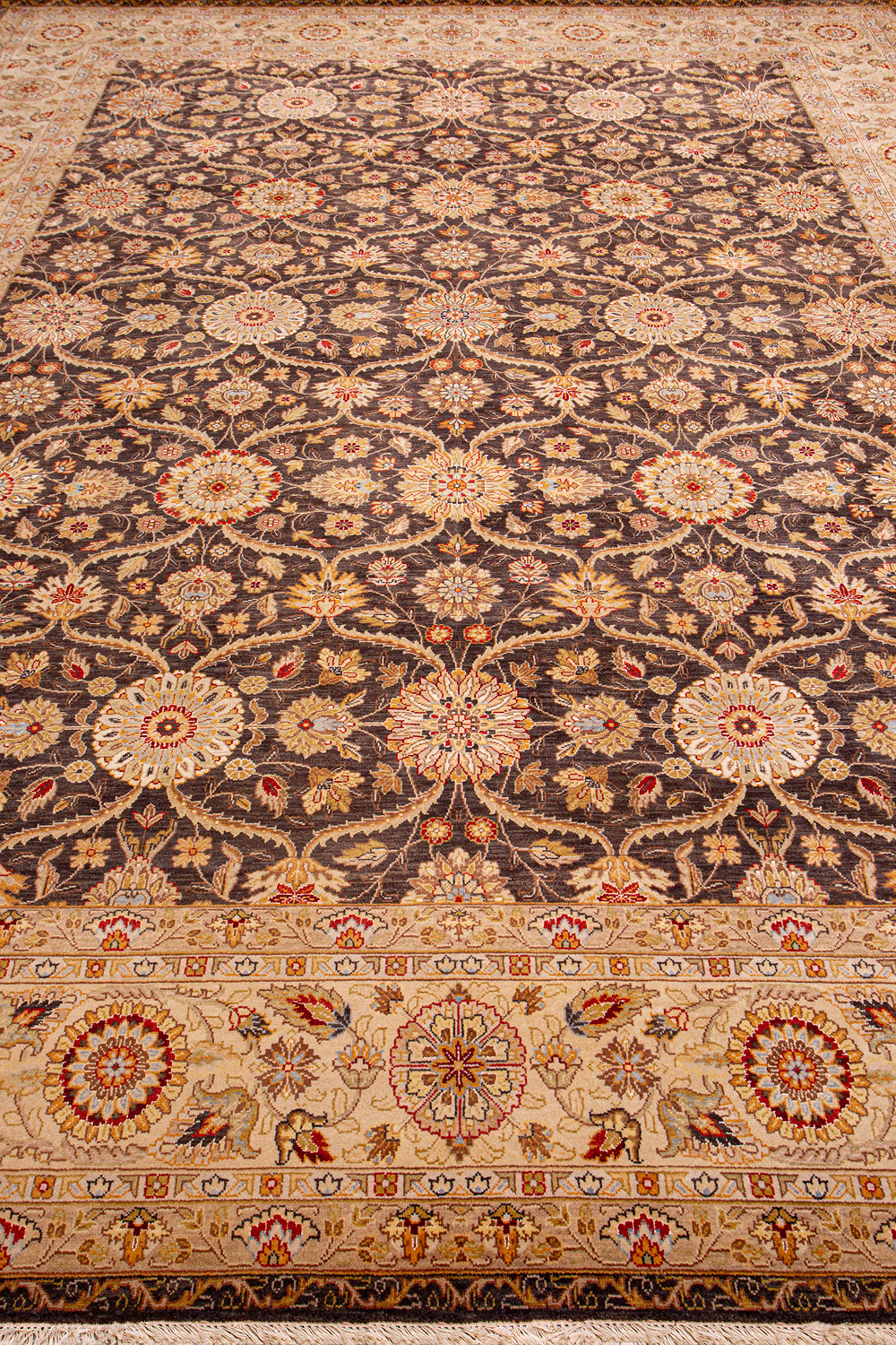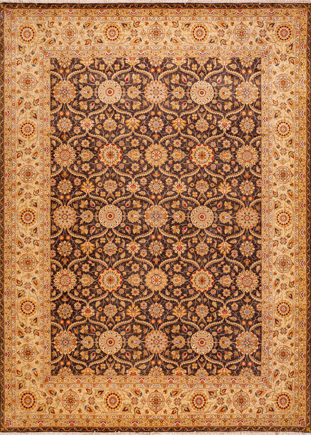 Более пяти веков назад в городе Агра зародилась знаменитая индийская школа ковроткачества, прославившаяся не меньше, чем расположенный здесь же Тадж-Махал. Мощное персидское влияние, помноженное на местный колорит, привело к появлению оригинальных орнаментов с богатыми растительными узорами — причудливым цветам, ветвям и листьям, разбросанным по всему полю ковра.