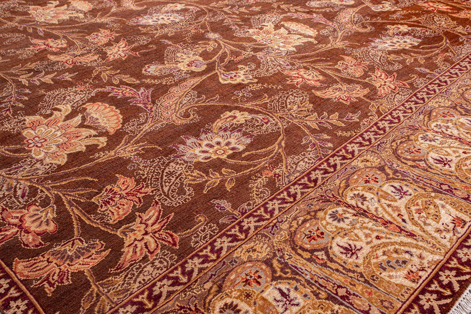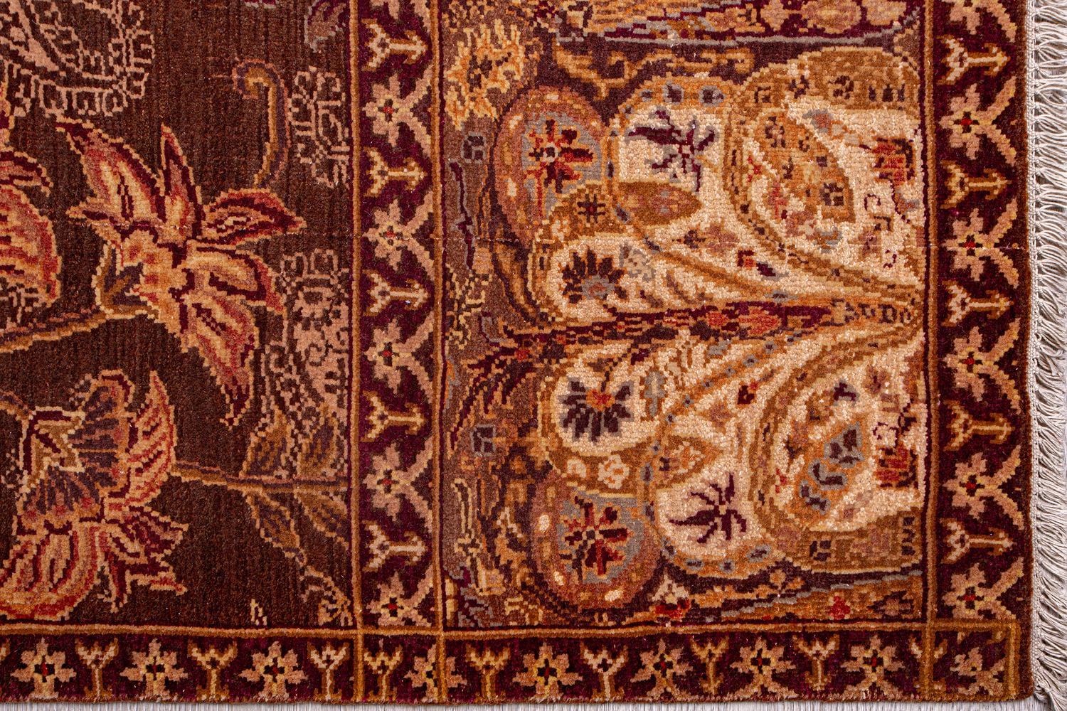 Более пяти веков назад в городе Агра зародилась знаменитая индийская школа ковроткачества, прославившаяся не меньше, чем расположенный здесь же Тадж-Махал. Мощное персидское влияние, помноженное на местный колорит, привело к появлению оригинальных орнаментов с богатыми растительными узорами — причудливым цветам, ветвям и листьям, разбросанным по всему полю ковра.