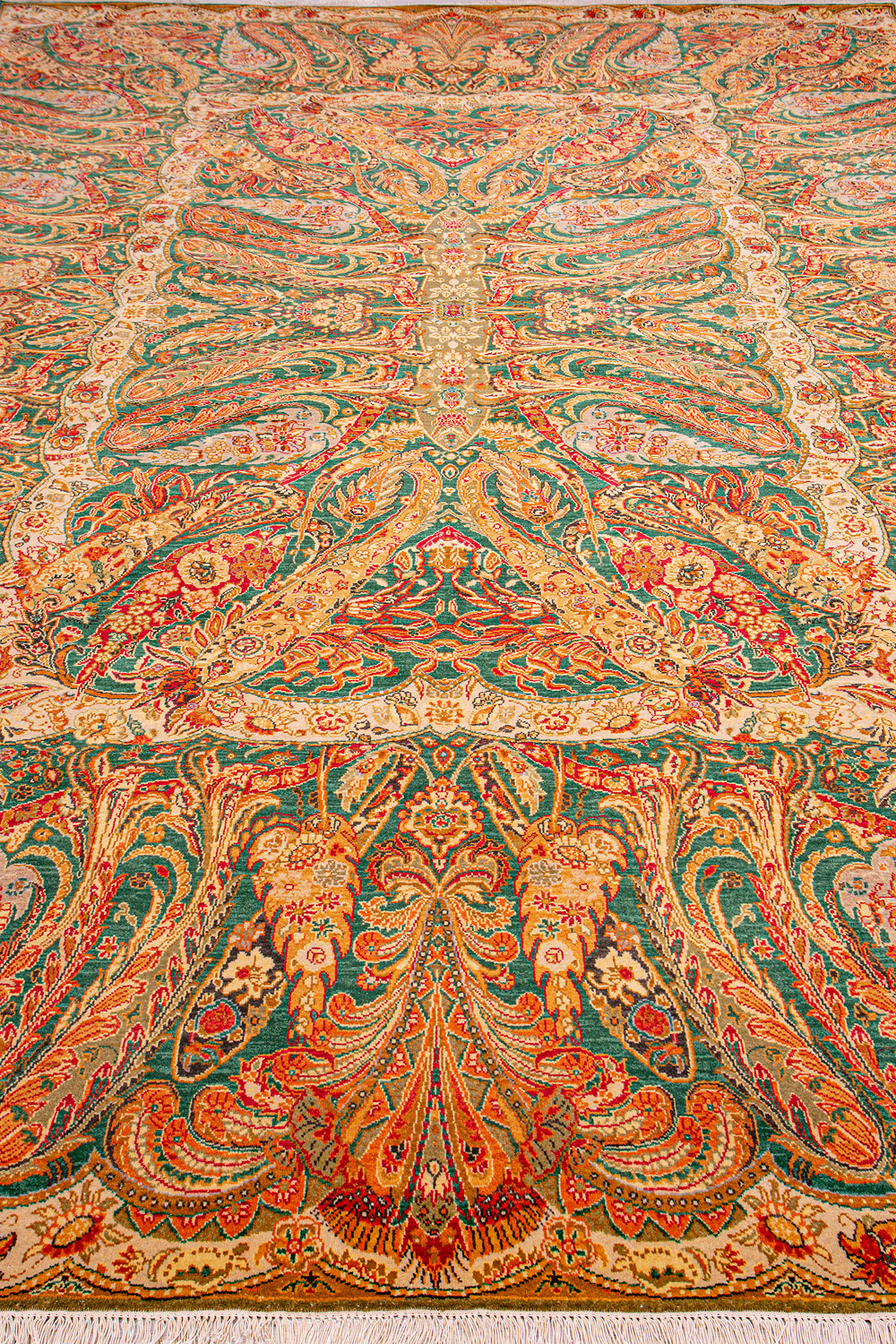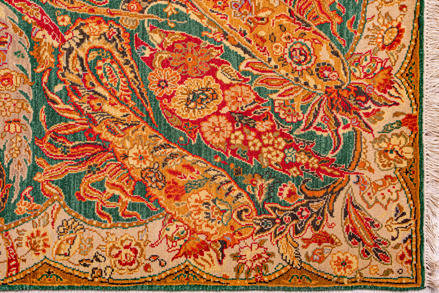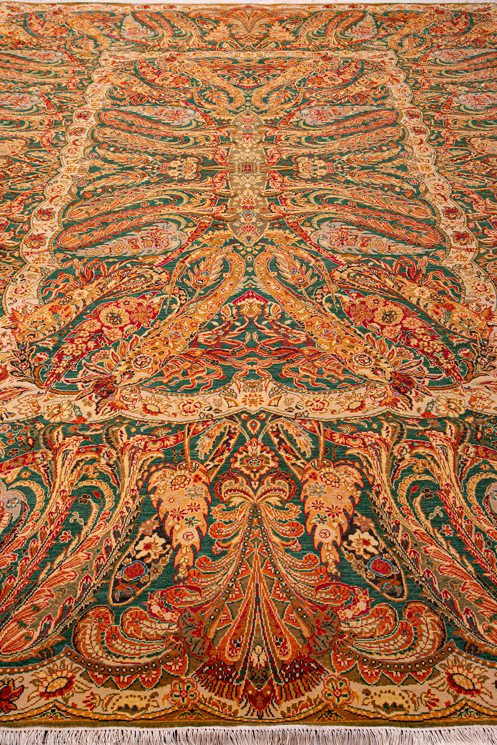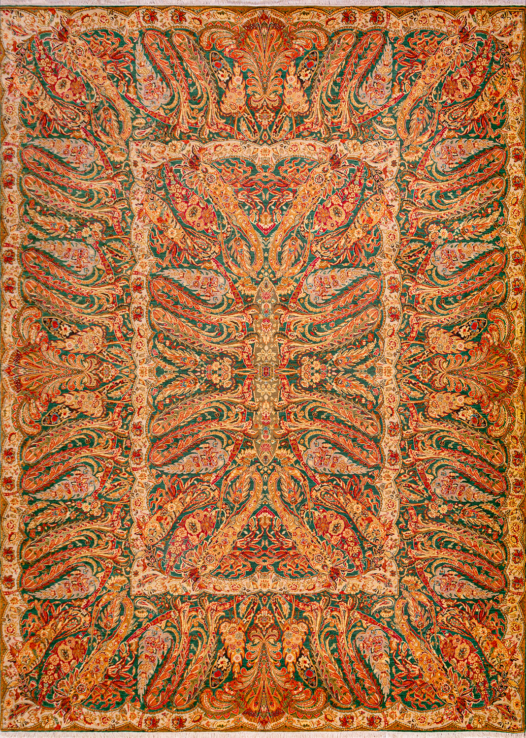 Более пяти веков назад в городе Агра зародилась знаменитая индийская школа ковроткачества, прославившаяся не меньше, чем расположенный здесь же Тадж-Махал. Мощное персидское влияние, помноженное на местный колорит, привело к появлению оригинальных орнаментов с богатыми растительными узорами — причудливым цветам, ветвям и листьям, разбросанным по всему полю ковра.