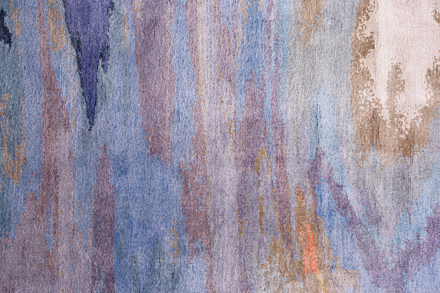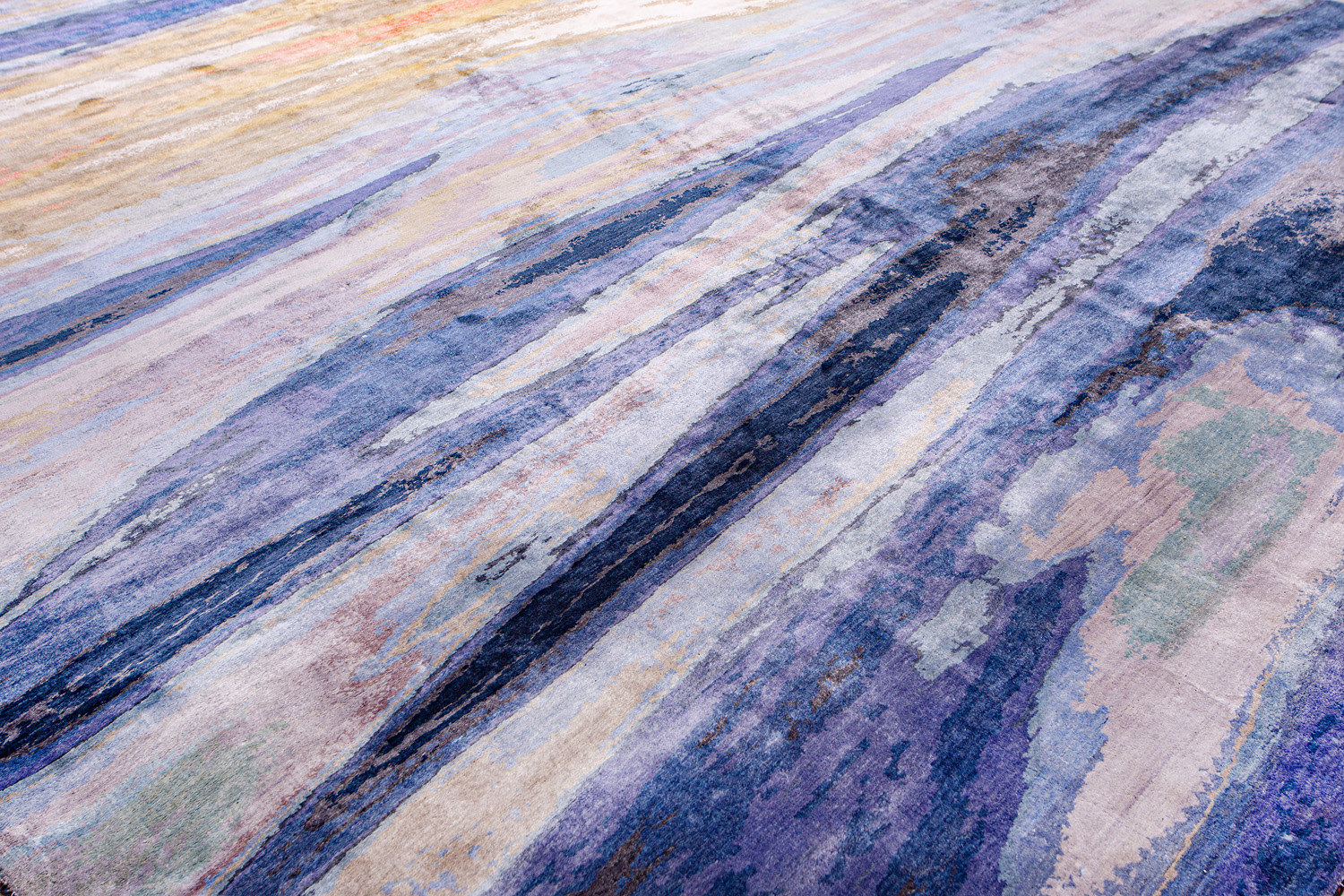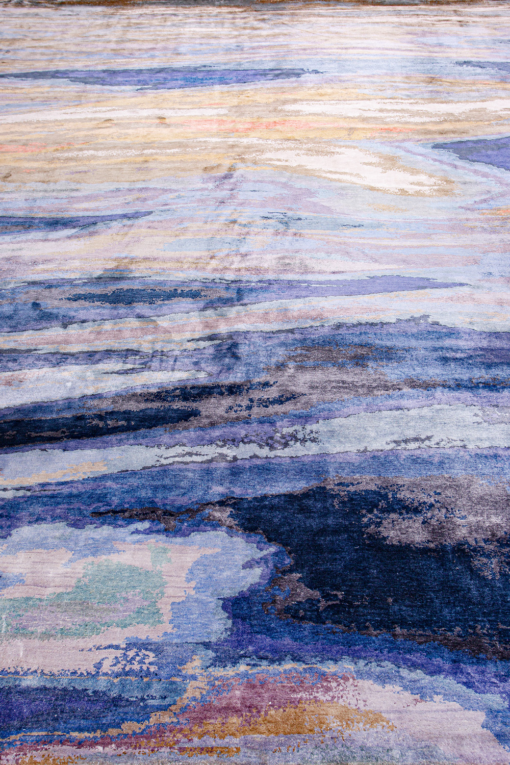 Дизайн ковров напоминает современные полотна художников-абстракционистов и производит столь же яркое и незабываемое впечатление в интерьере. Живописный эффект и необычная фактура зависят от выбора материала: натуральной шерсти, шёлка и от их сочетаний друг с другом. Ковры ткутся вручную в лучших мастерских Индии и Пакистана.