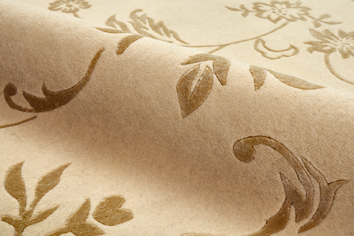Отличительной особенностью ковров является их состав: помимо овечьей шерсти, добавляется шерсть молодого яка, что придает изделию прочность и шелковистый блеск. Шерсть тщательно вычесывается, промывается, затем из нее изготавливают пряжу.