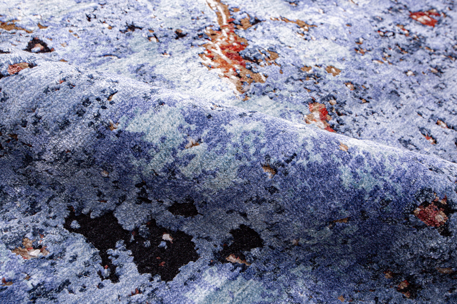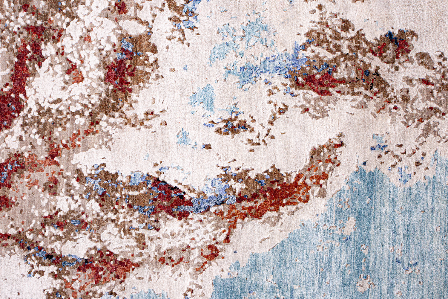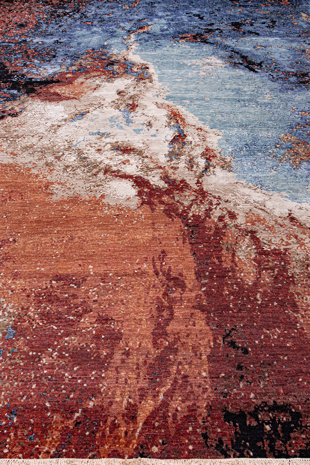 Дизайн ковров напоминает современные полотна художников-абстракционистов и производит столь же яркое и незабываемое впечатление в интерьере. Живописный эффект и необычная фактура зависят от выбора материала: натуральной шерсти, шёлка и от их сочетаний друг с другом. Ковры ткутся вручную в лучших мастерских Индии и Пакистана.