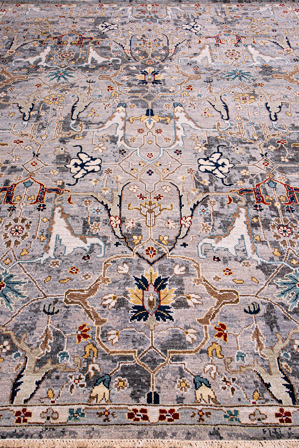 Родина этих ковров Индия и Пакистан. Чтобы создать такое произведение искусства у мастеров уходит от одного года до двух лет. Плотность ковров, в зависимости от размера, составляет от 150 000 до 400 000 узлов на квадратный метр.