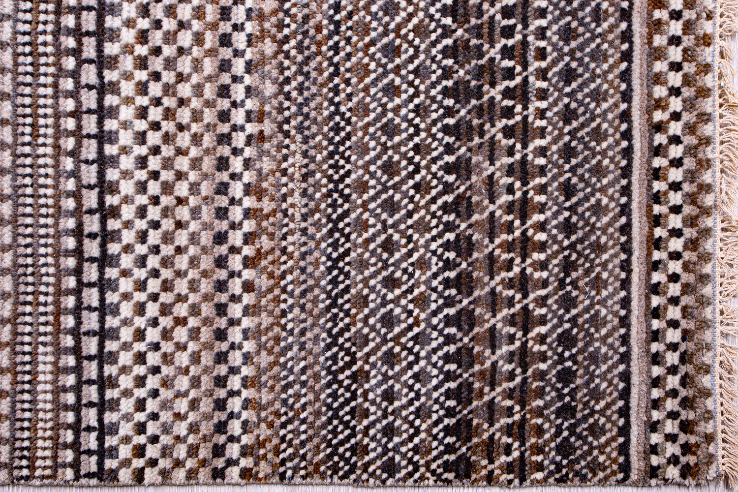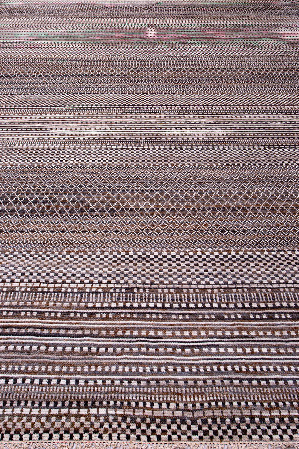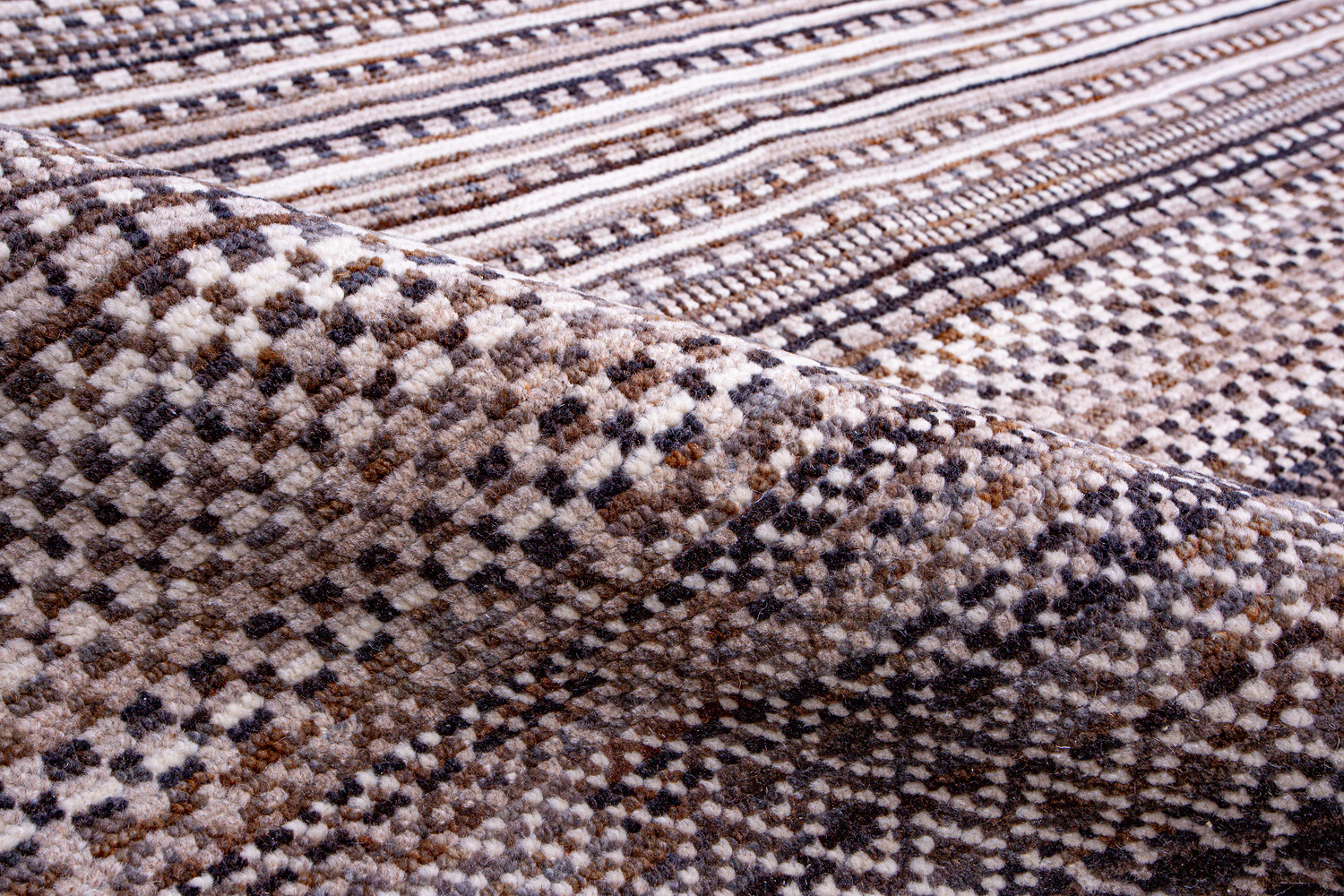 Дизайн ковров напоминает современные полотна художников-абстракционистов и производит столь же яркое и незабываемое впечатление в интерьере. Живописный эффект и необычная фактура зависят от выбора материала: натуральной шерсти, шёлка и от их сочетаний друг с другом. Ковры ткутся вручную в лучших мастерских Индии и Пакистана.
