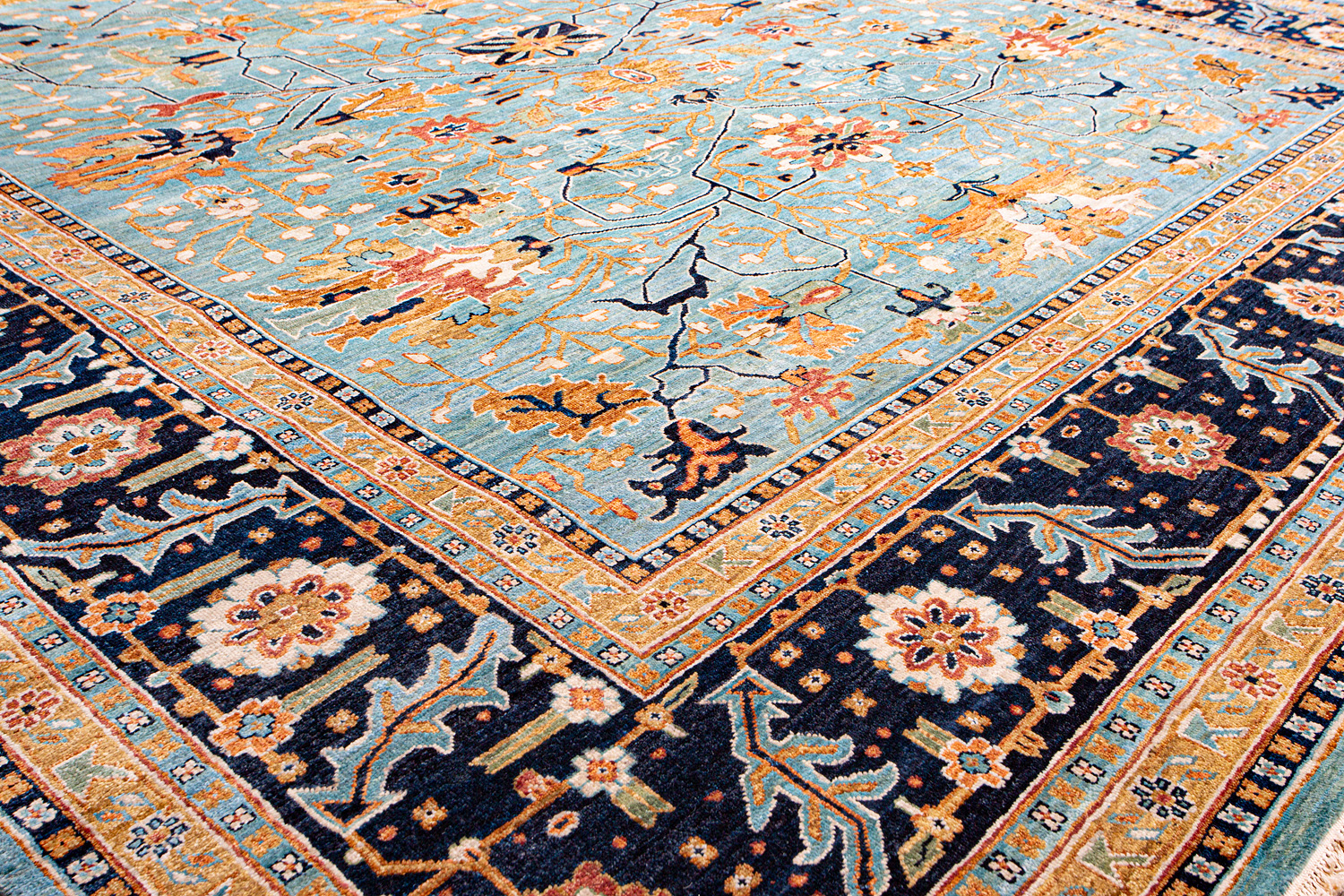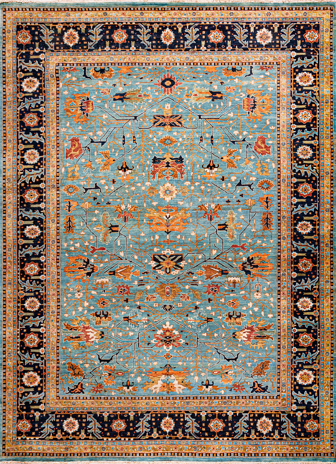 Каждый ковер в этой коллекции соткан вручную из шерсти и арт шёлка опытными индийскими мастерами.