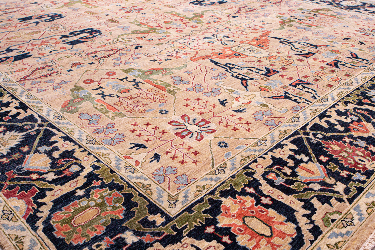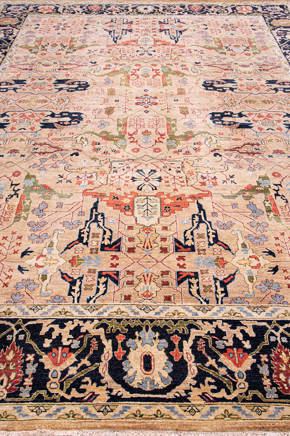 Каждый ковер в этой коллекции соткан вручную из шерсти и арт шёлка опытными индийскими мастерами.