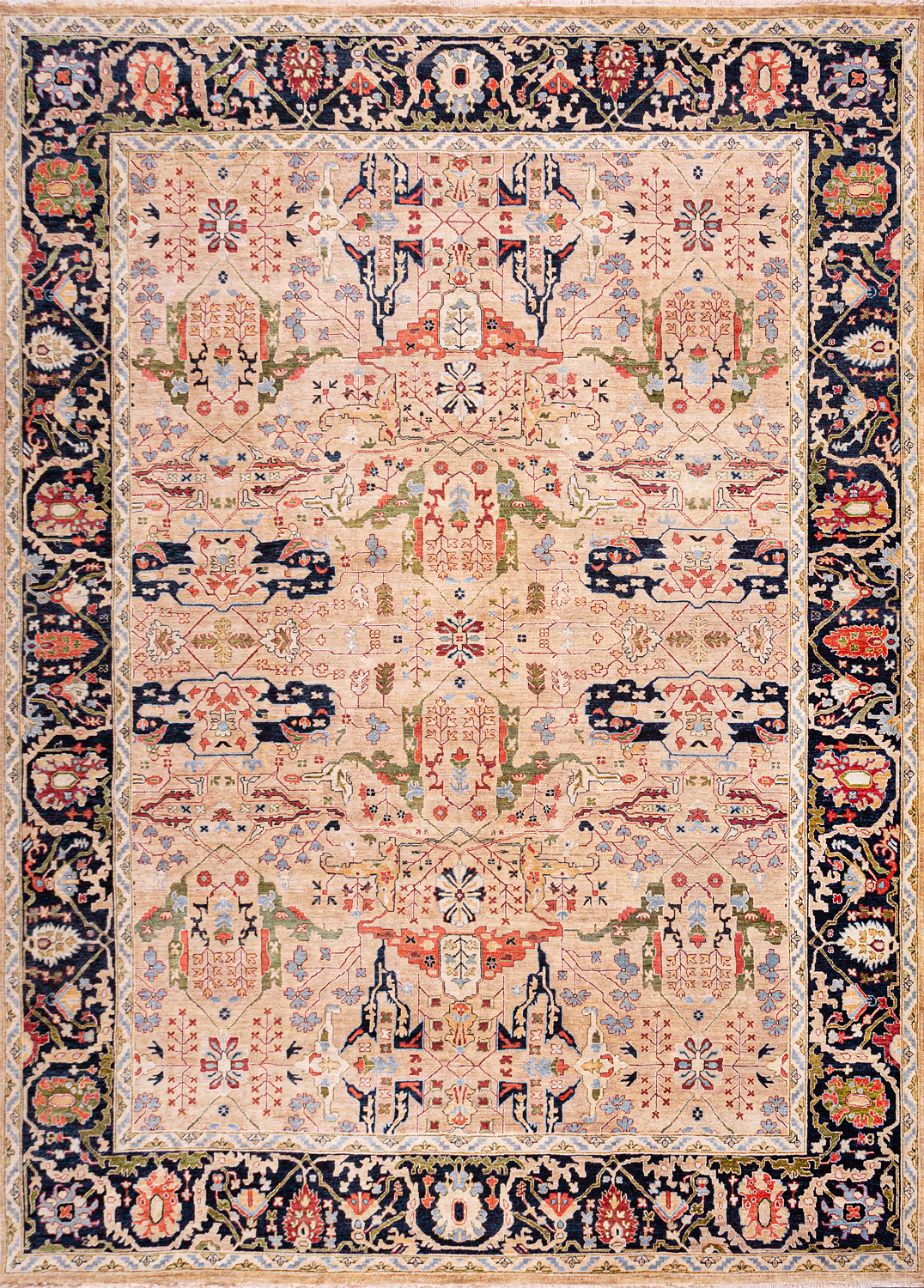 Более пяти веков назад в городе Агра зародилась знаменитая индийская школа ковроткачества, прославившаяся не меньше, чем расположенный здесь же Тадж-Махал. Мощное персидское влияние, помноженное на местный колорит, привело к появлению оригинальных орнаментов с богатыми растительными узорами — причудливым цветам, ветвям и листьям, разбросанным по всему полю ковра.