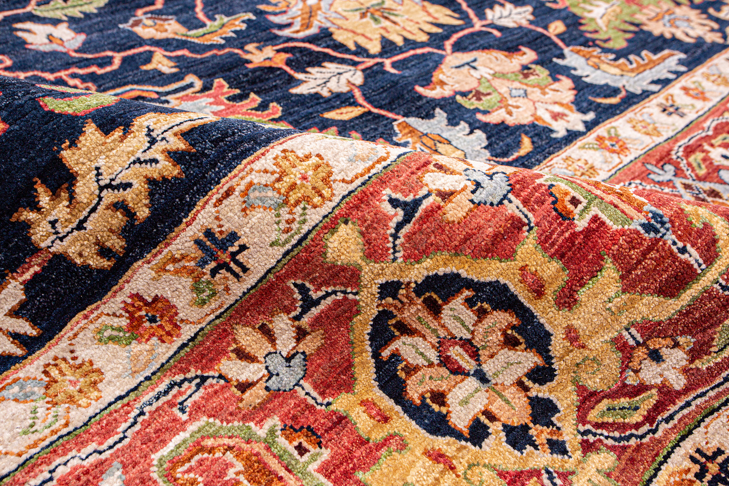 Каждый ковер в этой коллекции соткан вручную из шерсти и арт шёлка опытными индийскими мастерами.