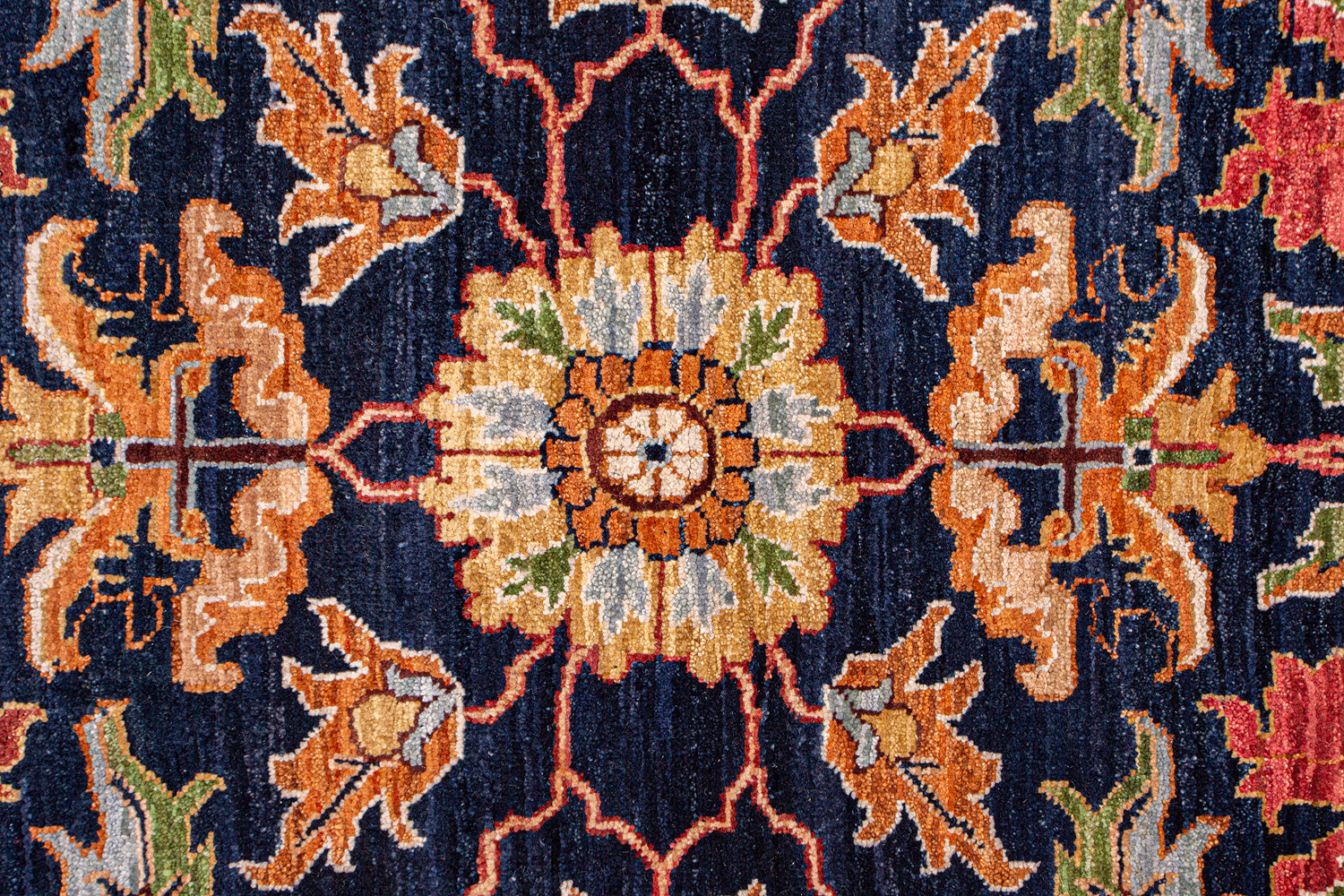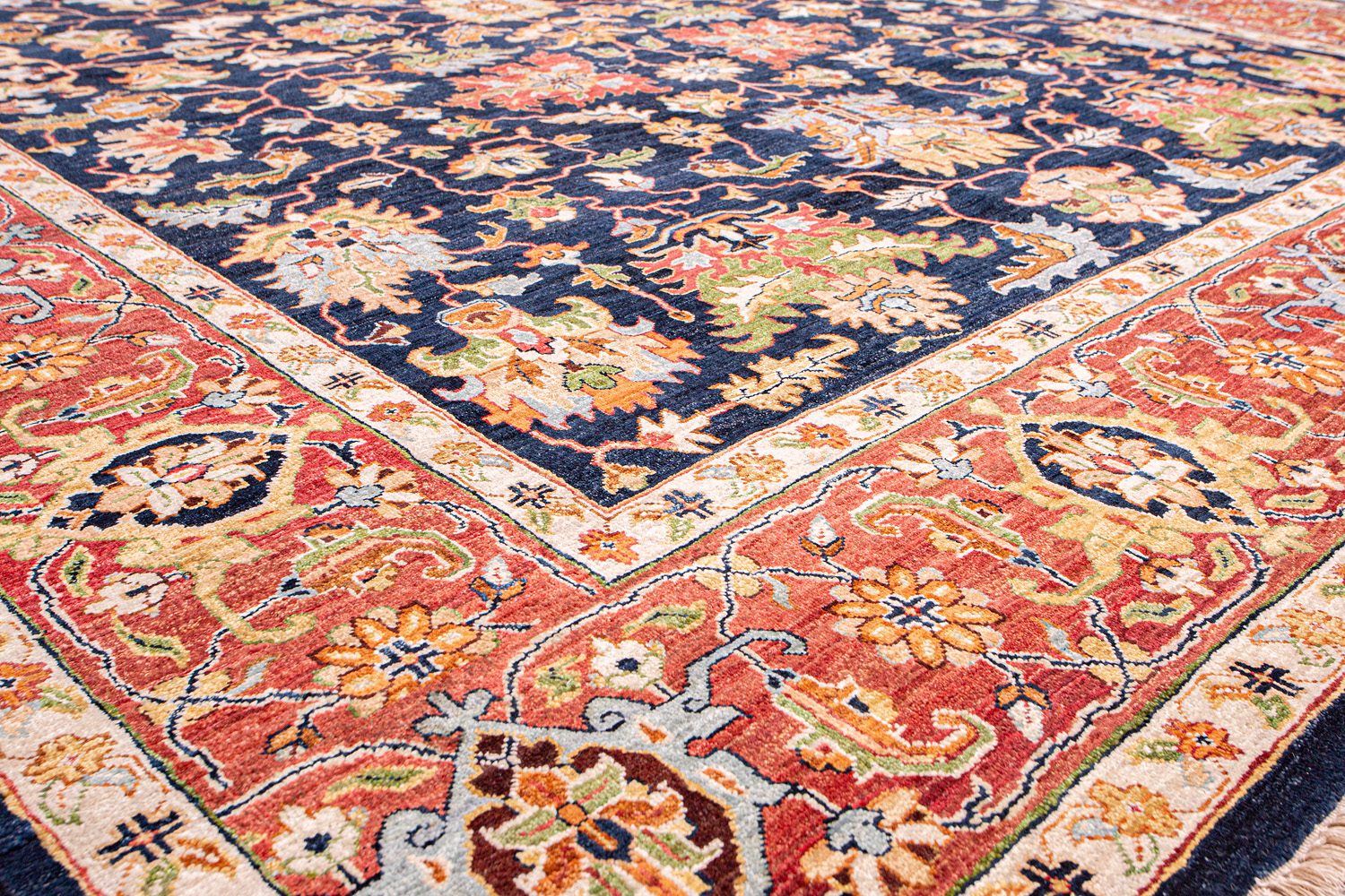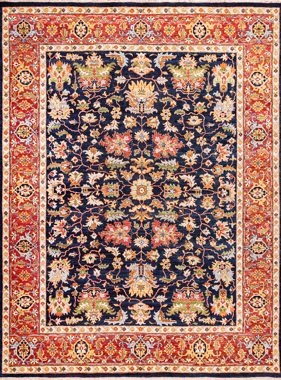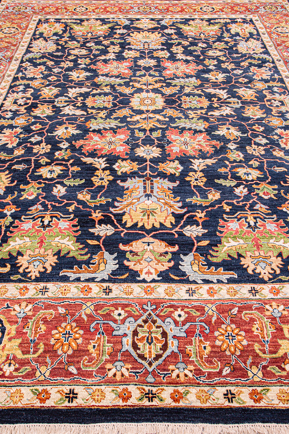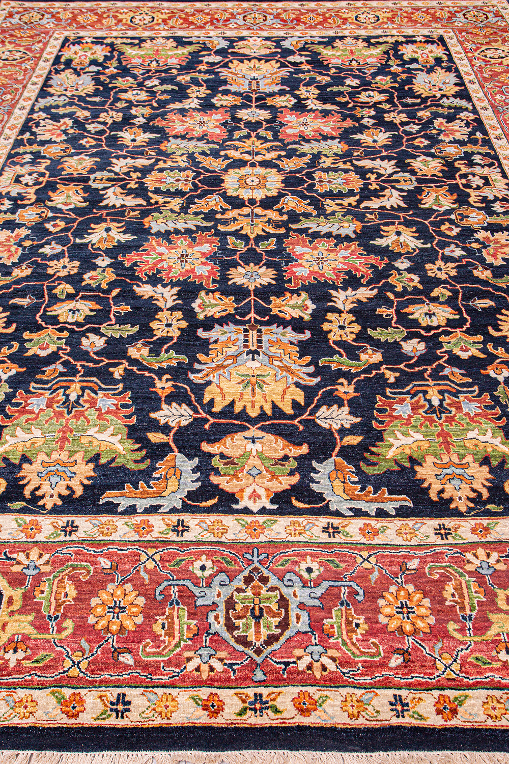 Более пяти веков назад в городе Агра зародилась знаменитая индийская школа ковроткачества, прославившаяся не меньше, чем расположенный здесь же Тадж-Махал. Мощное персидское влияние, помноженное на местный колорит, привело к появлению оригинальных орнаментов с богатыми растительными узорами — причудливым цветам, ветвям и листьям, разбросанным по всему полю ковра.