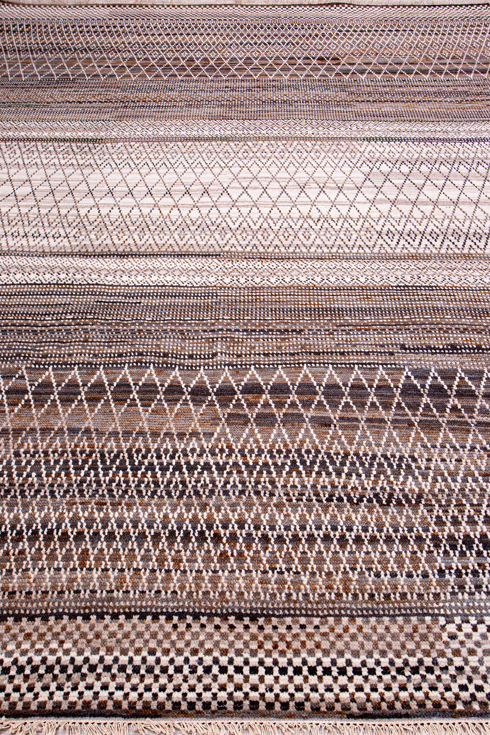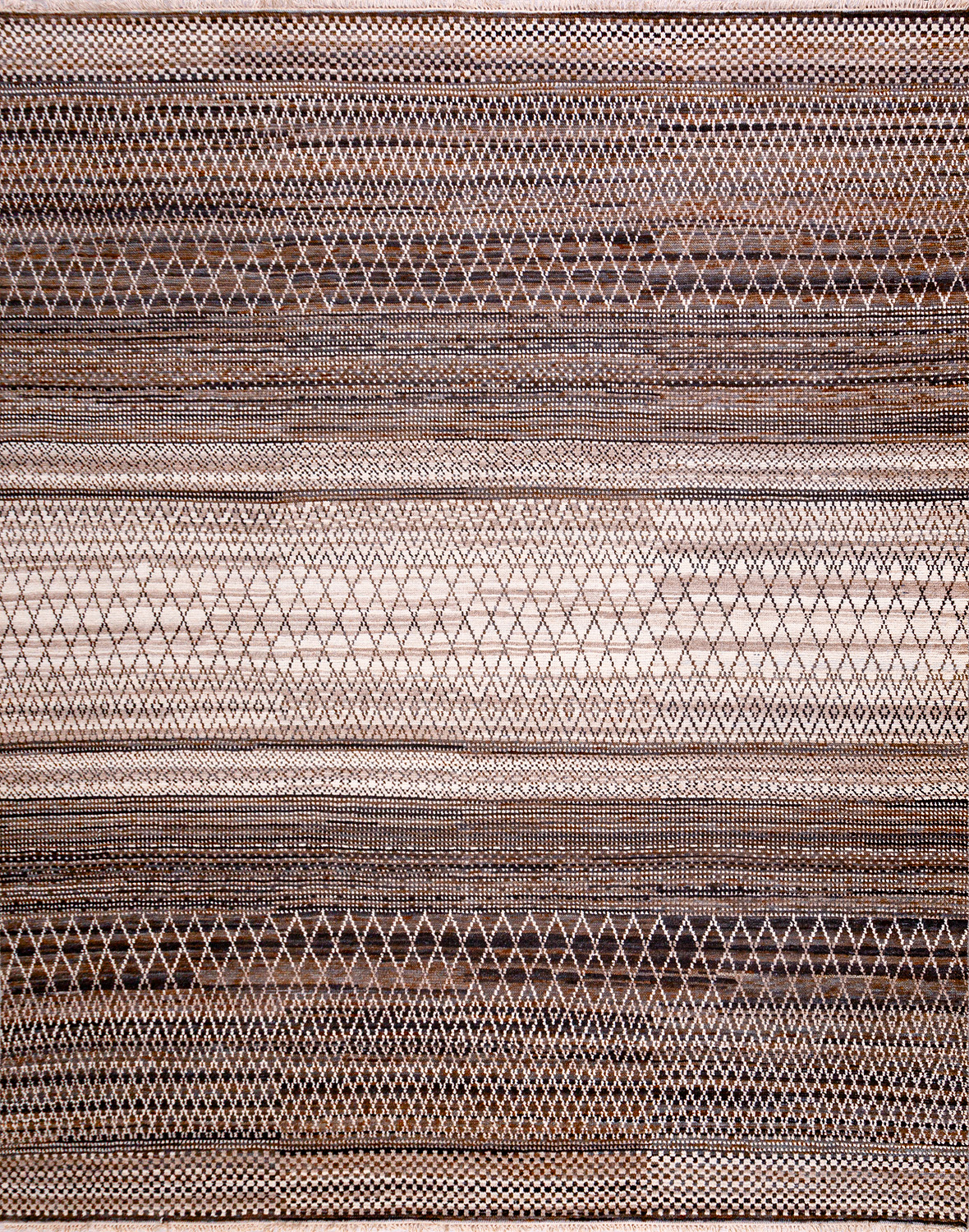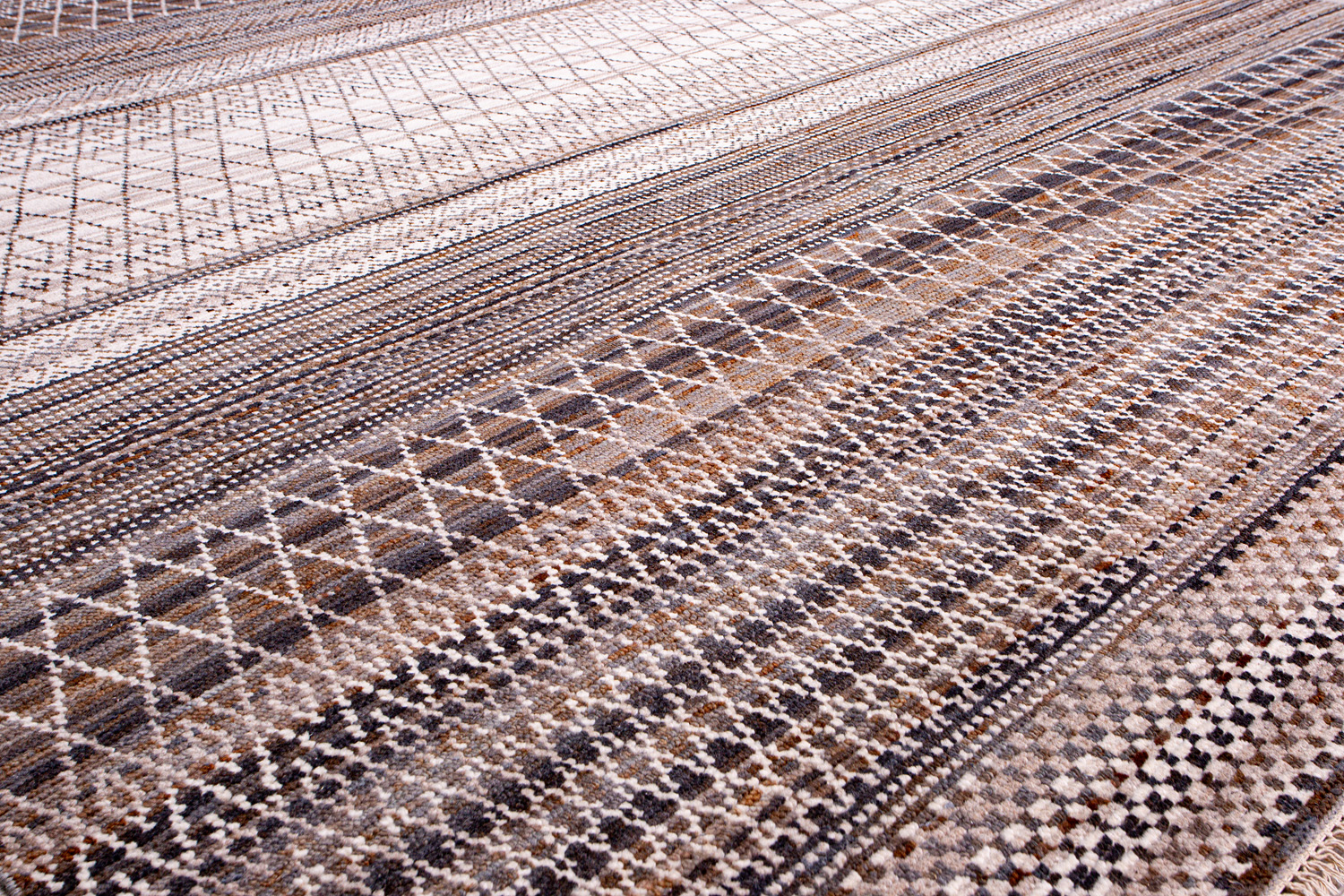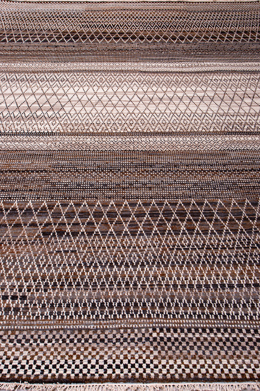 Дизайн ковров напоминает современные полотна художников-абстракционистов и производит столь же яркое и незабываемое впечатление в интерьере. Живописный эффект и необычная фактура зависят от выбора материала: натуральной шерсти, шёлка и от их сочетаний друг с другом. Ковры ткутся вручную в лучших мастерских Индии и Пакистана.