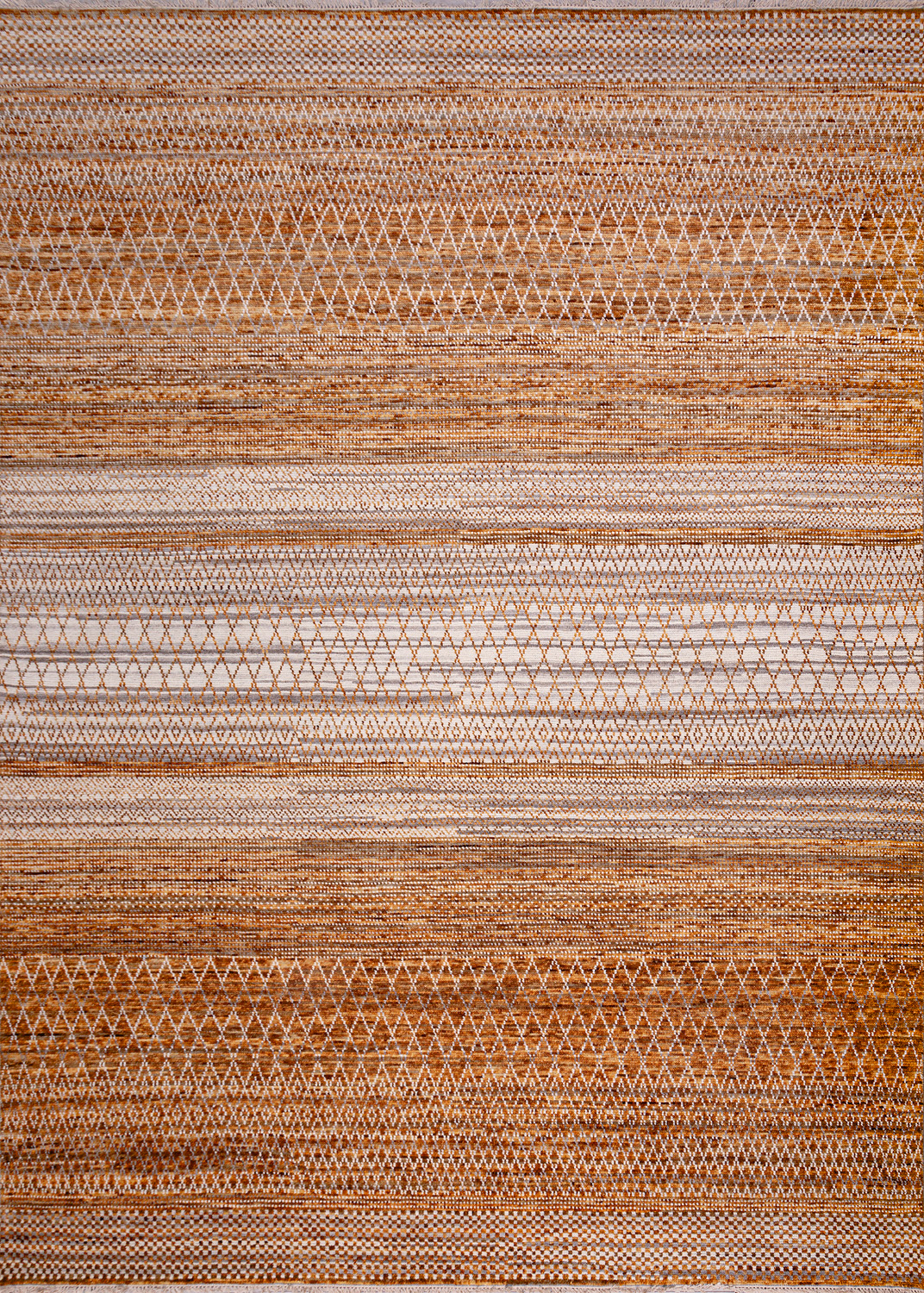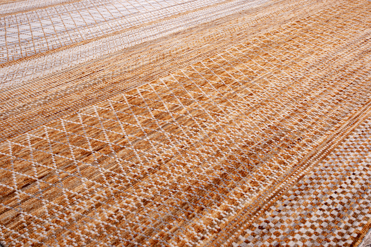 Дизайн ковров напоминает современные полотна художников-абстракционистов и производит столь же яркое и незабываемое впечатление в интерьере. Живописный эффект и необычная фактура зависят от выбора материала: натуральной шерсти, шёлка и от их сочетаний друг с другом. Ковры ткутся вручную в лучших мастерских Индии и Пакистана.
