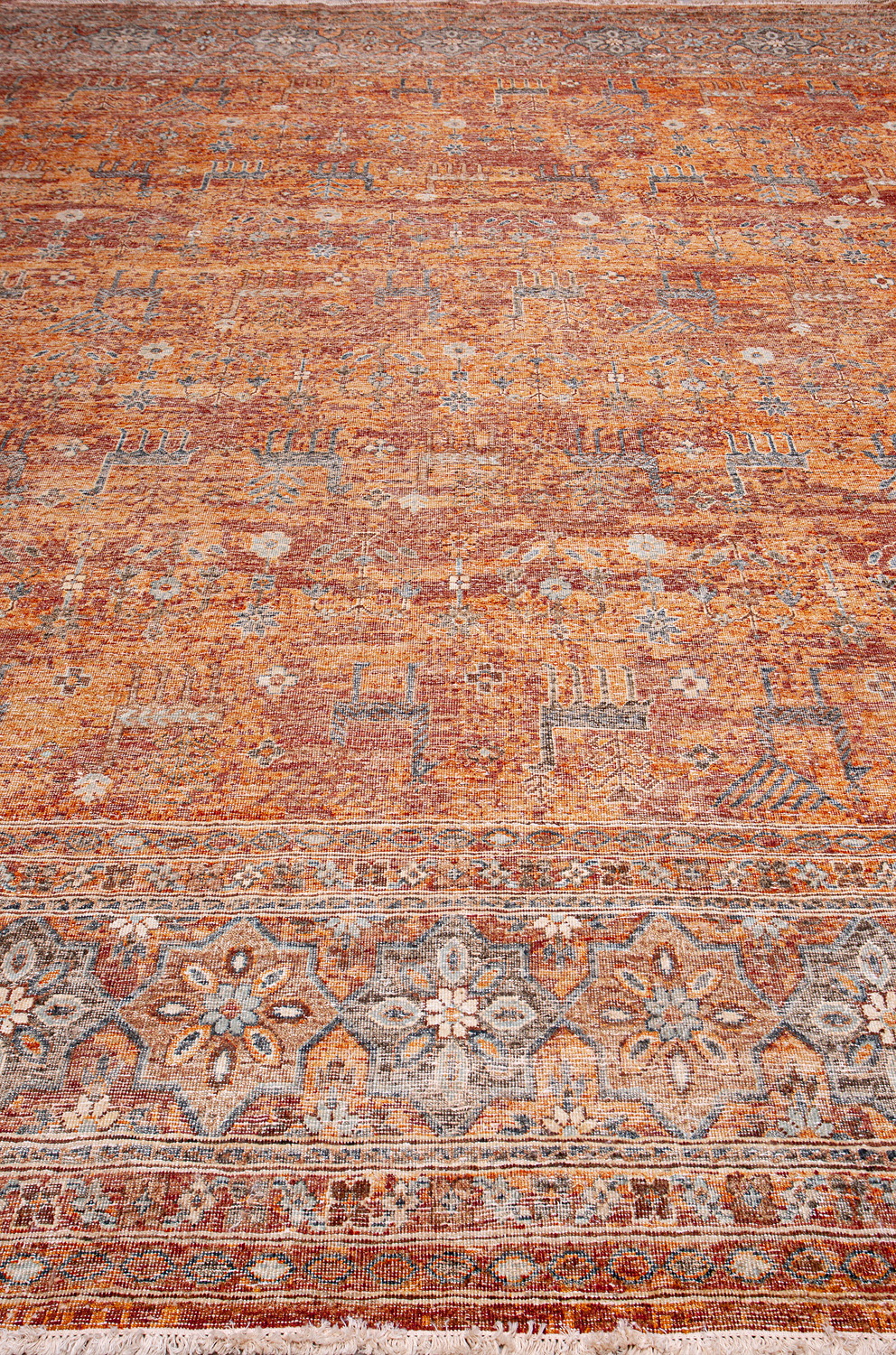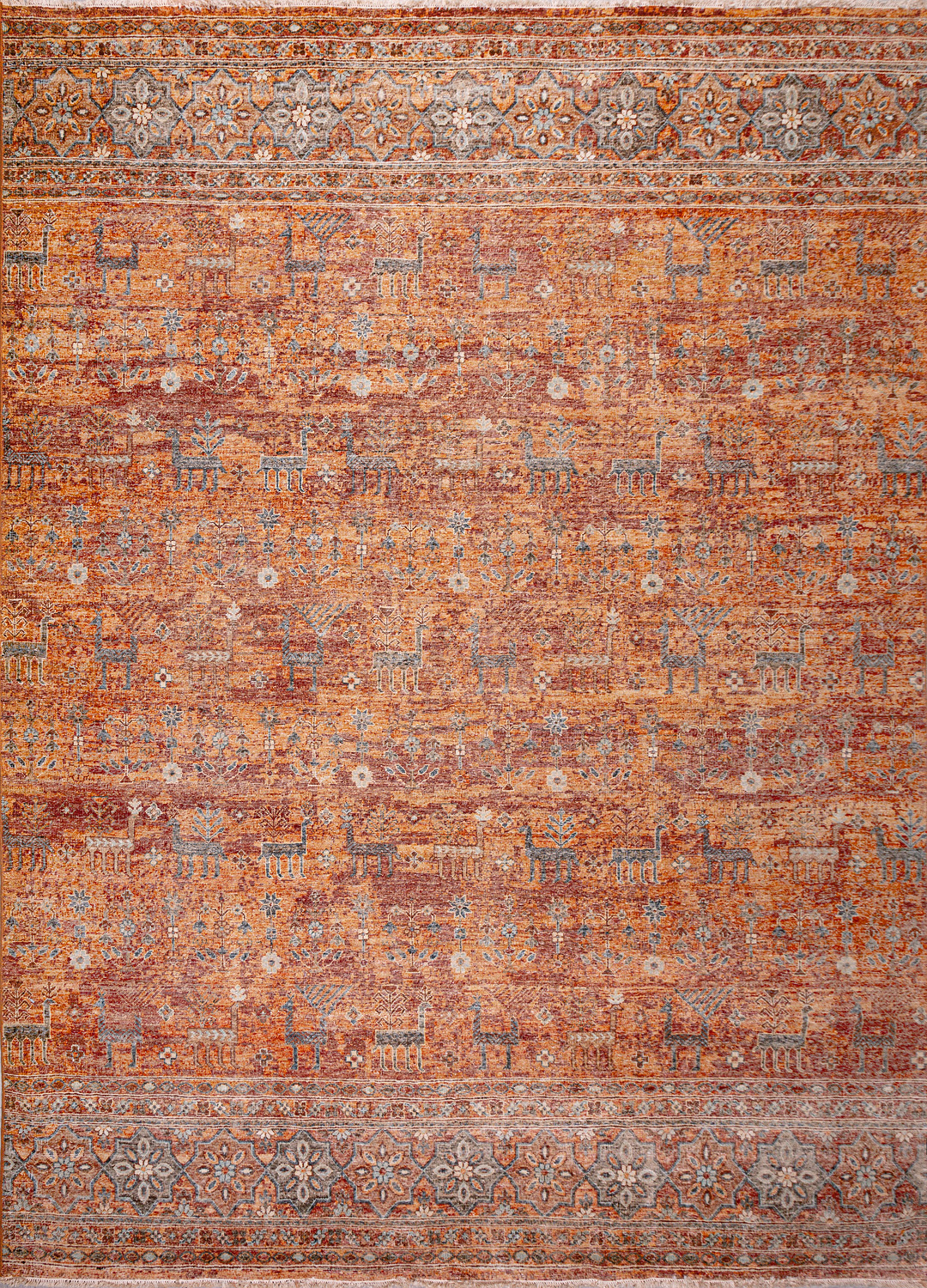 Родина этих ковров Индия и Пакистан. Чтобы создать такое произведение искусства у мастеров уходит от одного года до двух лет. Плотность ковров, в зависимости от размера, составляет от 150 000 до 400 000 узлов на квадратный метр.