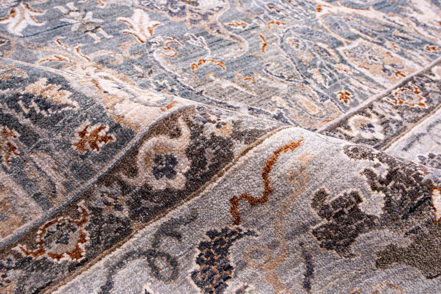 Каждый ковер в этой коллекции соткан вручную из шерсти и арт шёлка опытными индийскими мастерами.