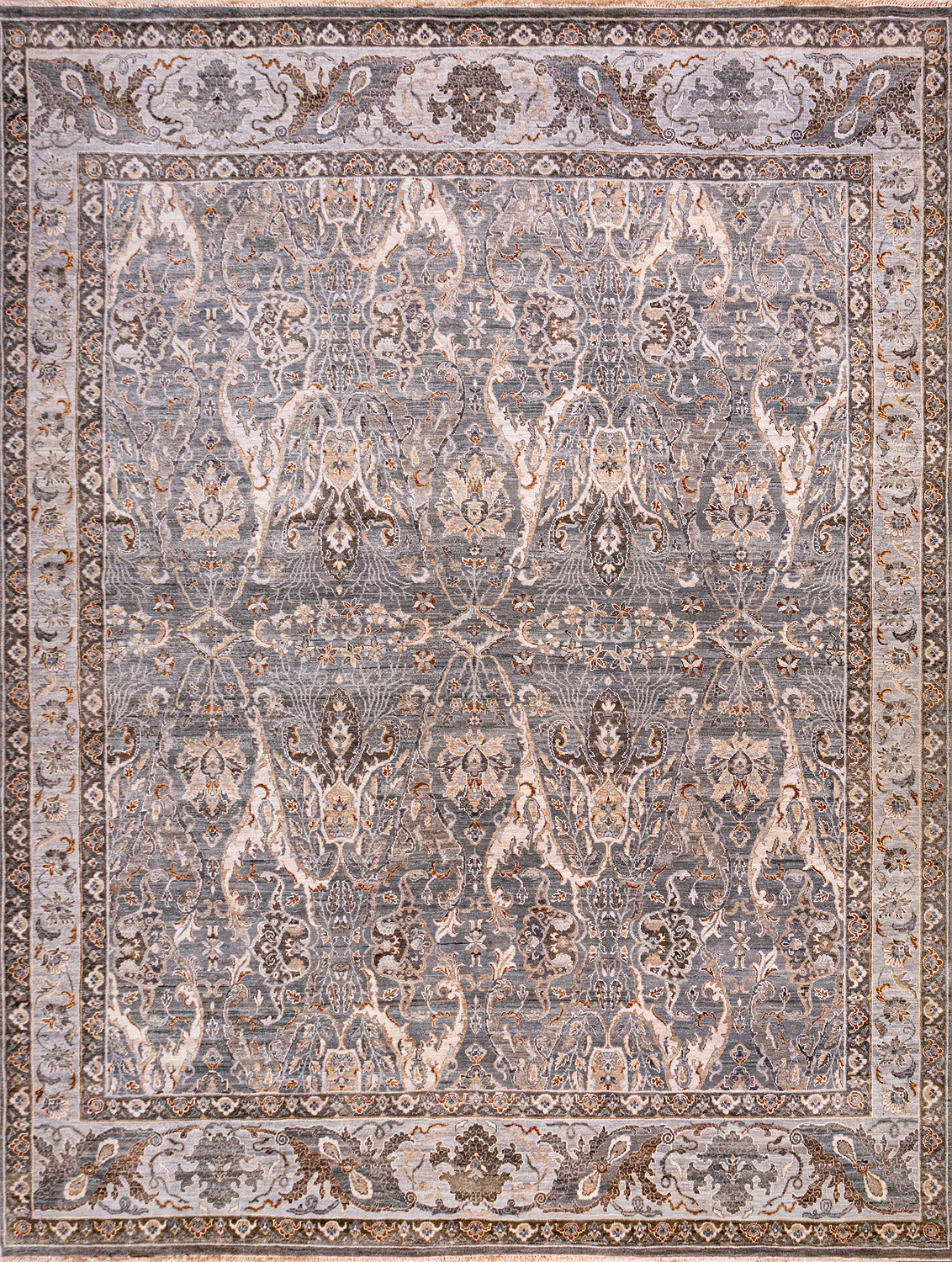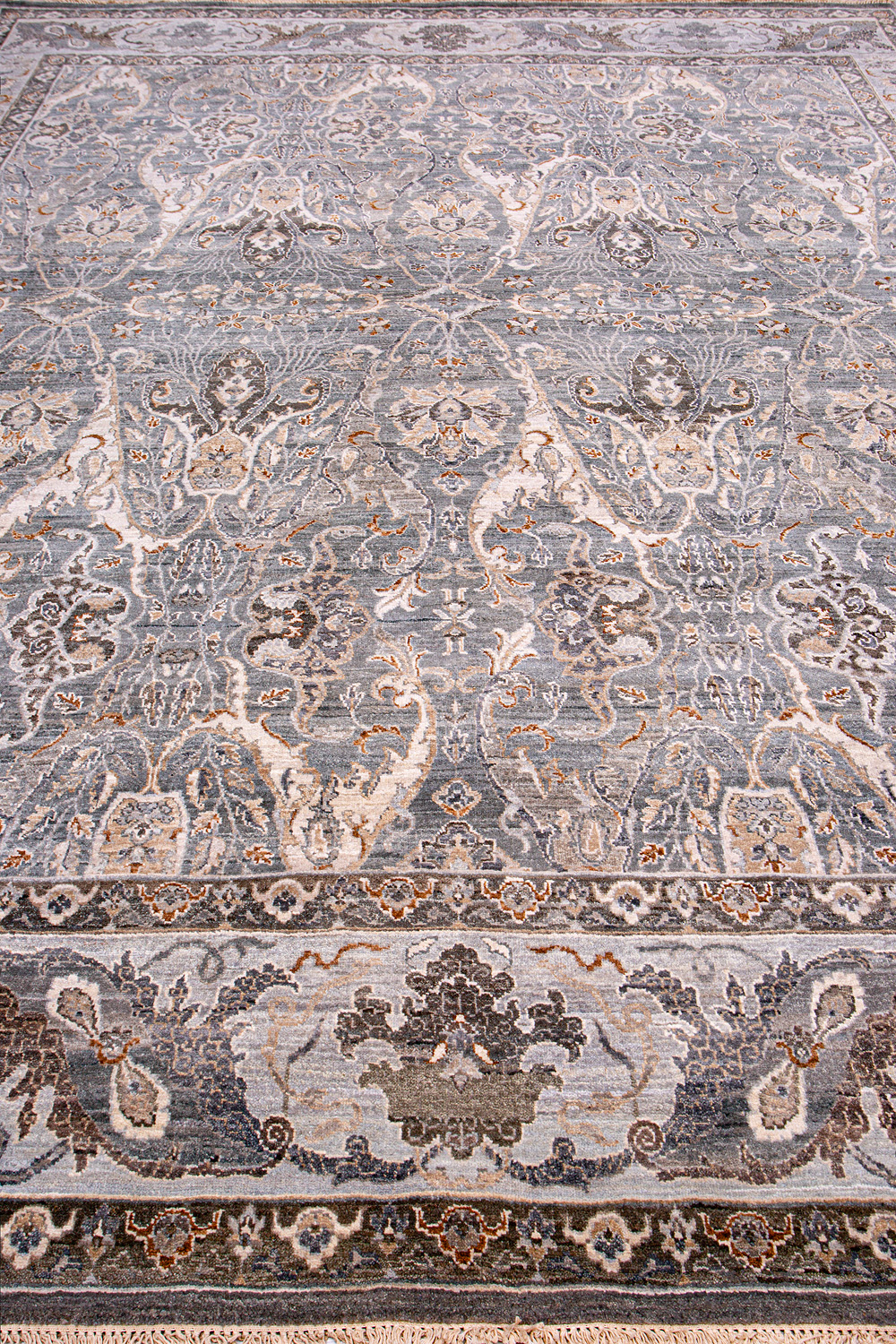 Более пяти веков назад в городе Агра зародилась знаменитая индийская школа ковроткачества, прославившаяся не меньше, чем расположенный здесь же Тадж-Махал. Мощное персидское влияние, помноженное на местный колорит, привело к появлению оригинальных орнаментов с богатыми растительными узорами — причудливым цветам, ветвям и листьям, разбросанным по всему полю ковра.