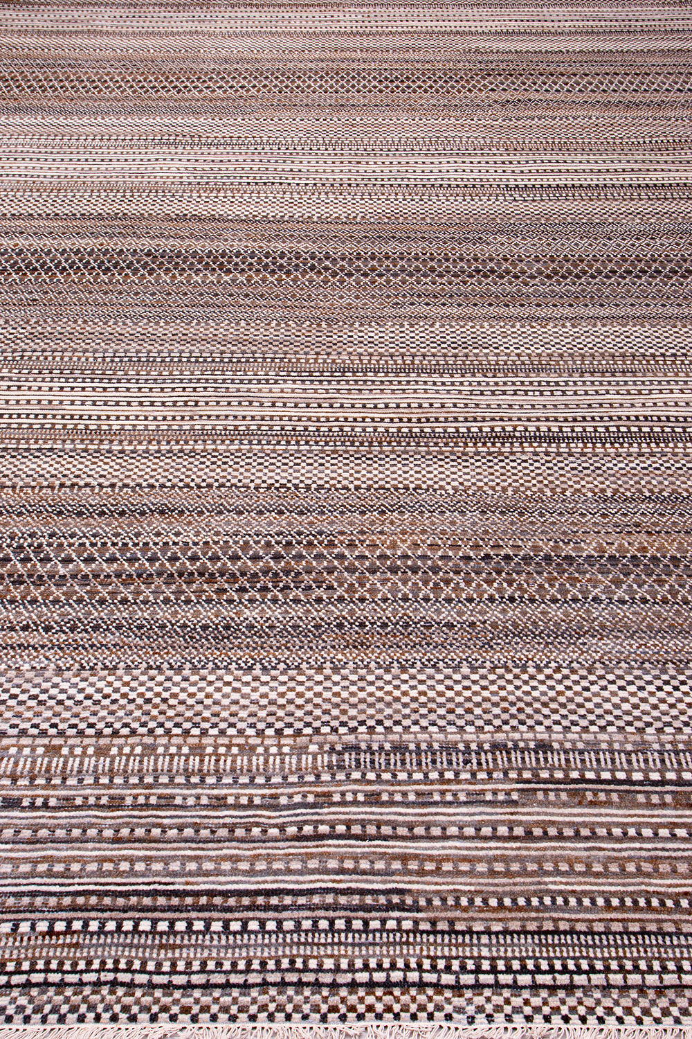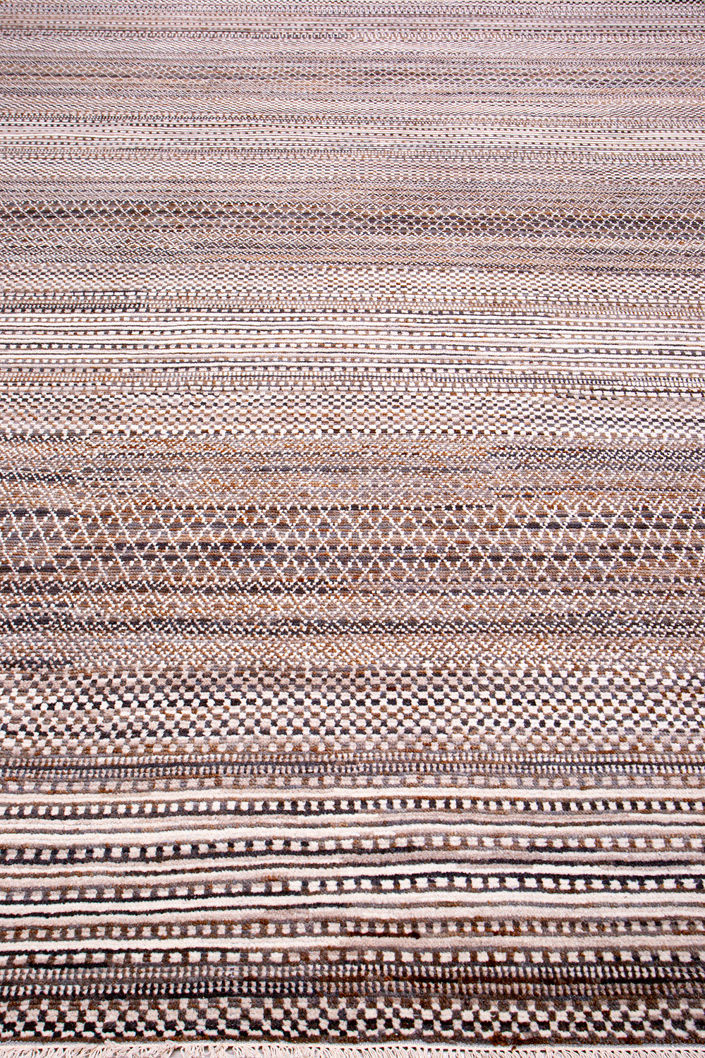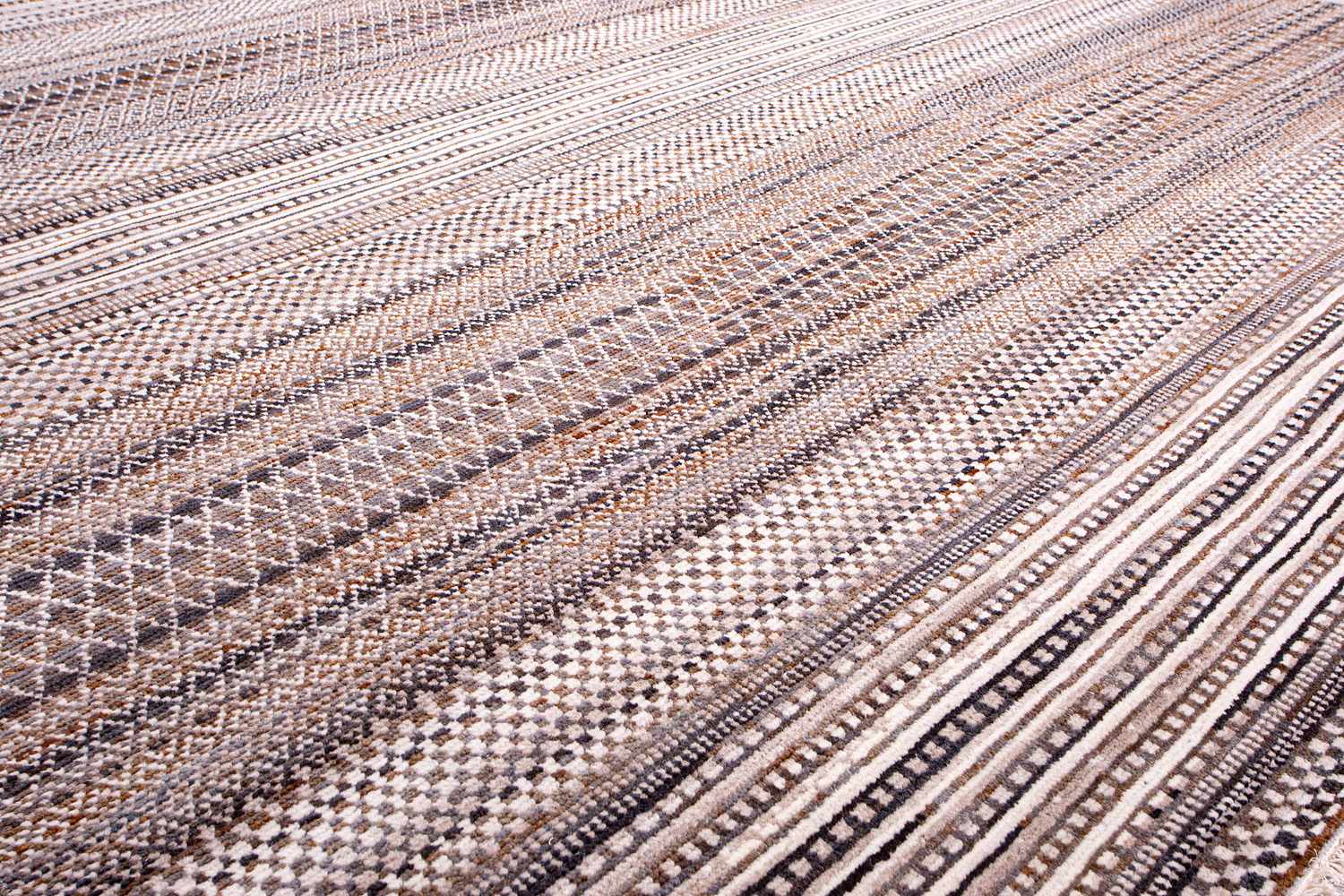 Дизайн ковров напоминает современные полотна художников-абстракционистов и производит столь же яркое и незабываемое впечатление в интерьере. Живописный эффект и необычная фактура зависят от выбора материала: натуральной шерсти, шёлка и от их сочетаний друг с другом. Ковры ткутся вручную в лучших мастерских Индии и Пакистана.