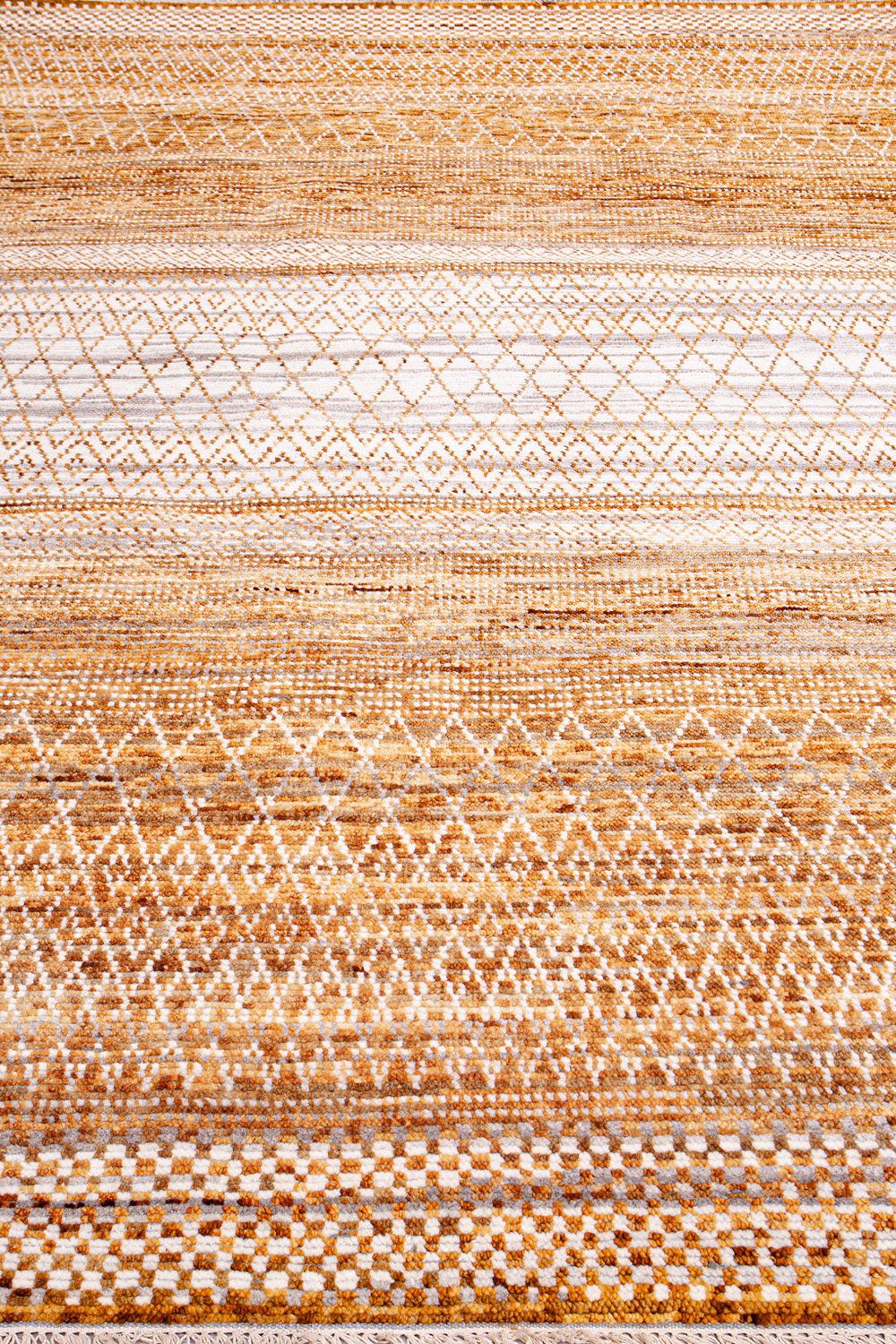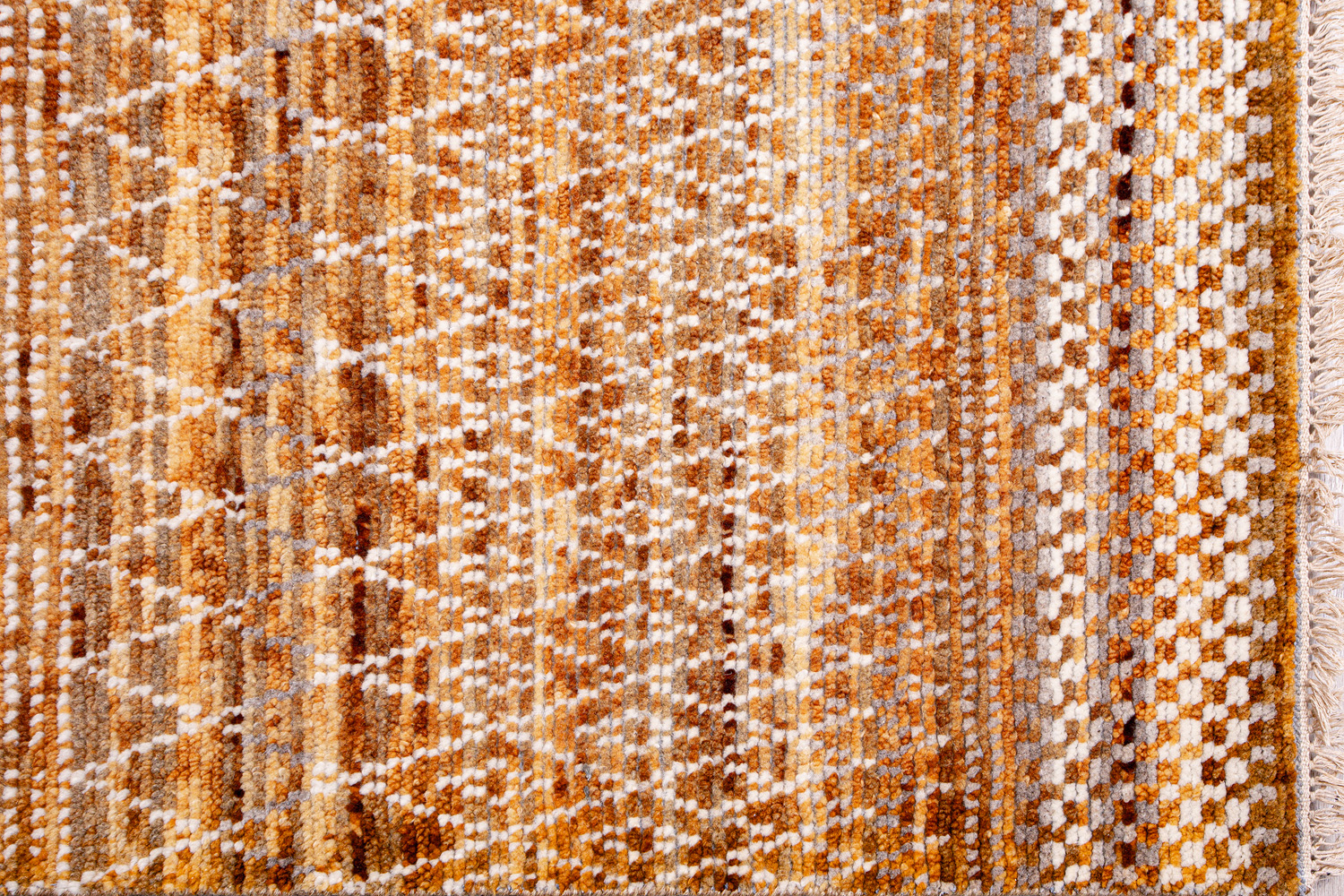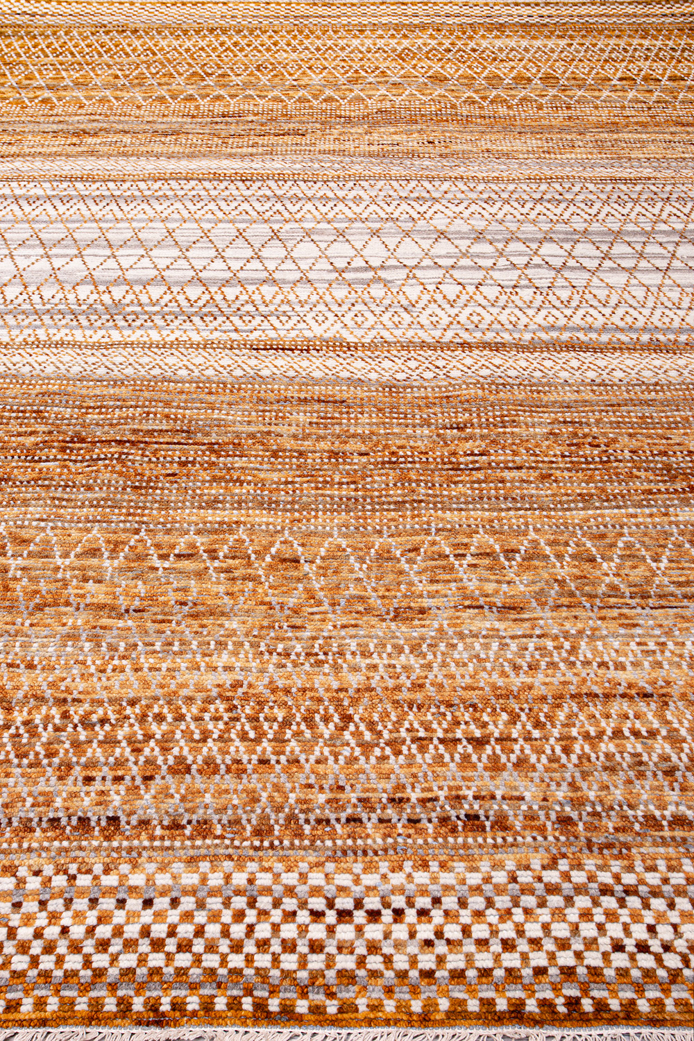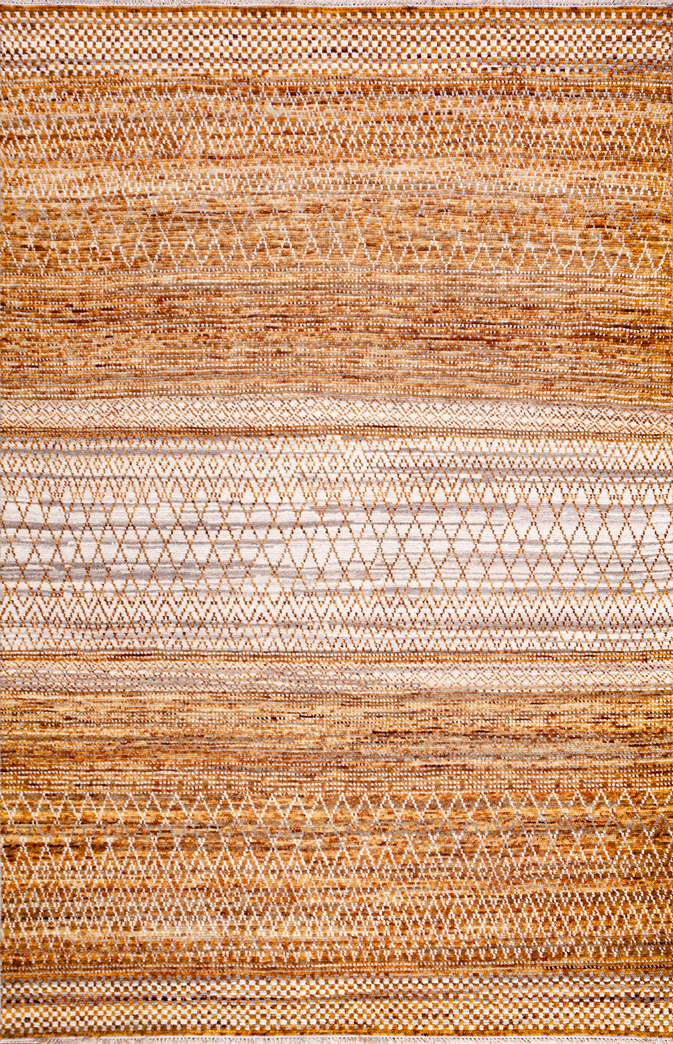 Дизайн ковров напоминает современные полотна художников-абстракционистов и производит столь же яркое и незабываемое впечатление в интерьере. Живописный эффект и необычная фактура зависят от выбора материала: натуральной шерсти, шёлка и от их сочетаний друг с другом. Ковры ткутся вручную в лучших мастерских Индии и Пакистана.