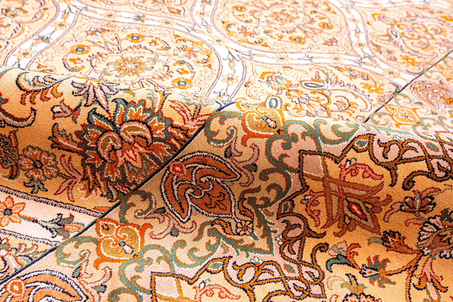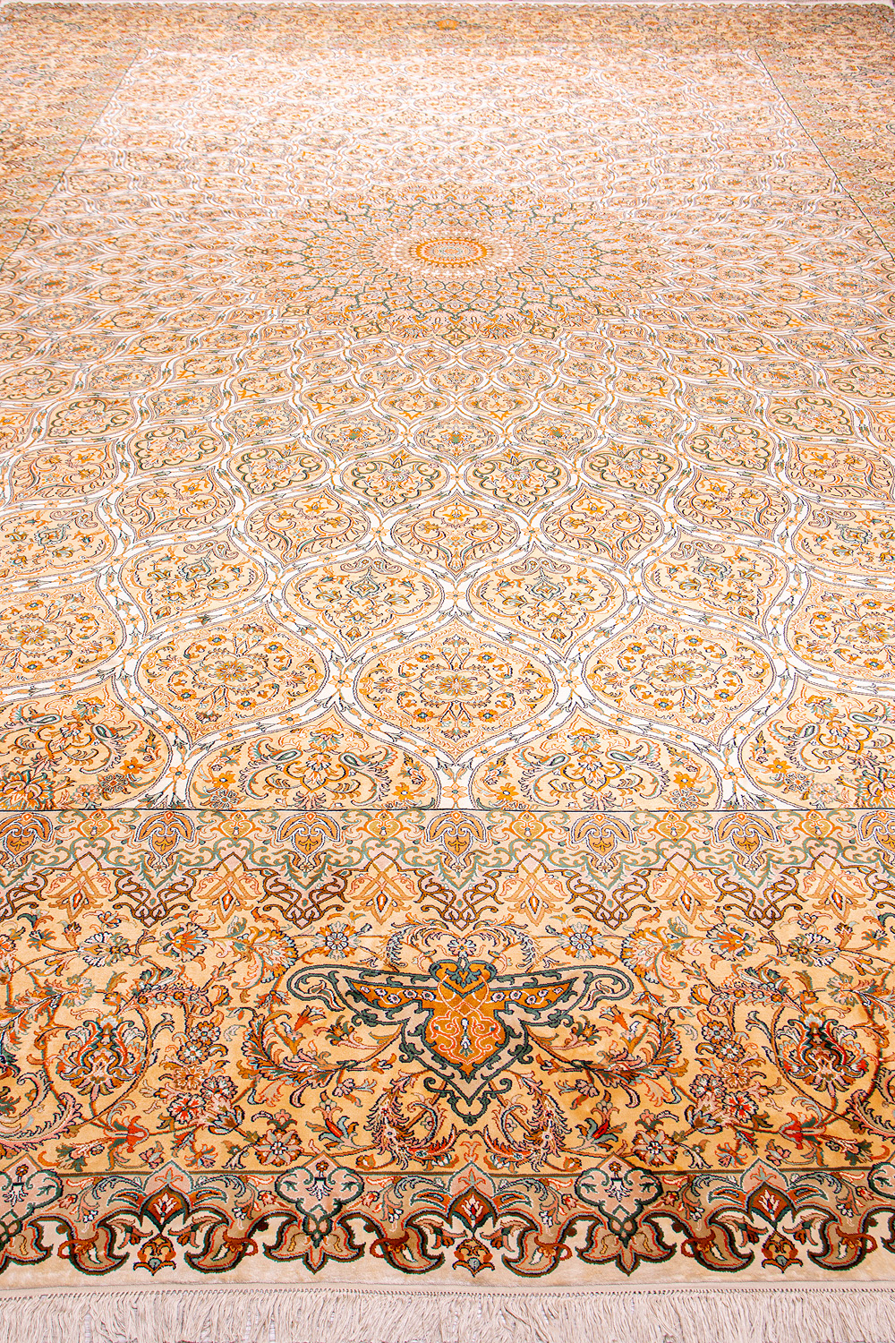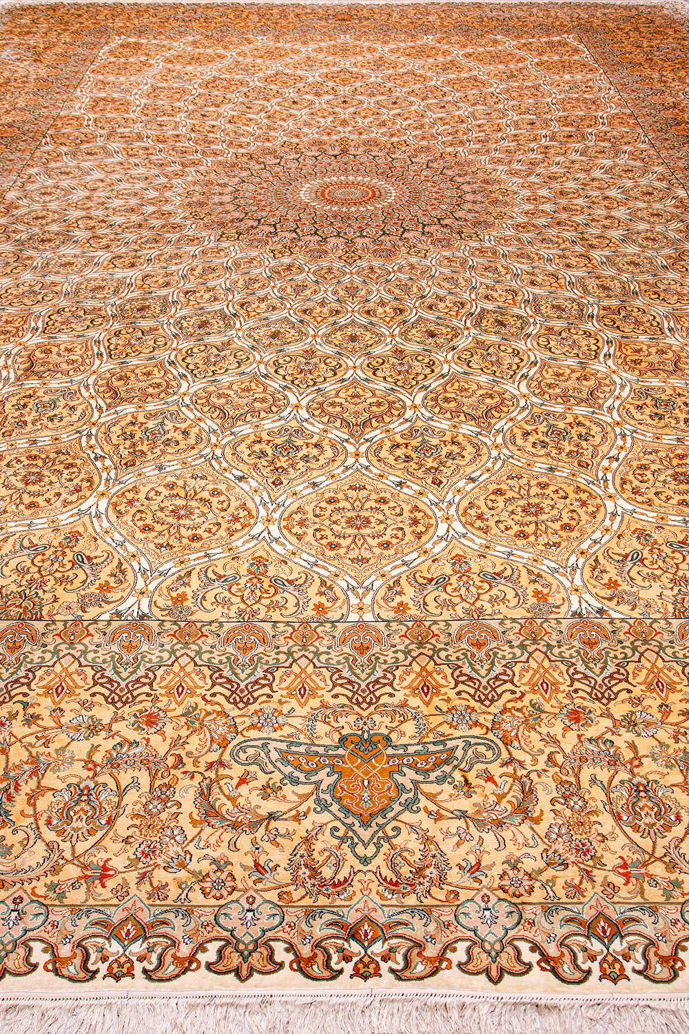 Ковры из коллекции Кашмир ткутся по традиционной технологии из нежнейшего кашмирского шелка. Лучшие произведения индийских мастеров отличает высокая узелковая плотность, прочность и яркость цветов.