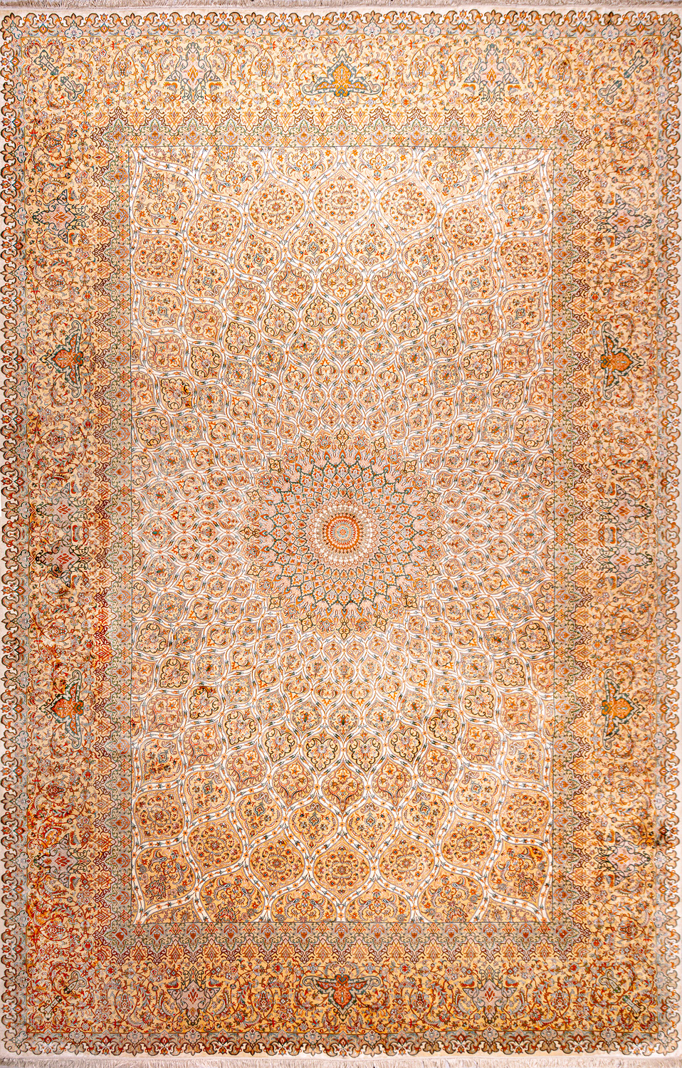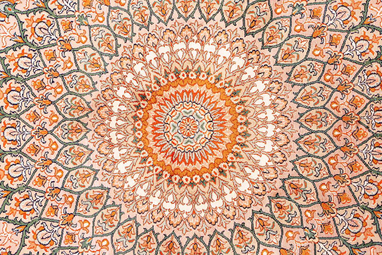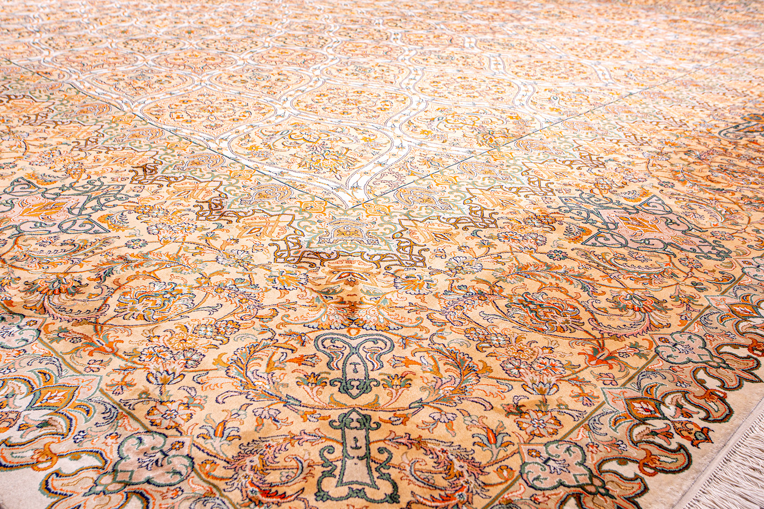 Ковры из коллекции Кашмир ткутся по традиционной технологии из нежнейшего кашмирского шелка. Лучшие произведения индийских мастеров отличает высокая узелковая плотность, прочность и яркость цветов.