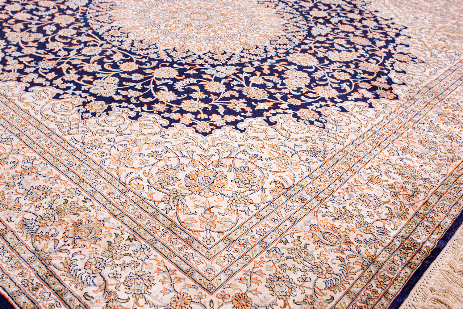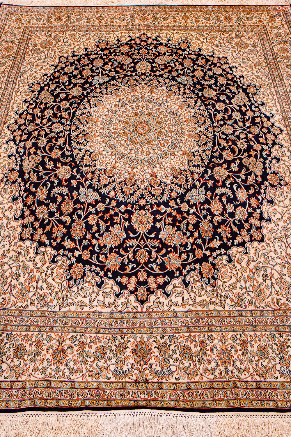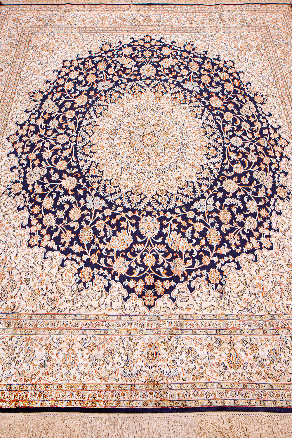 Ковры из коллекции Кашмир ткутся по традиционной технологии из нежнейшего кашмирского шелка. Лучшие произведения индийских мастеров отличает высокая узелковая плотность, прочность и яркость цветов.