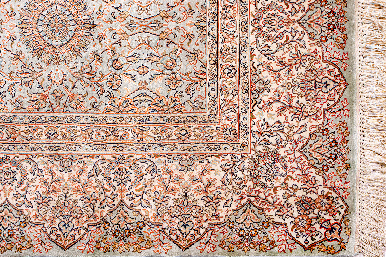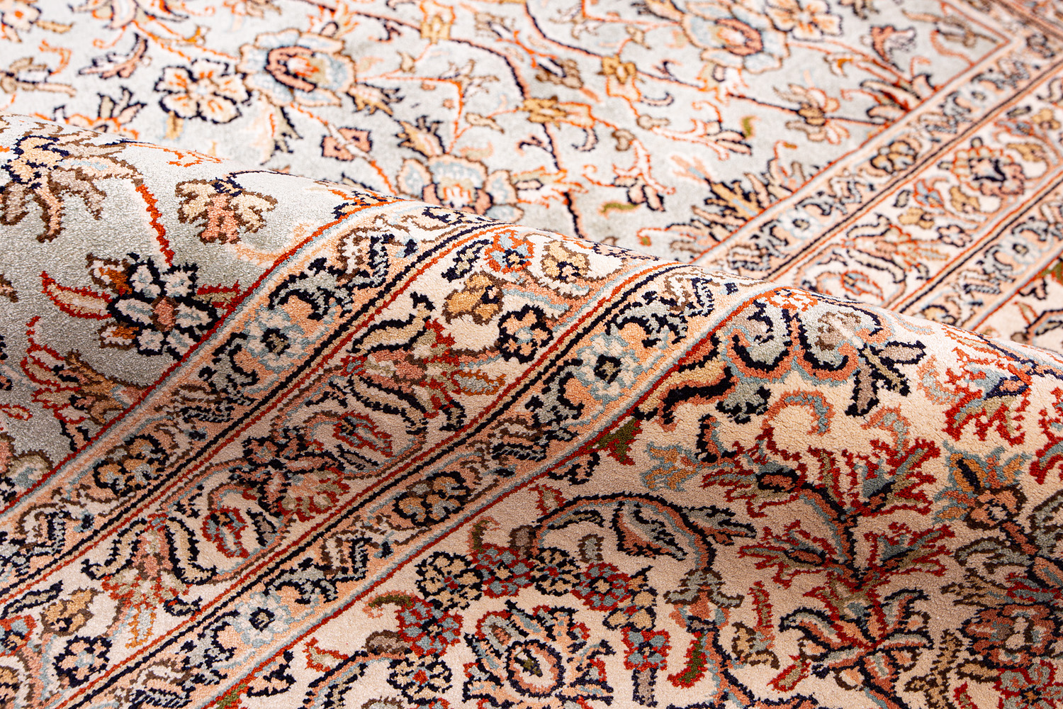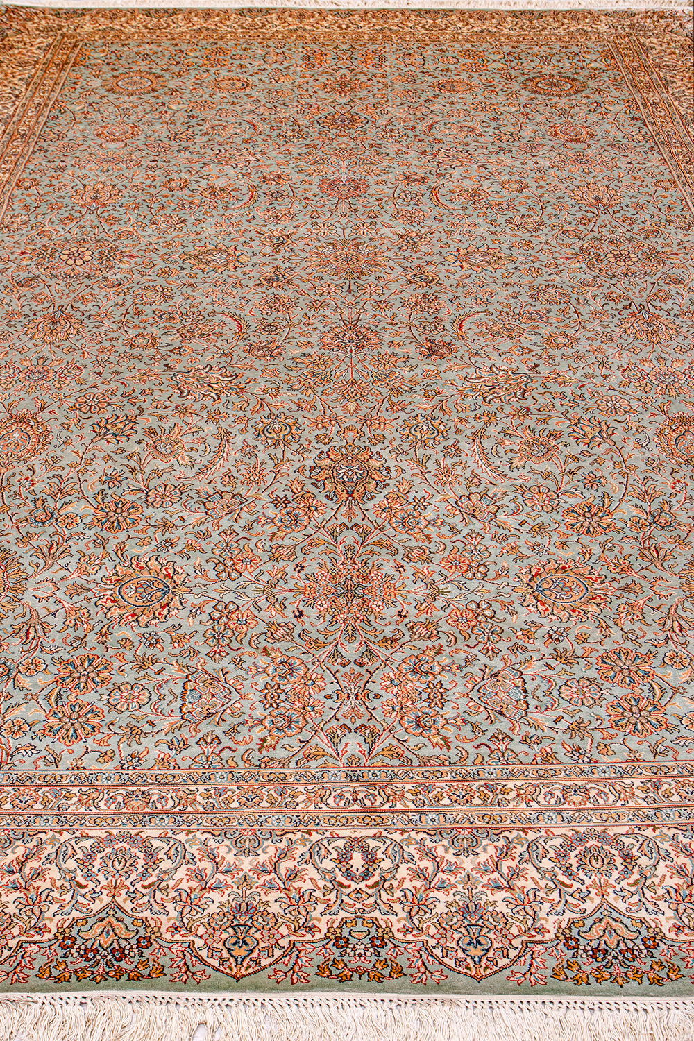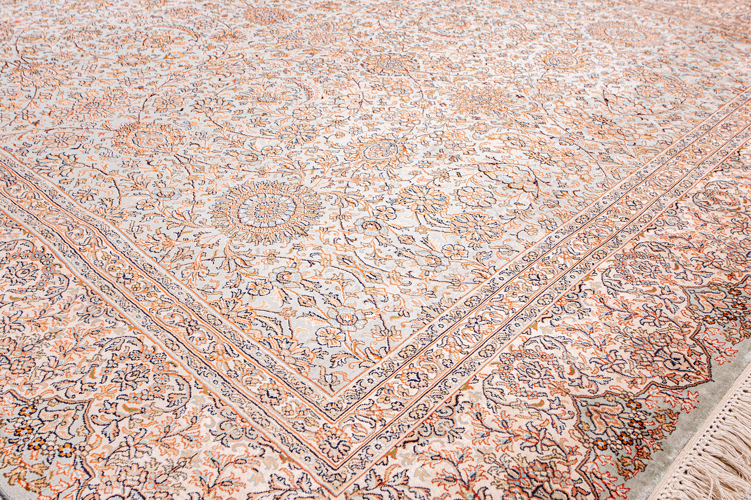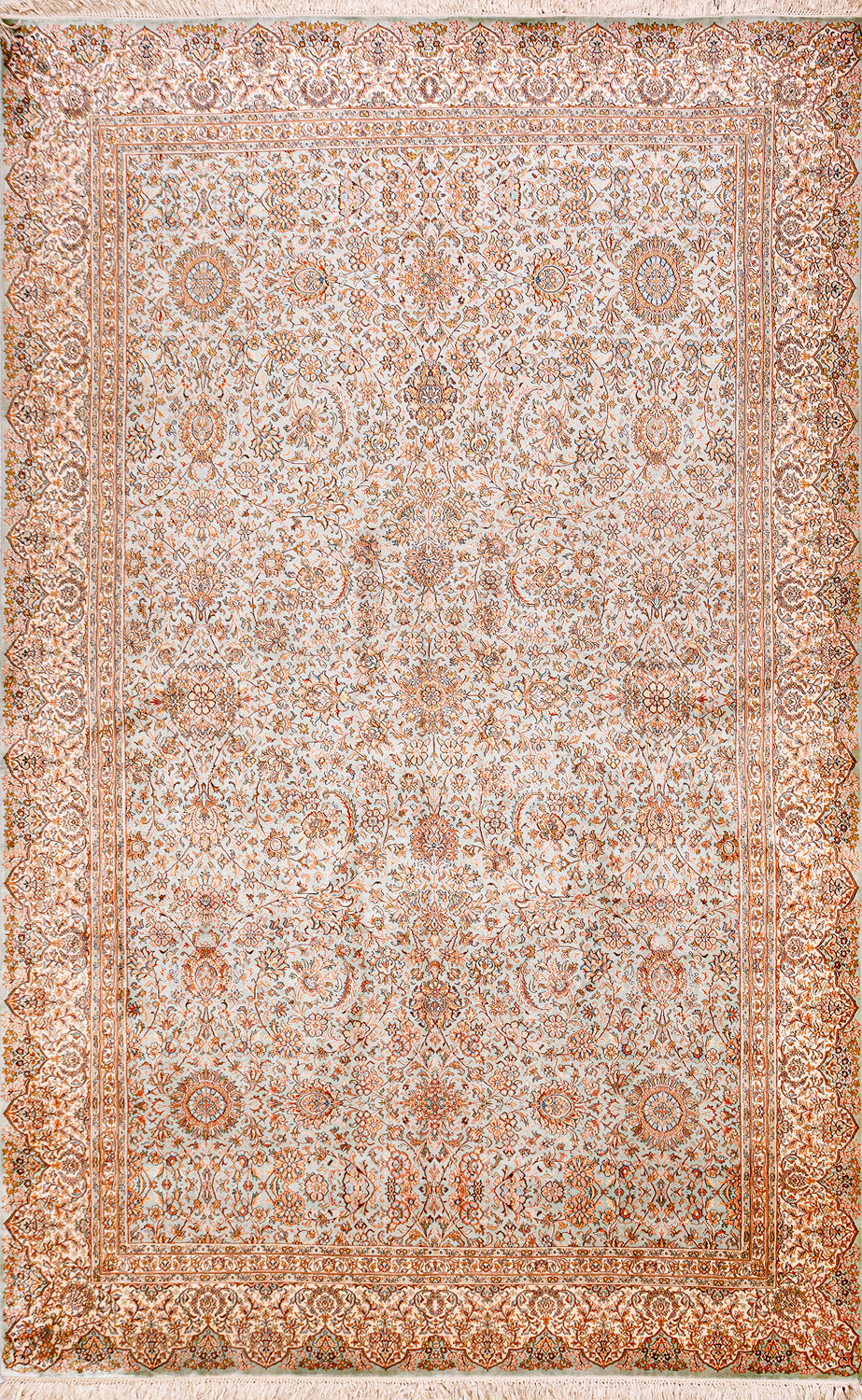 Ковры из коллекции Кашмир ткутся по традиционной технологии из нежнейшего кашмирского шелка. Лучшие произведения индийских мастеров отличает высокая узелковая плотность, прочность и яркость цветов.