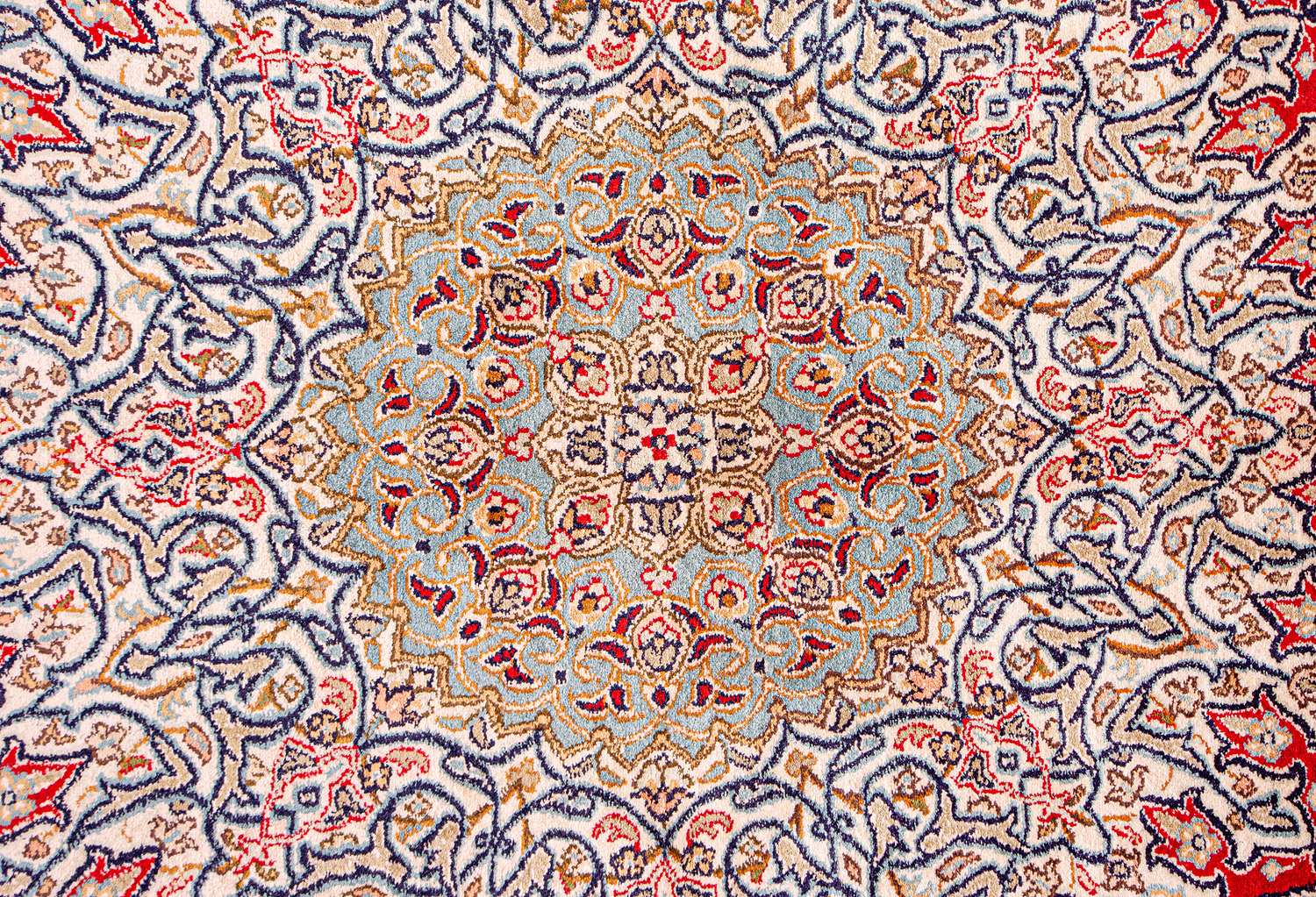 Гармония цвета и изображения придаёт коврам из коллекции Кашмир классическую выразительность, а шёлк в составе — яркие переливы блеска.