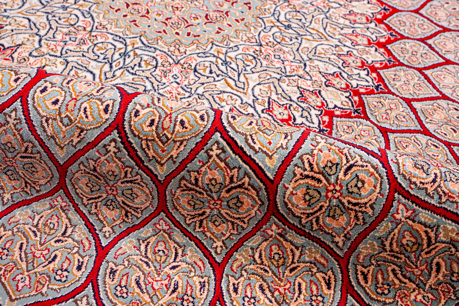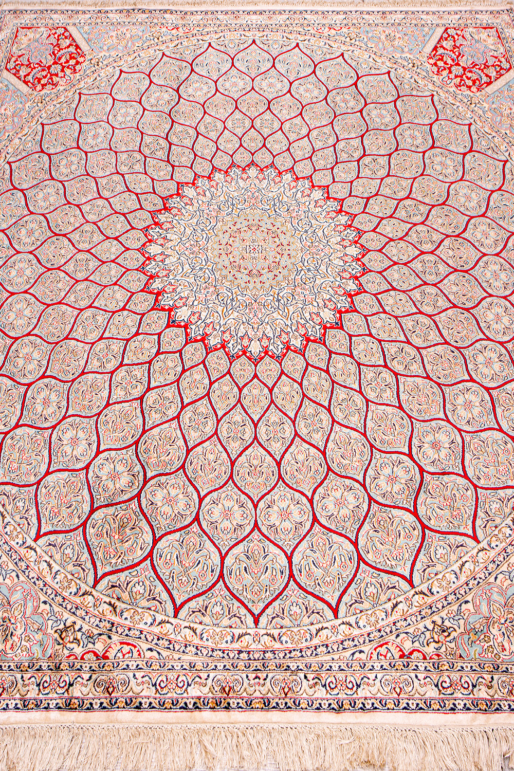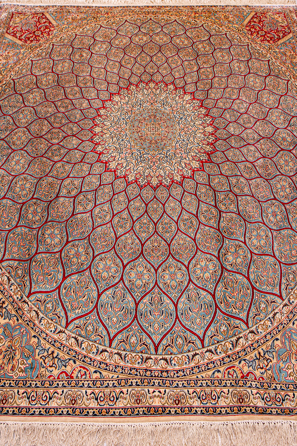 Ковры из коллекции Кашмир ткутся по традиционной технологии из нежнейшего кашмирского шелка. Лучшие произведения индийских мастеров отличает высокая узелковая плотность, прочность и яркость цветов.