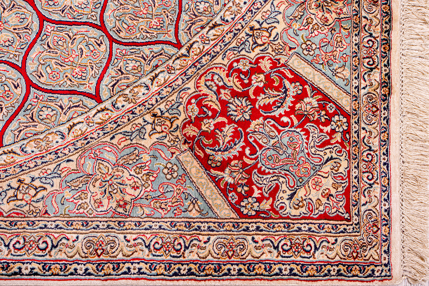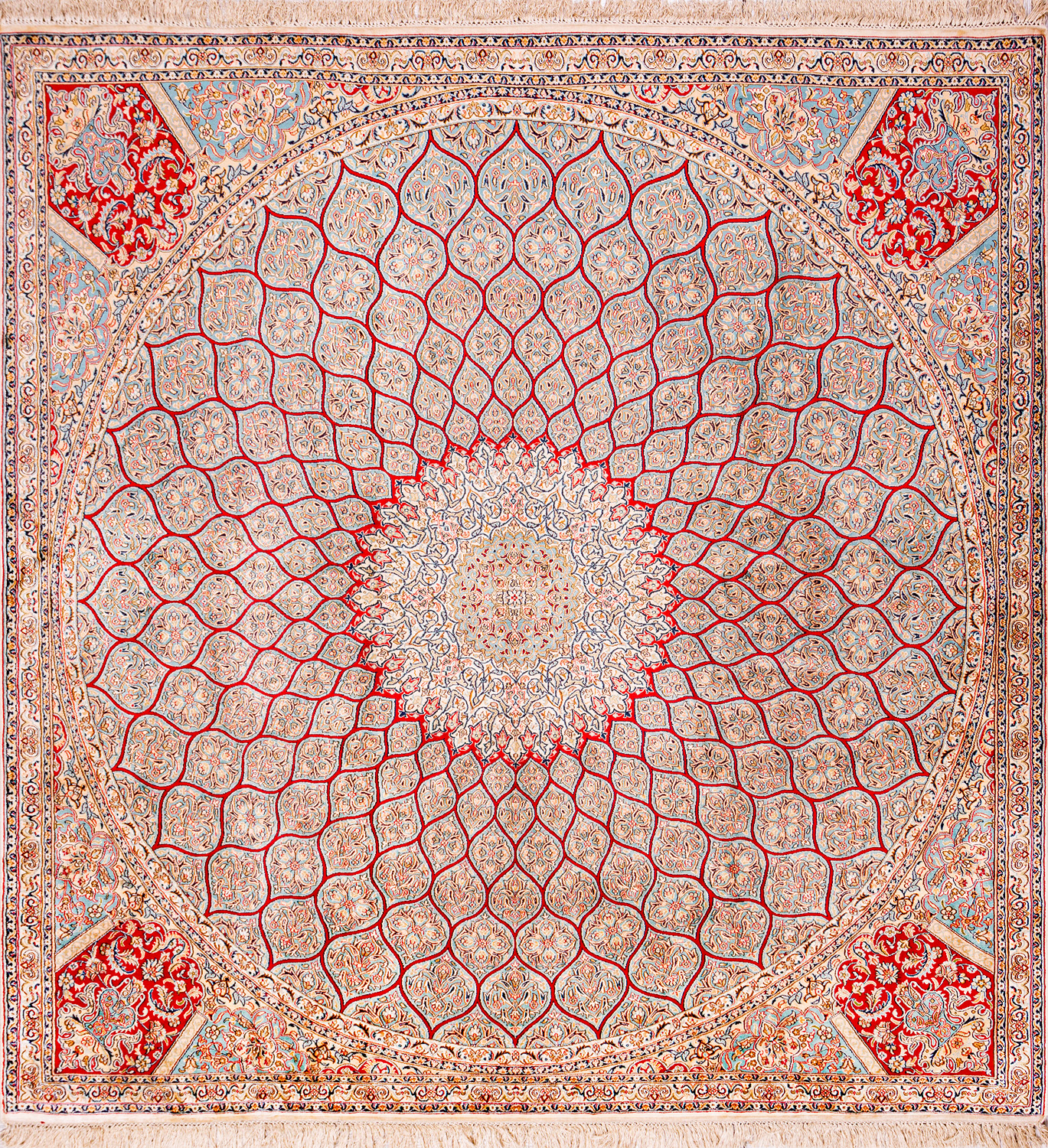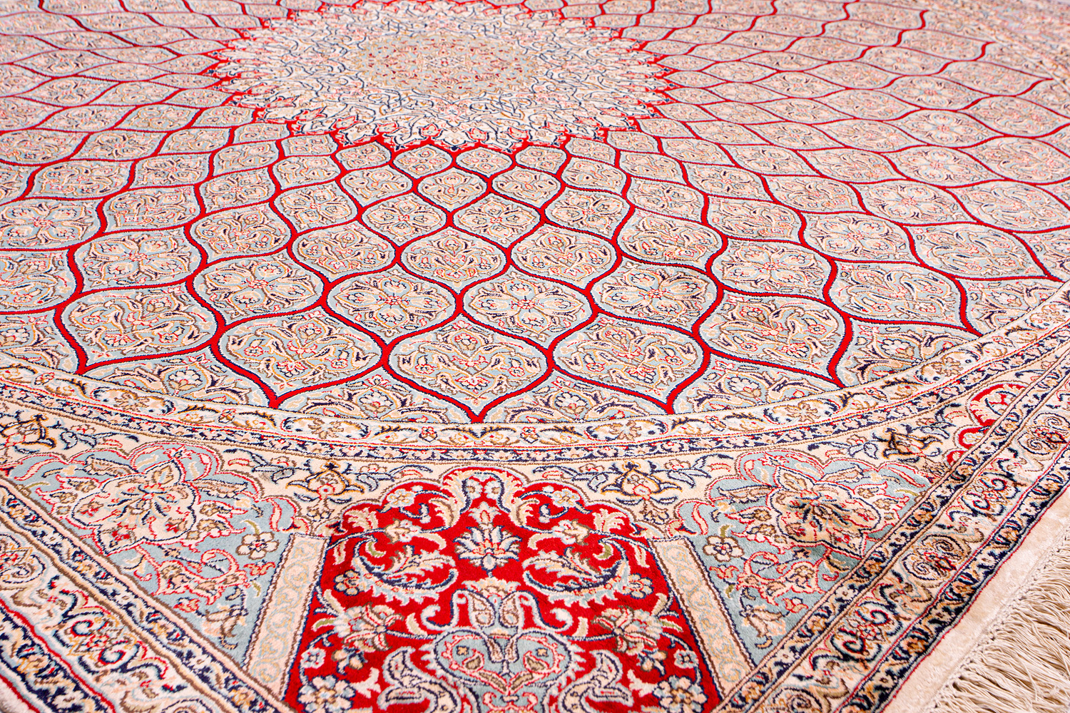 Ковры из коллекции Кашмир ткутся по традиционной технологии из нежнейшего кашмирского шелка. Лучшие произведения индийских мастеров отличает высокая узелковая плотность, прочность и яркость цветов.