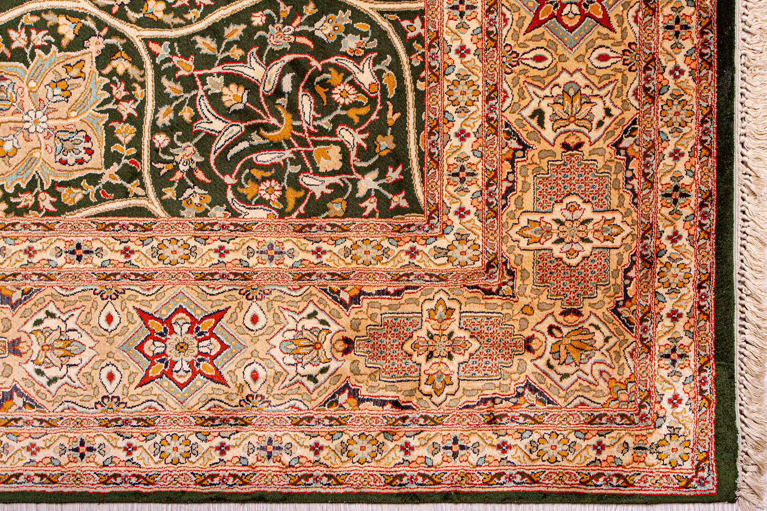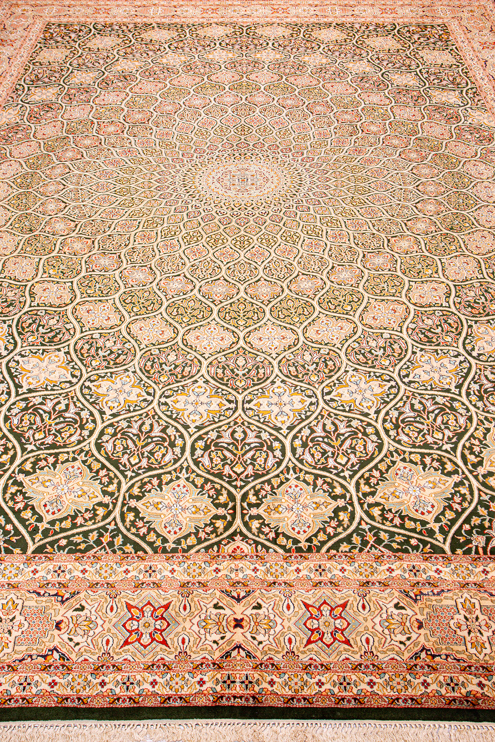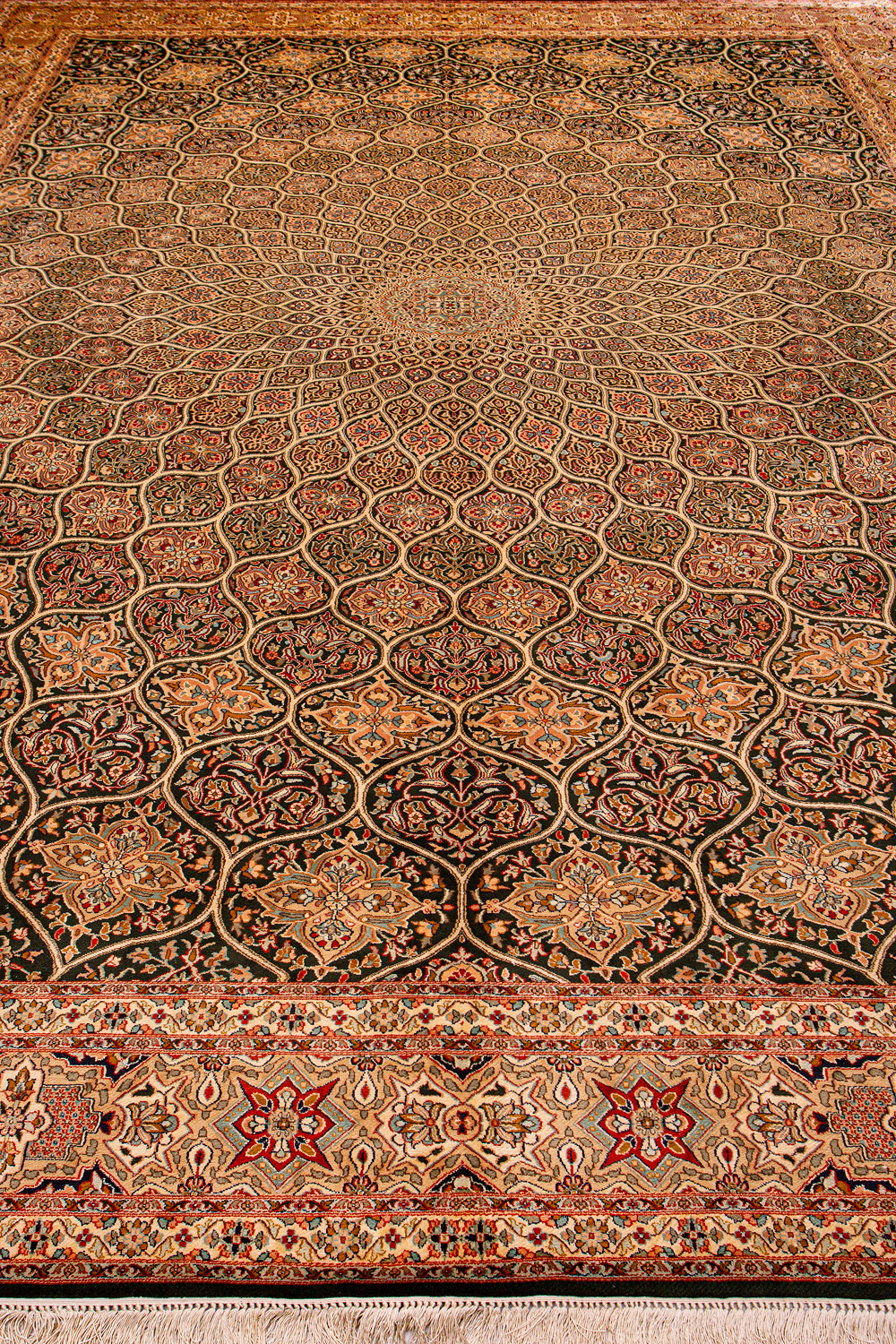 Ковры из коллекции Кашмир ткутся по традиционной технологии из нежнейшего кашмирского шелка. Лучшие произведения индийских мастеров отличает высокая узелковая плотность, прочность и яркость цветов.