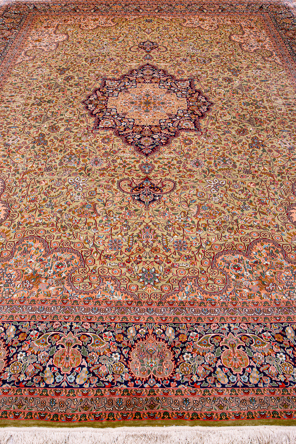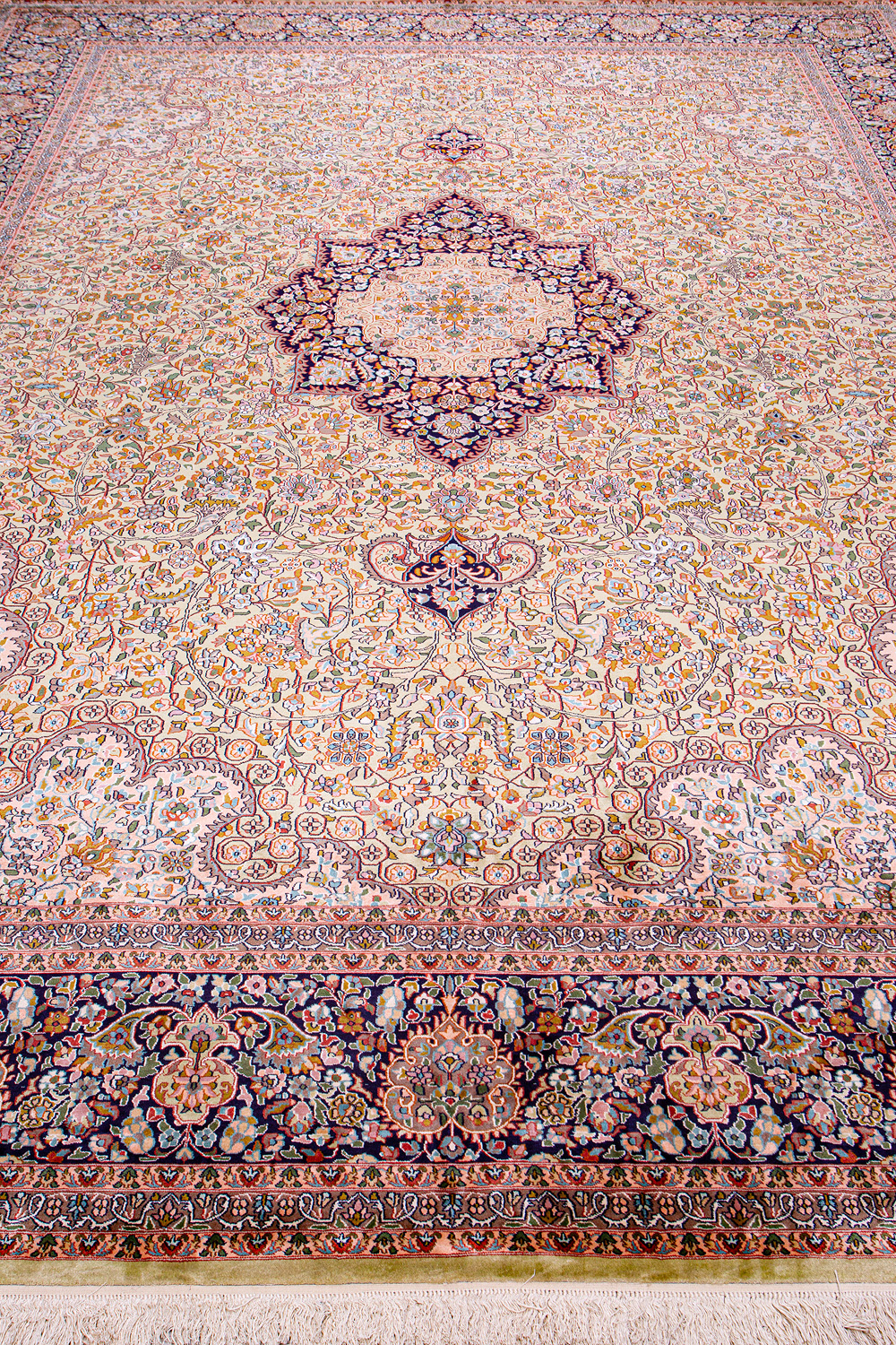 Ковры из коллекции Кашмир ткутся по традиционной технологии из нежнейшего кашмирского шелка. Лучшие произведения индийских мастеров отличает высокая узелковая плотность, прочность и яркость цветов.