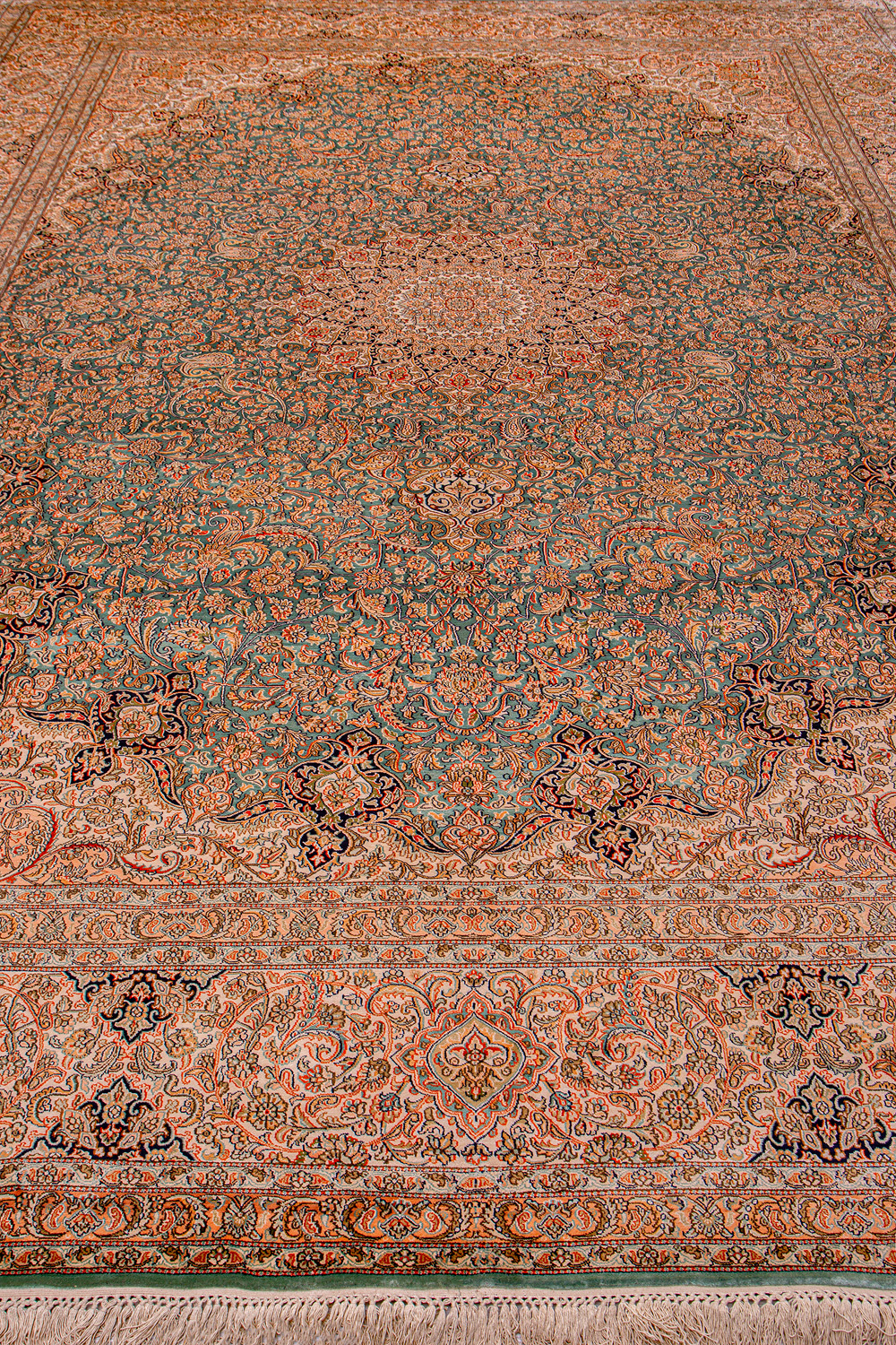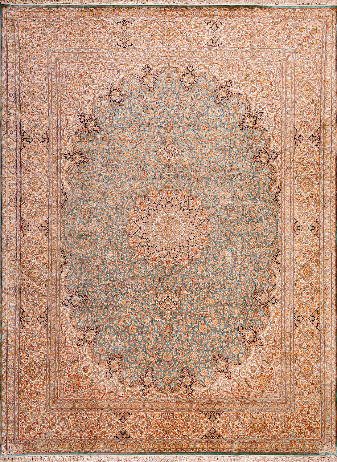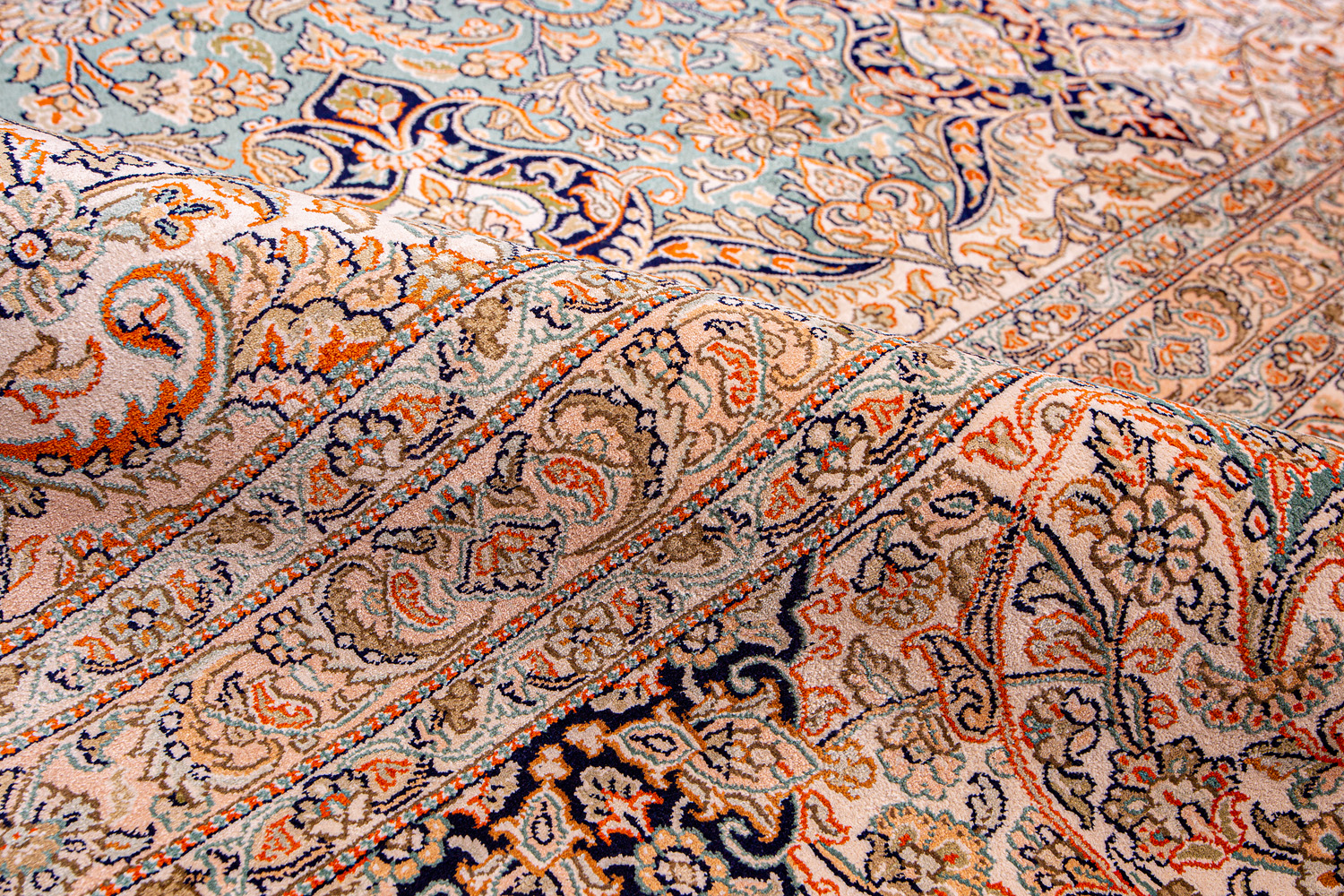 Ковры из коллекции Кашмир ткутся по традиционной технологии из нежнейшего кашмирского шелка. Лучшие произведения индийских мастеров отличает высокая узелковая плотность, прочность и яркость цветов.