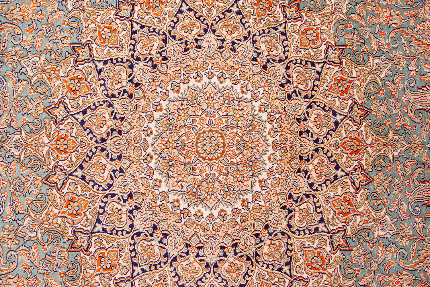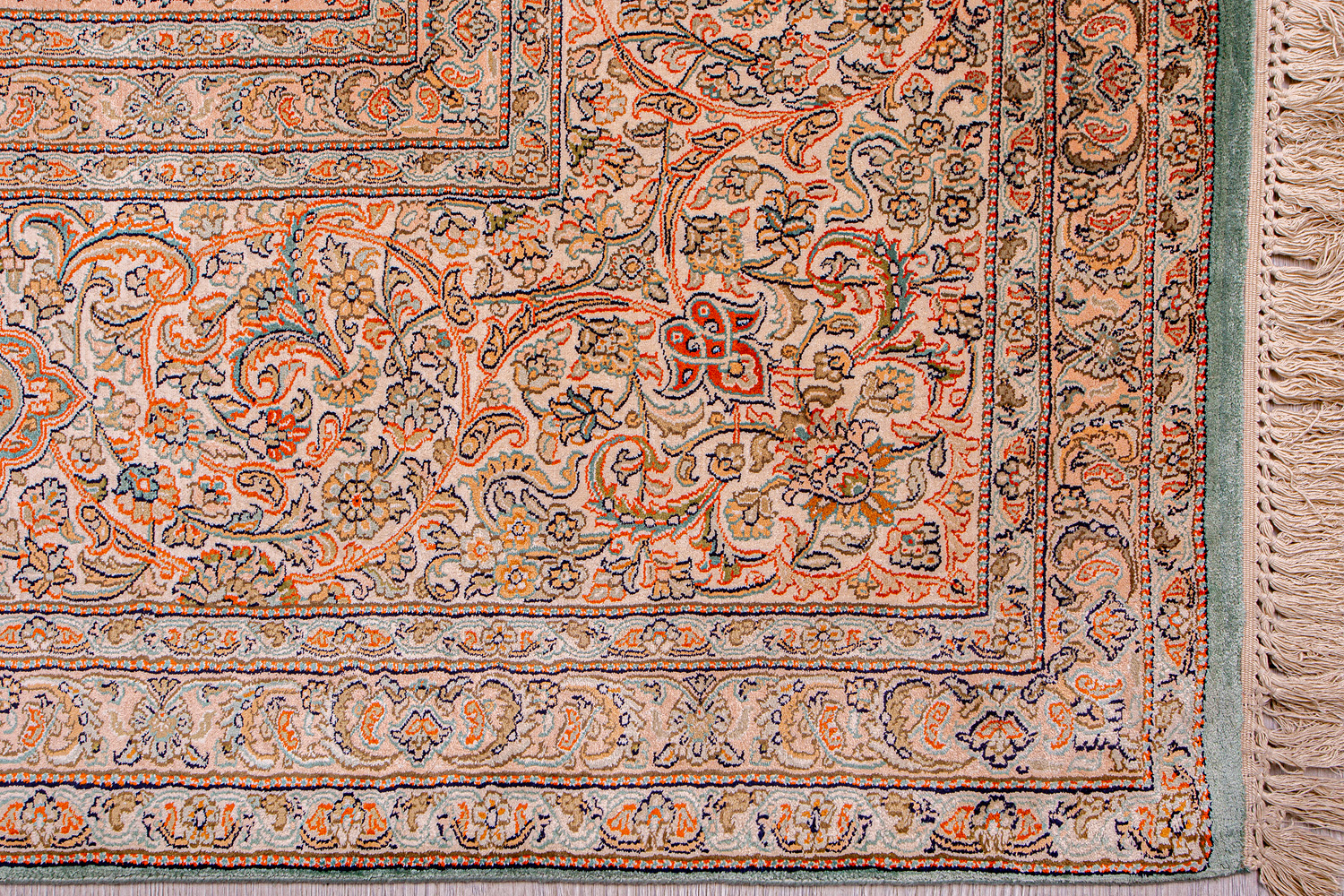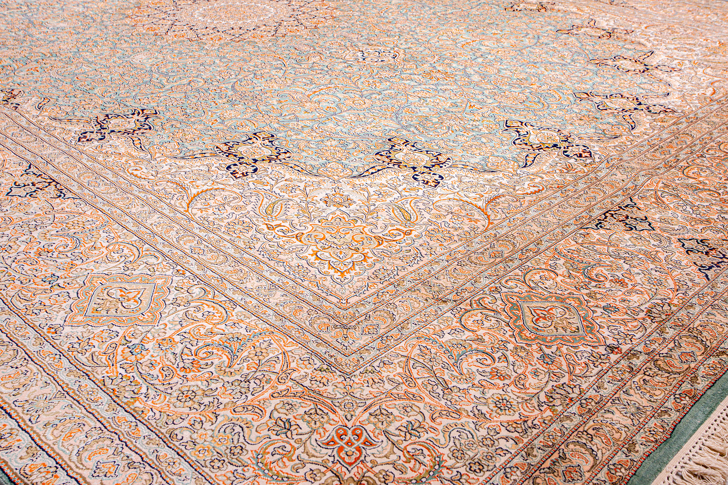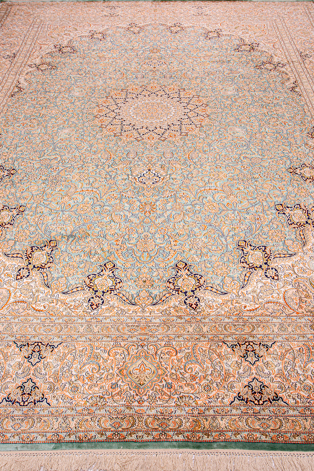 Ковры из коллекции Кашмир ткутся по традиционной технологии из нежнейшего кашмирского шелка. Лучшие произведения индийских мастеров отличает высокая узелковая плотность, прочность и яркость цветов.