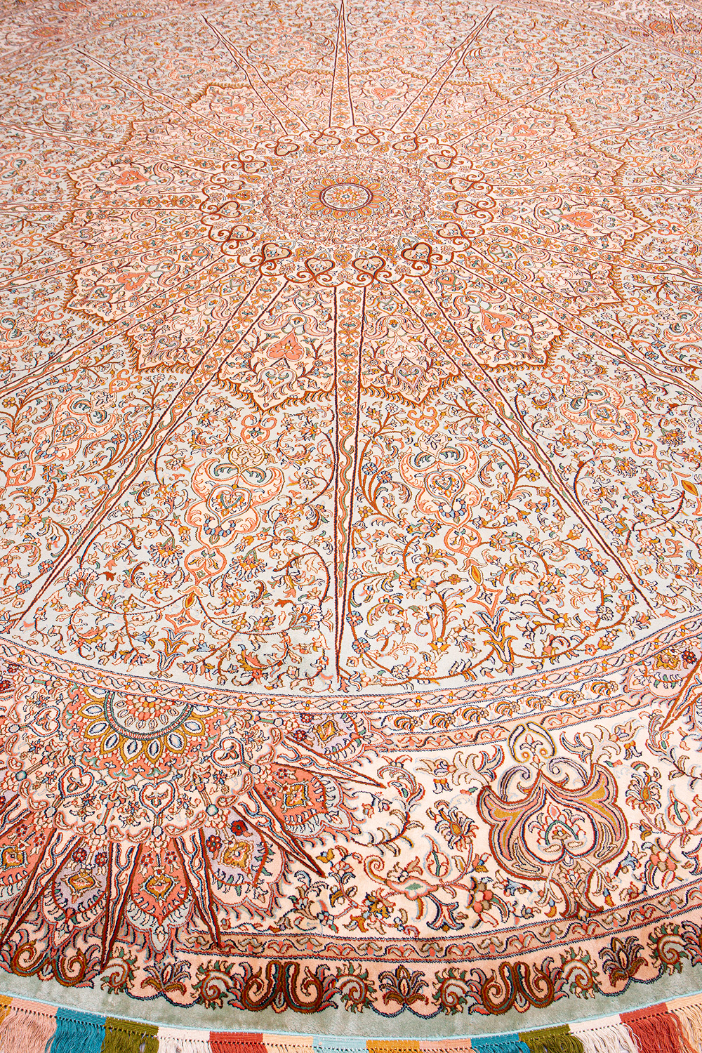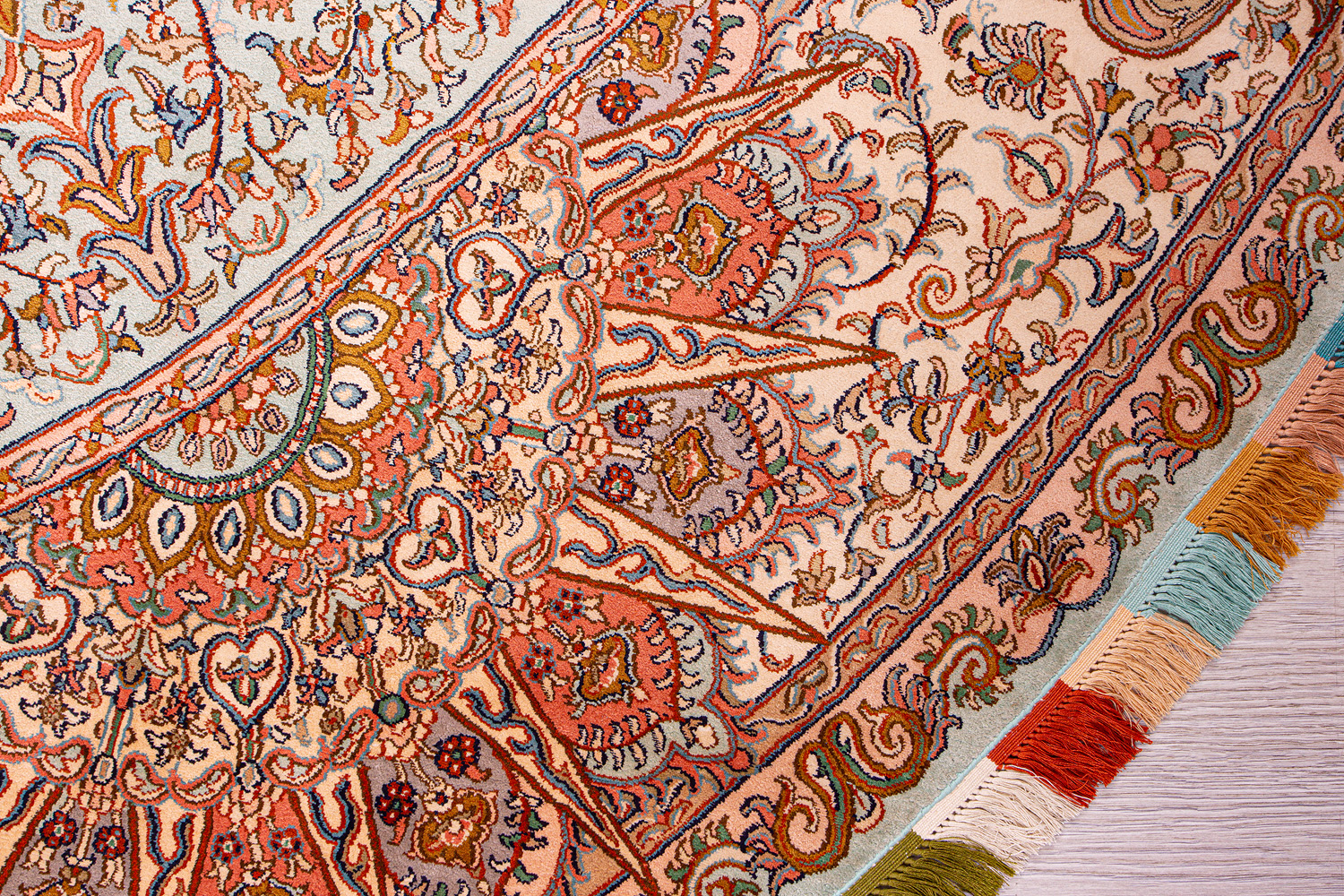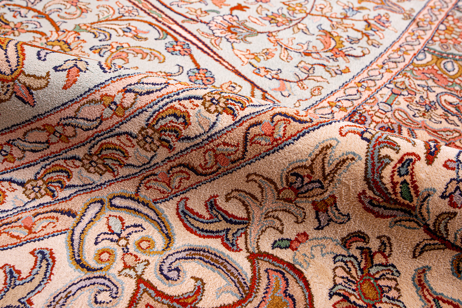 Ковры из коллекции Кашмир ткутся по традиционной технологии из нежнейшего кашмирского шелка. Лучшие произведения индийских мастеров отличает высокая узелковая плотность, прочность и яркость цветов.