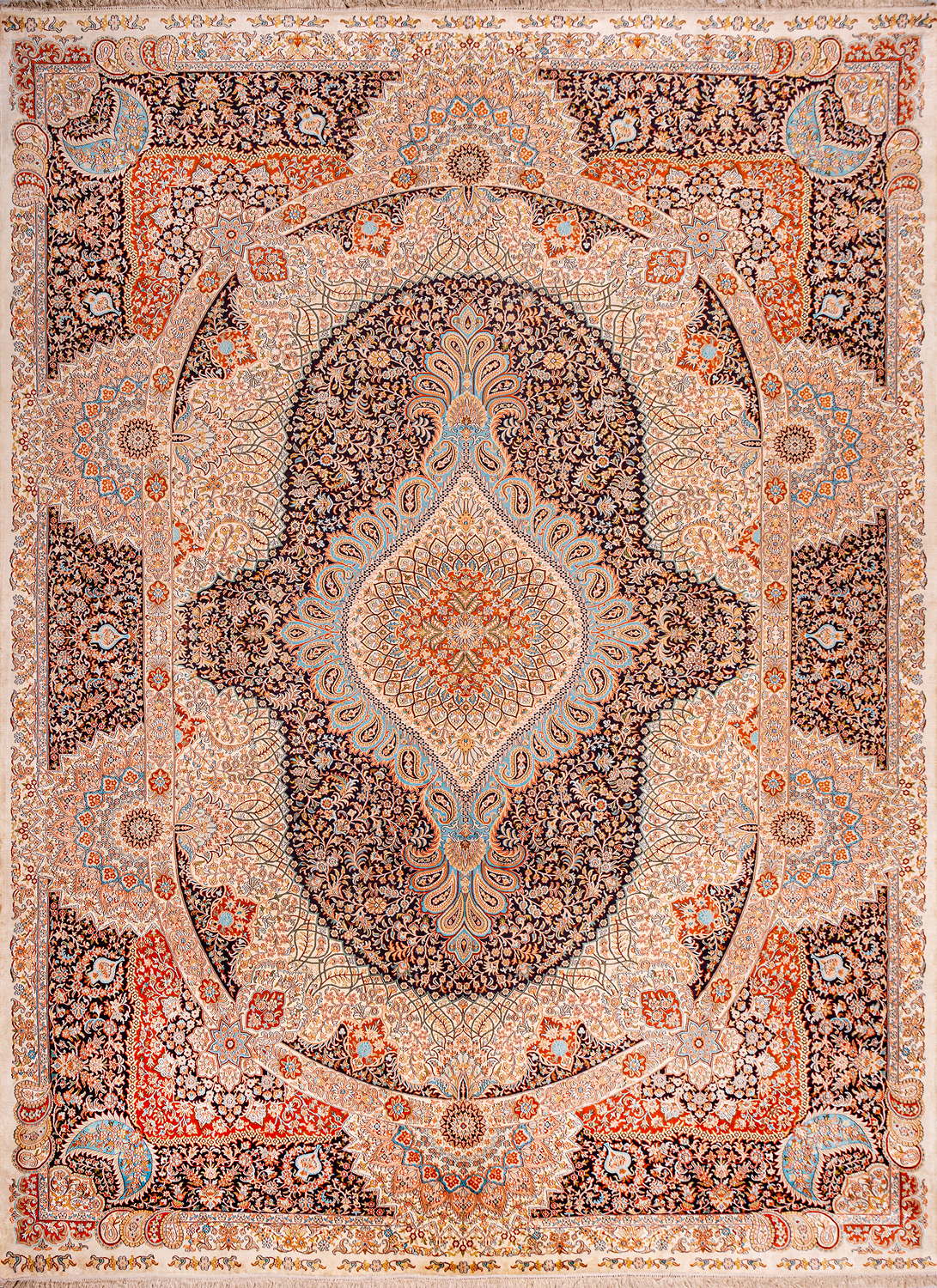 Гармония цвета и изображения придаёт коврам из коллекции Кашмир классическую выразительность, а шёлк в составе — яркие переливы блеска.