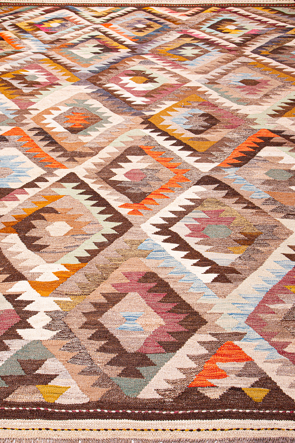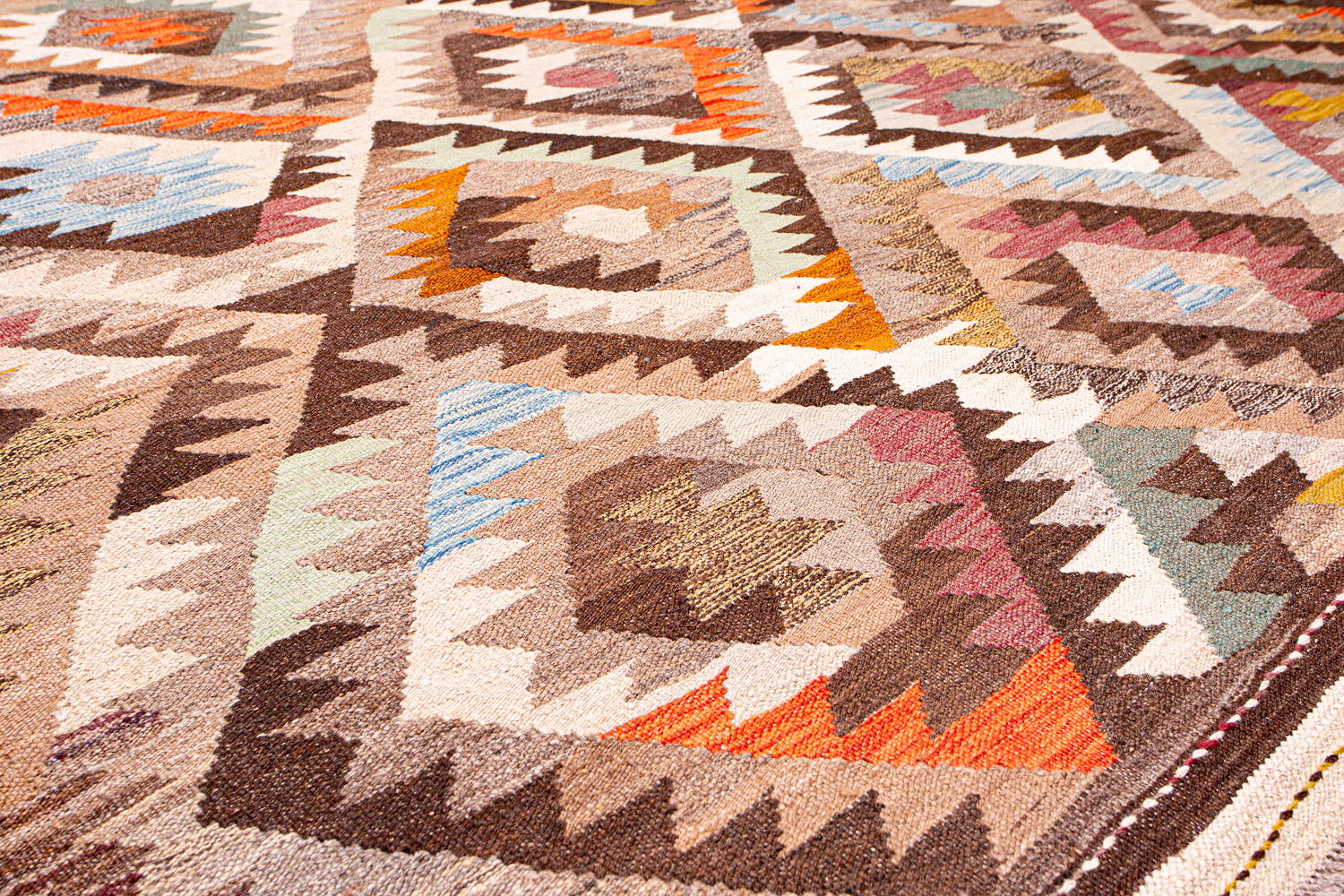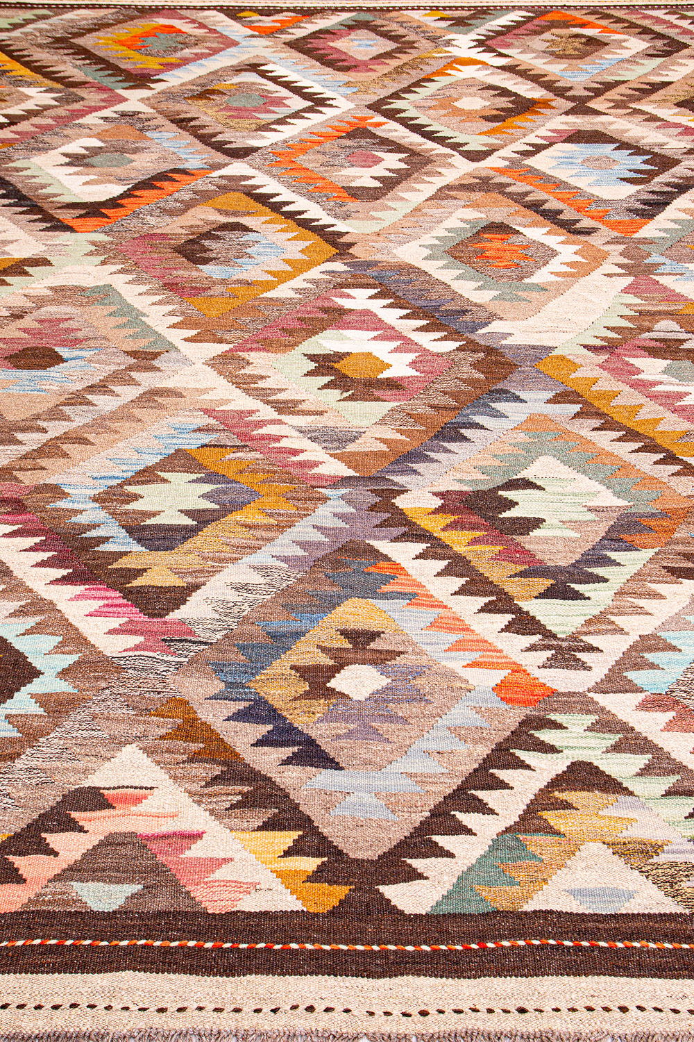 Узор ковров из коллекции Килим создаётся взаимодействием нитей утока и нитей основы, благодаря чему получается геометрический узор.