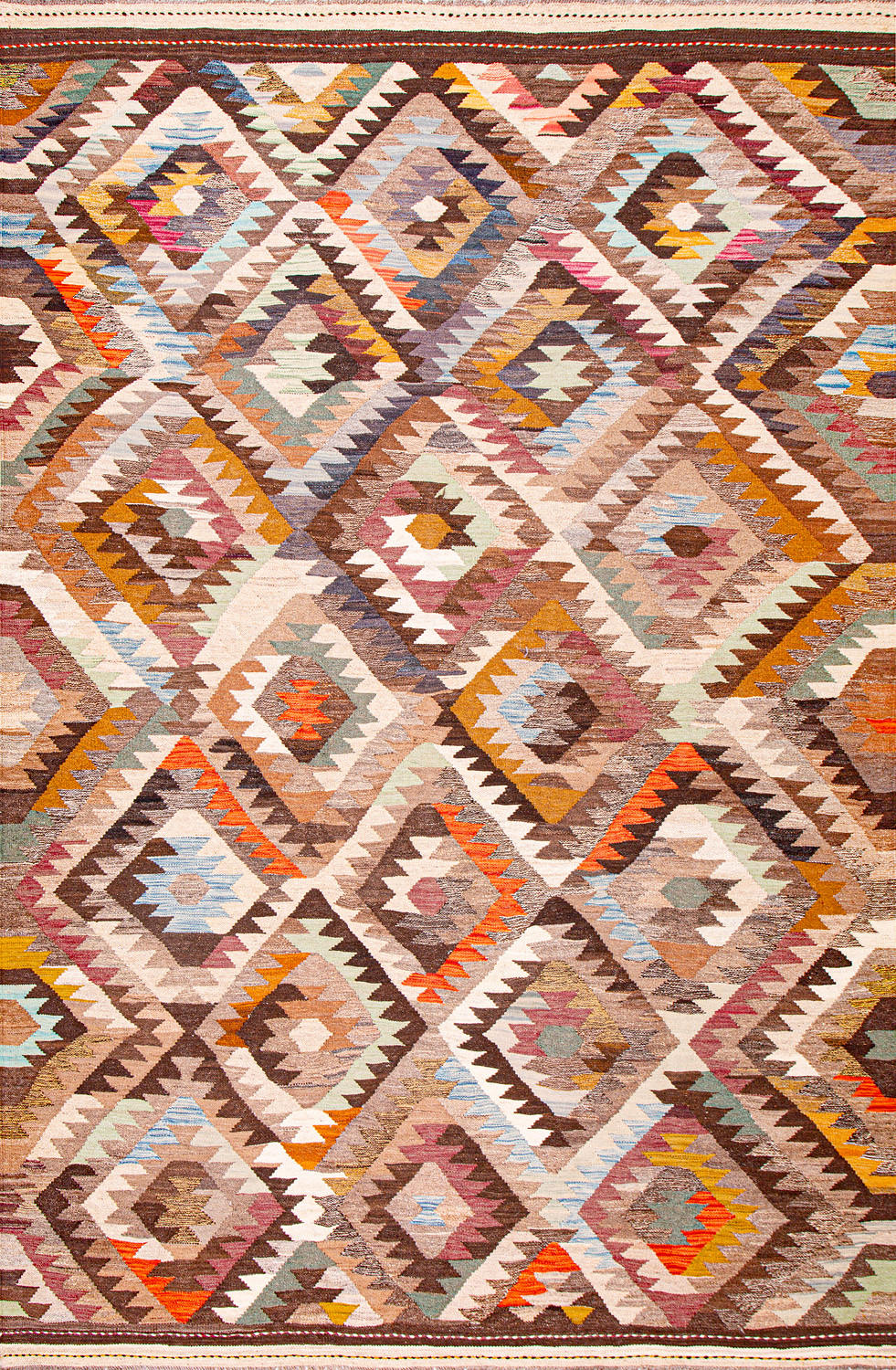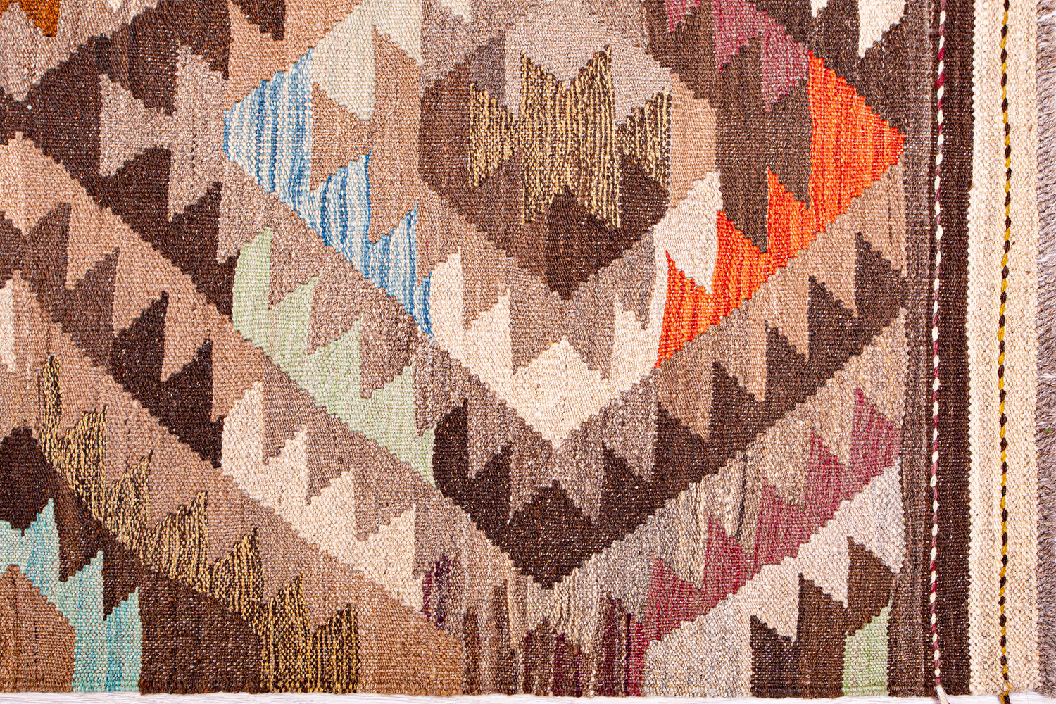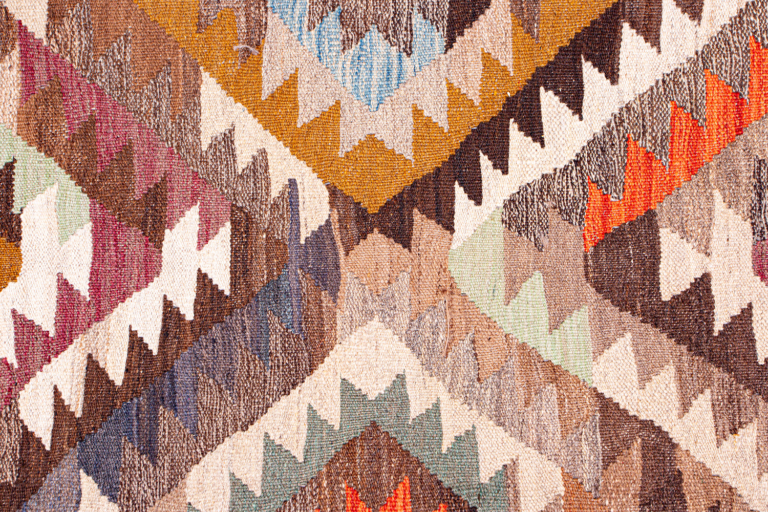 Узор ковров из коллекции Килим создаётся взаимодействием нитей утока и нитей основы, благодаря чему получается геометрический узор.