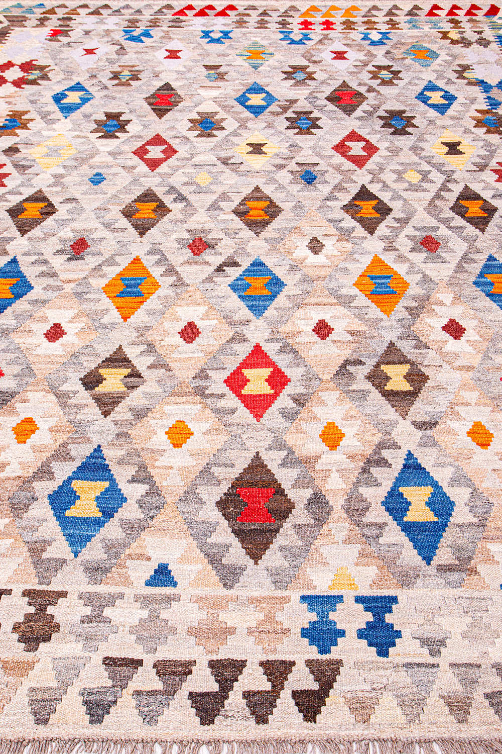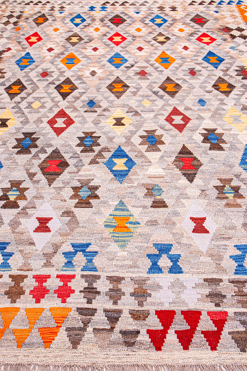 Узор ковров из коллекции Килим создаётся взаимодействием нитей утока и нитей основы, благодаря чему получается геометрический узор.
