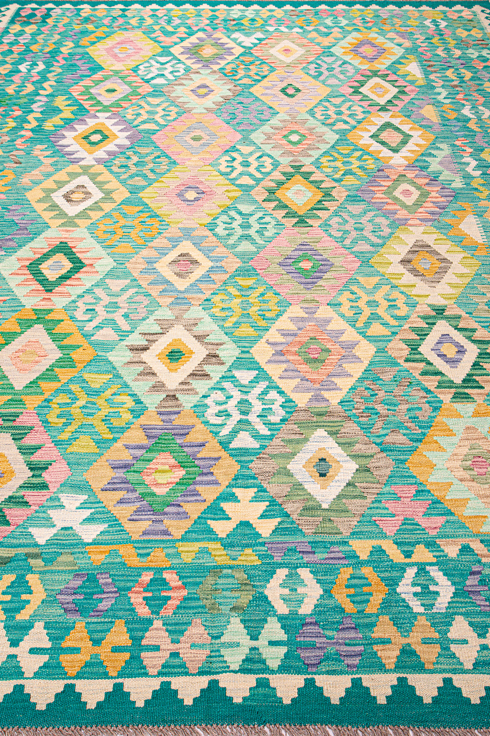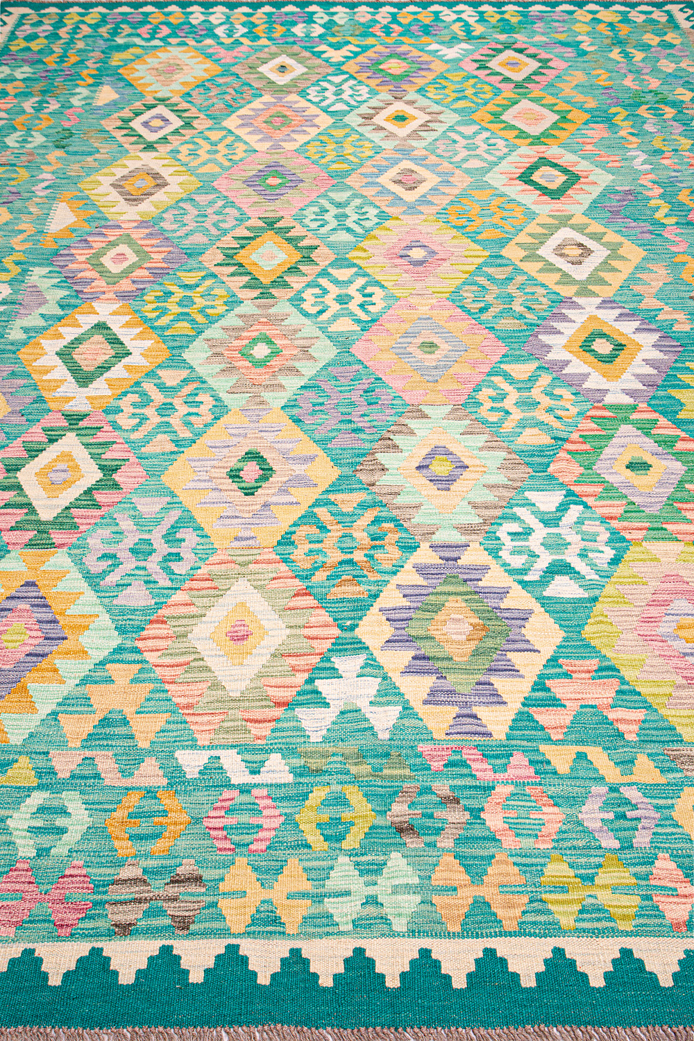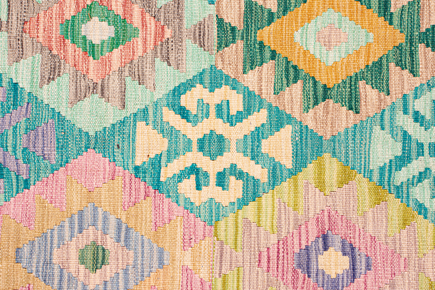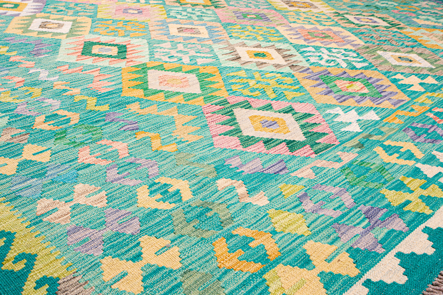 Узор ковров из коллекции Килим создаётся взаимодействием нитей утока и нитей основы, благодаря чему получается геометрический узор.