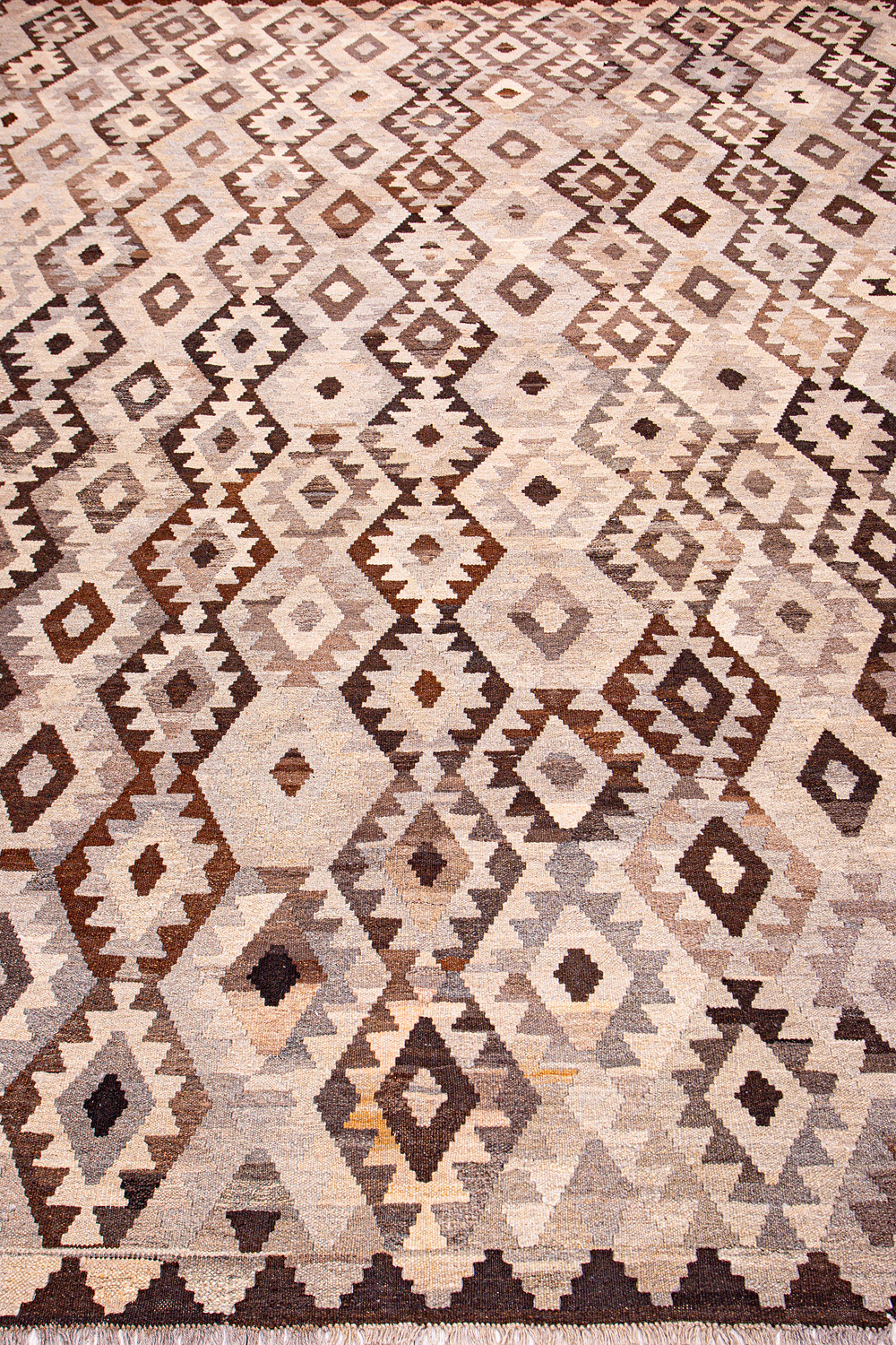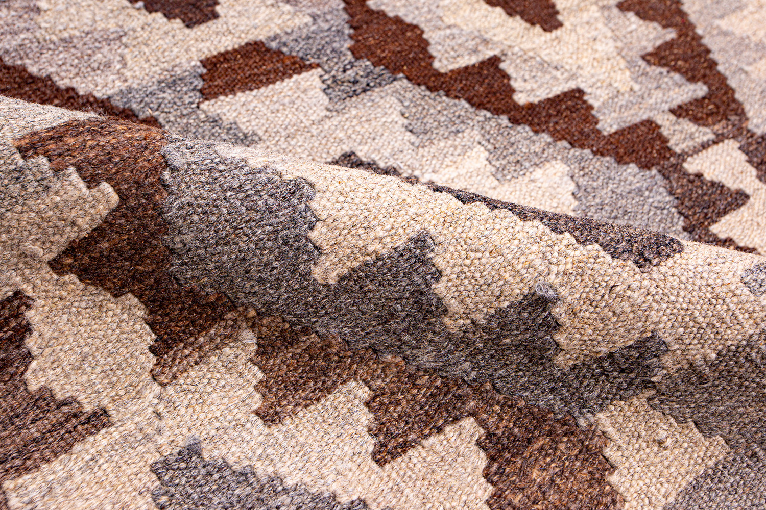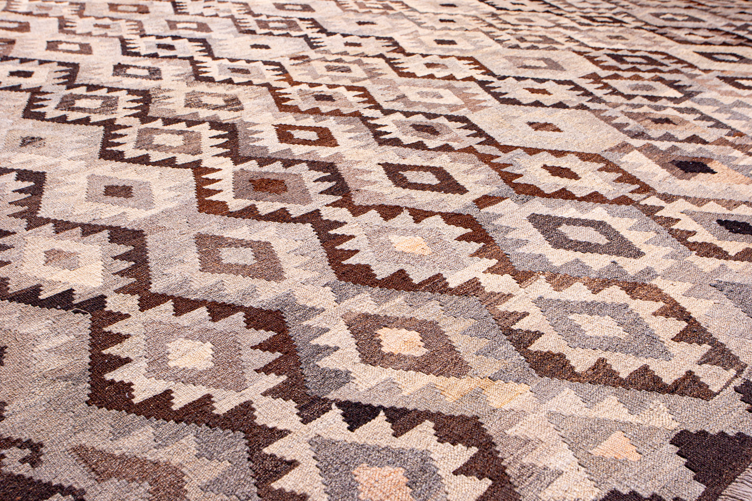 Узор ковров из коллекции Килим создаётся взаимодействием нитей утока и нитей основы, благодаря чему получается геометрический узор.