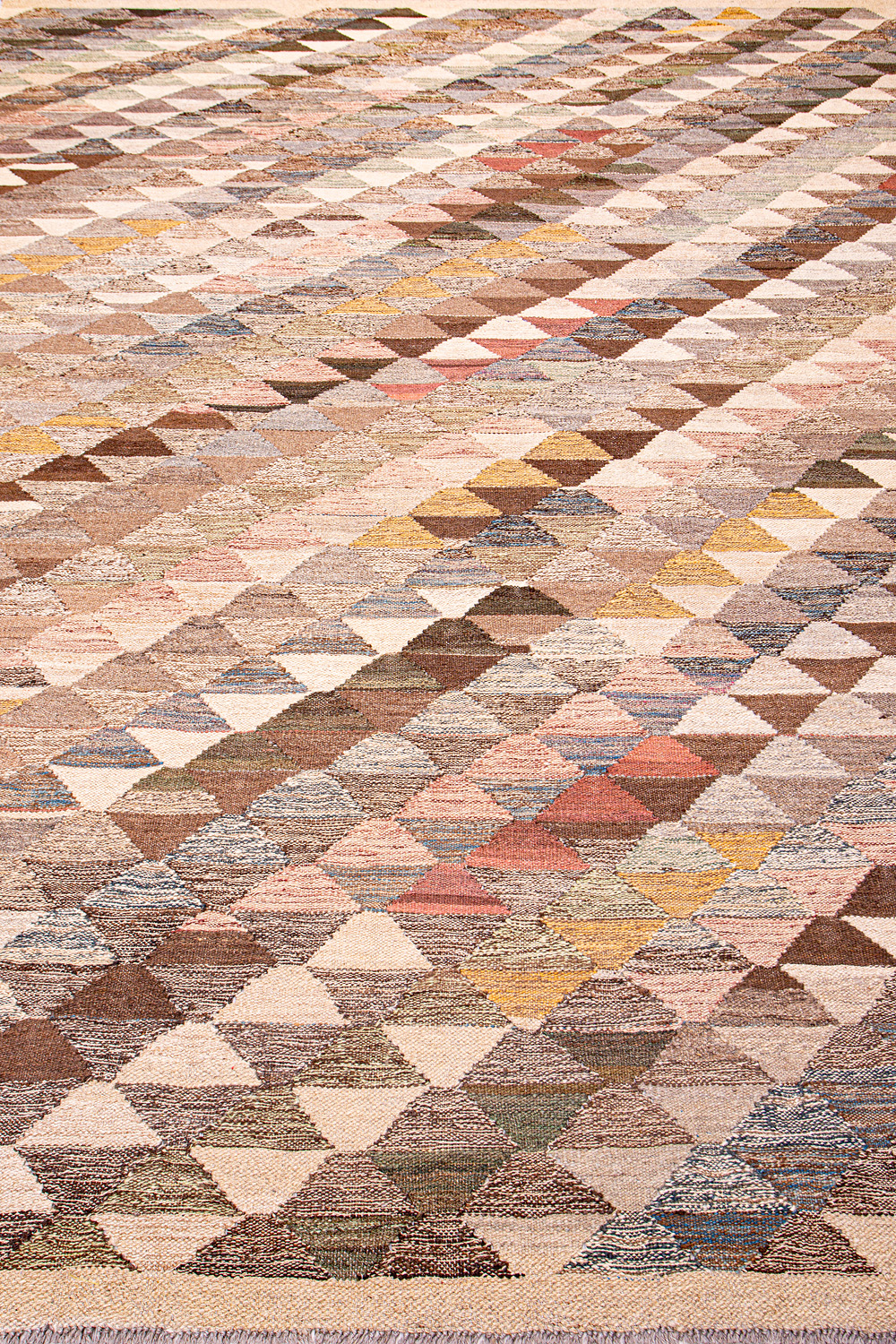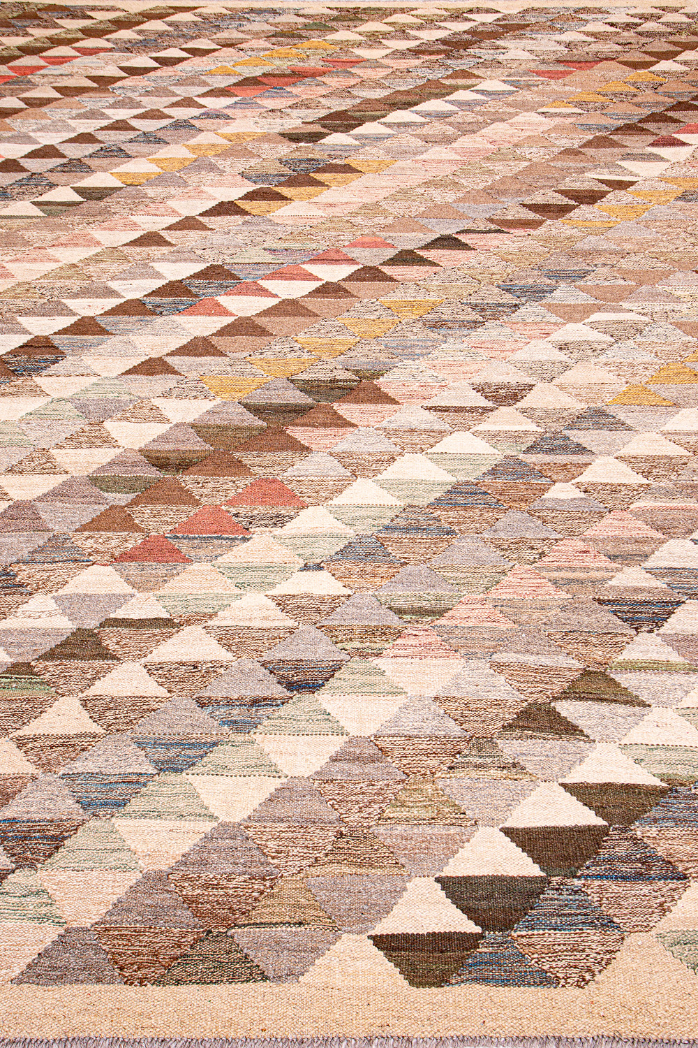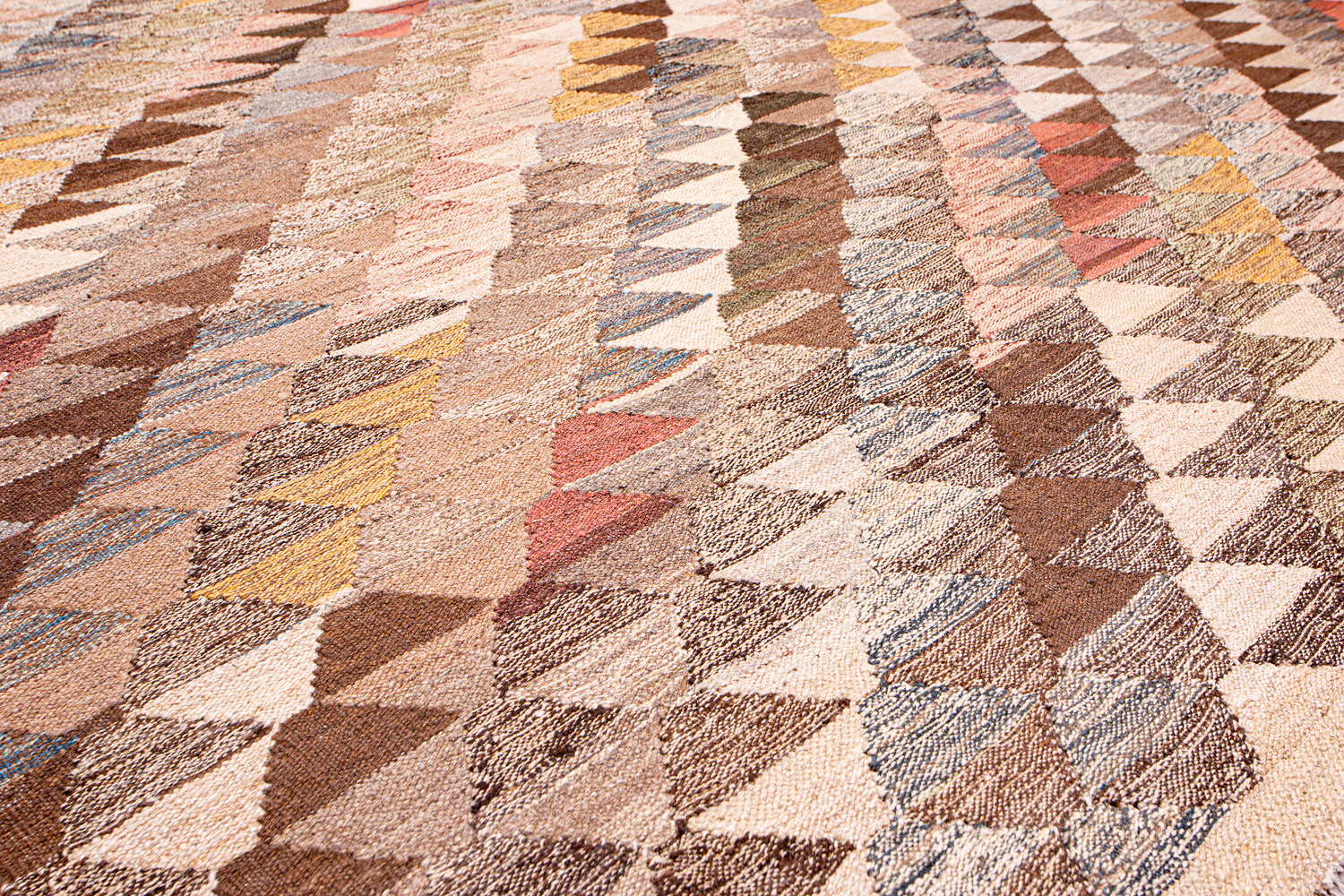Узор ковров из коллекции Килим создаётся взаимодействием нитей утока и нитей основы, благодаря чему получается геометрический узор.