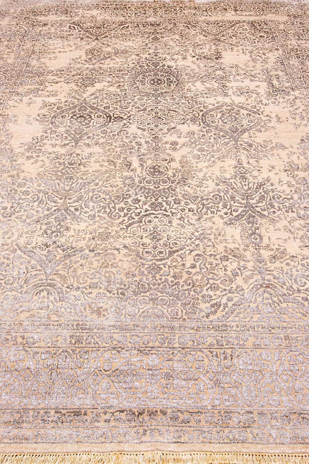 Родина этих ковров Индия и Пакистан. Чтобы создать такое произведение искусства у мастеров уходит от одного года до двух лет. Плотность ковров, в зависимости от размера, составляет от 150 000 до 400 000 узлов на квадратный метр.