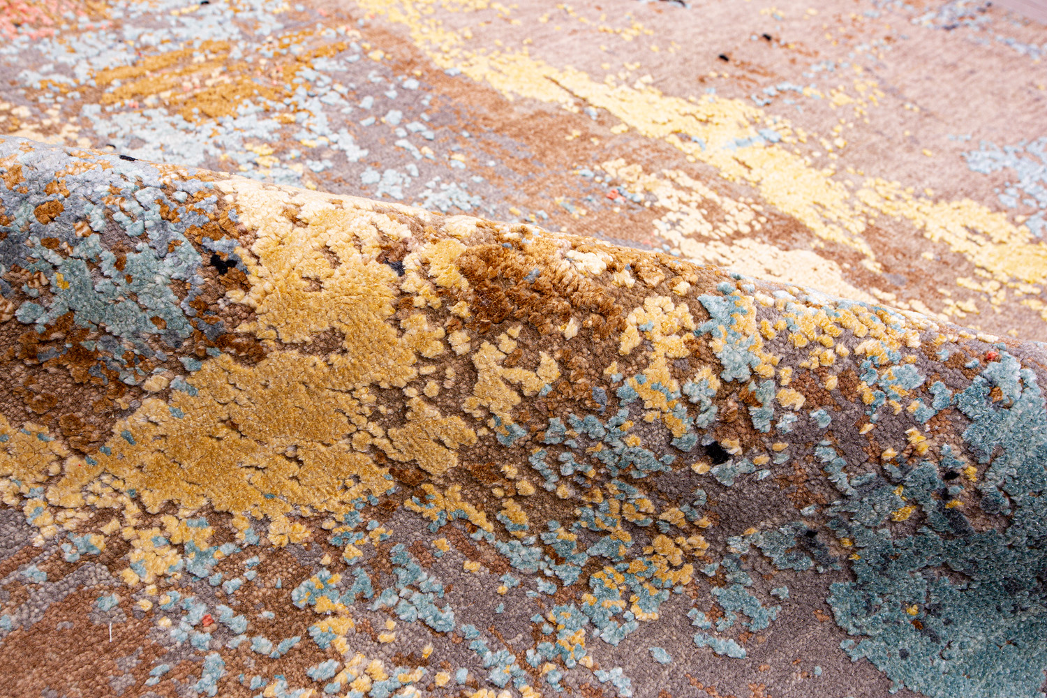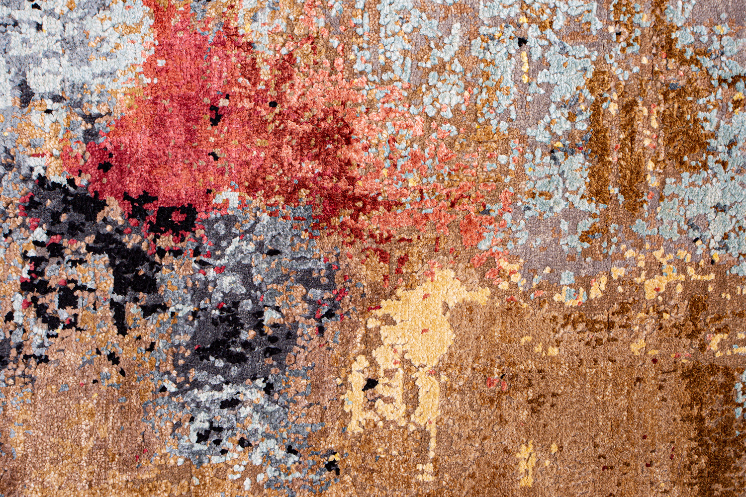 Дизайн ковров напоминает современные полотна художников-абстракционистов и производит столь же яркое и незабываемое впечатление в интерьере. Живописный эффект и необычная фактура зависят от выбора материала: натуральной шерсти, шёлка и от их сочетаний друг с другом. Ковры ткутся вручную в лучших мастерских Индии и Пакистана.